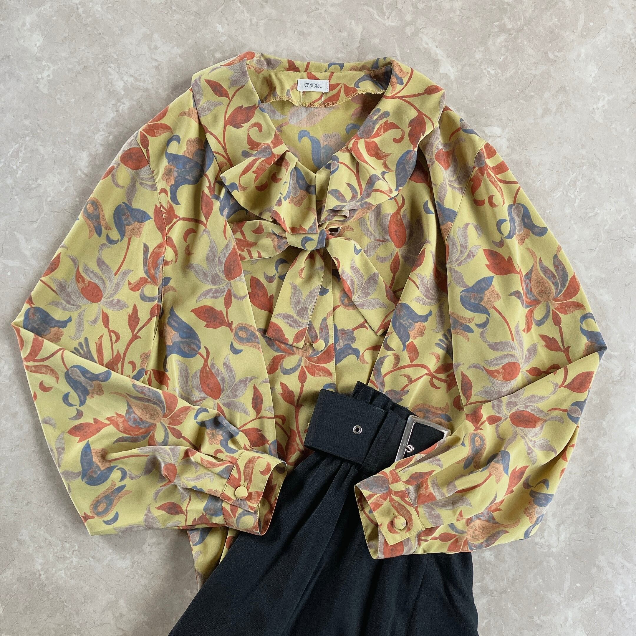 used レトロ フリル襟 総柄 ブラウス 古着 ヴィンテージ vintage