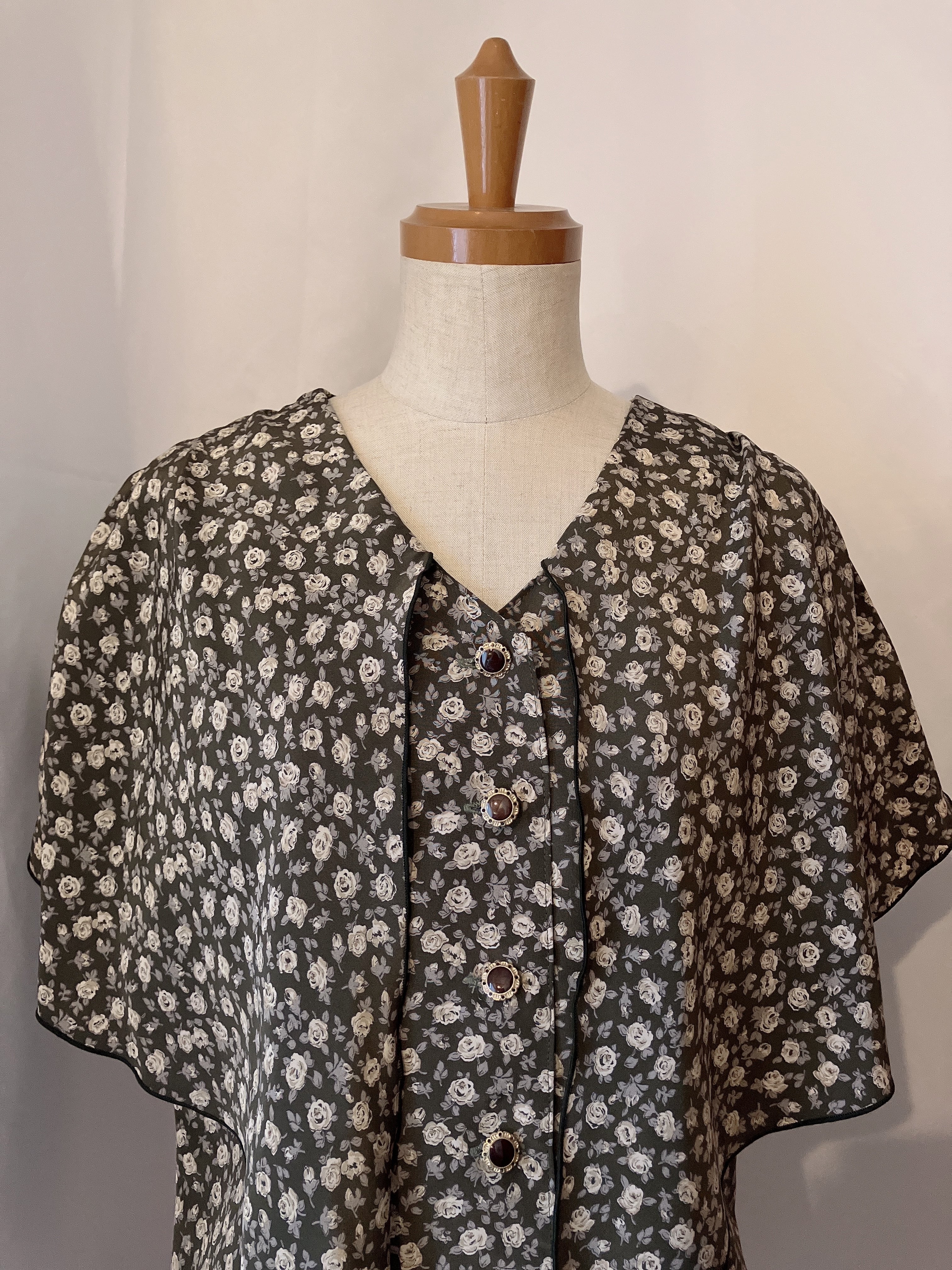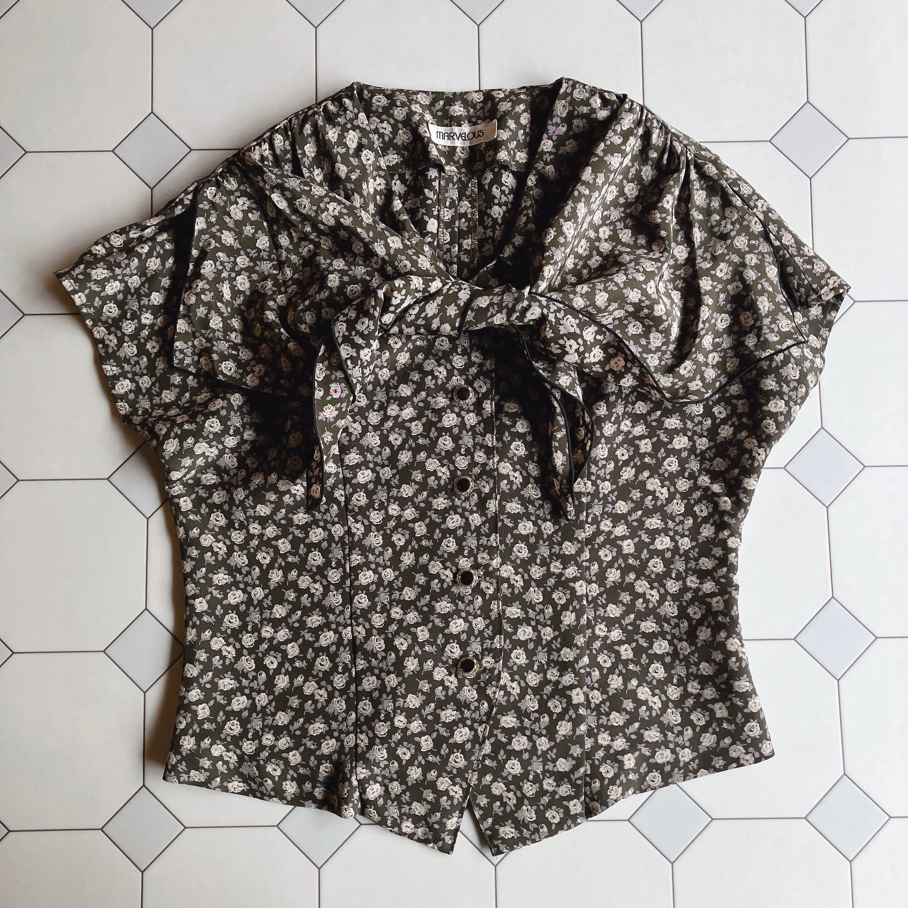 used レトロ 大きな襟の 花柄ブラウス 古着 ヴィンテージ vintage