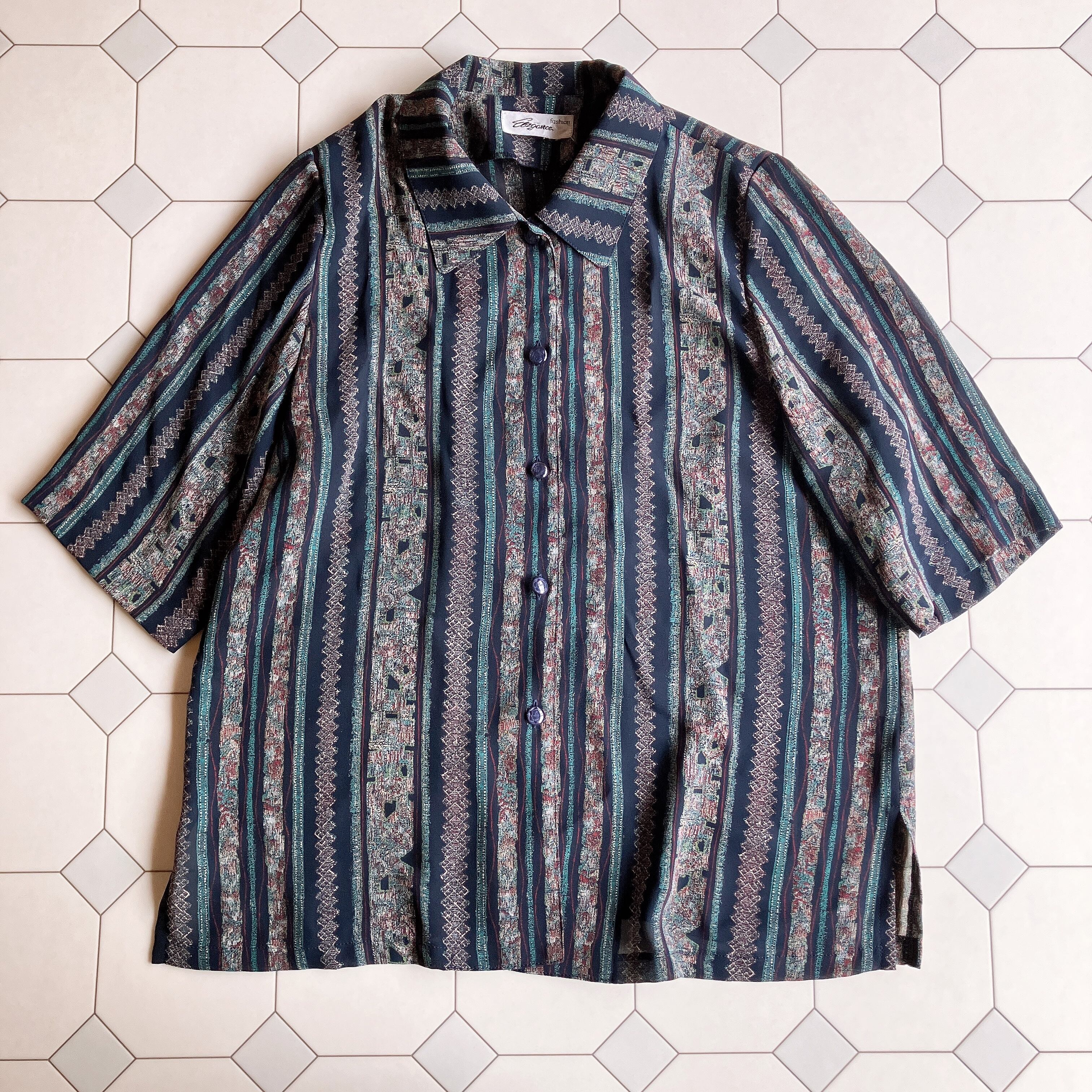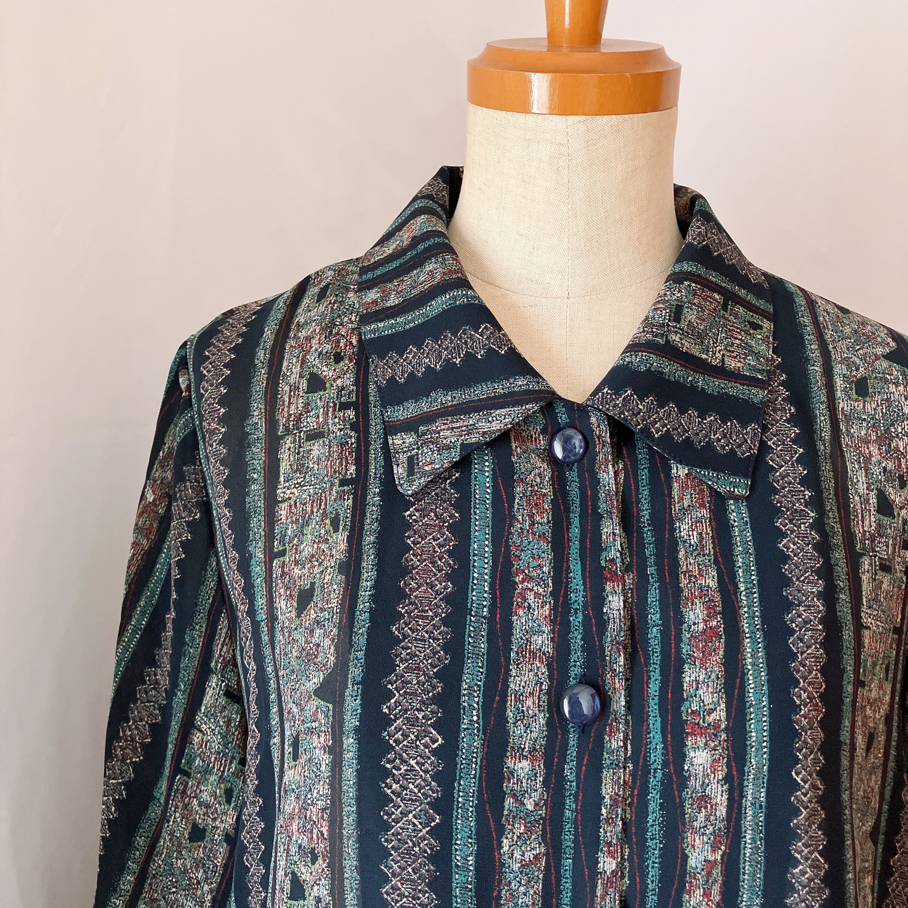 used レトロ ストライプ 総柄ブラウス 古着 ヴィンテージ vintage