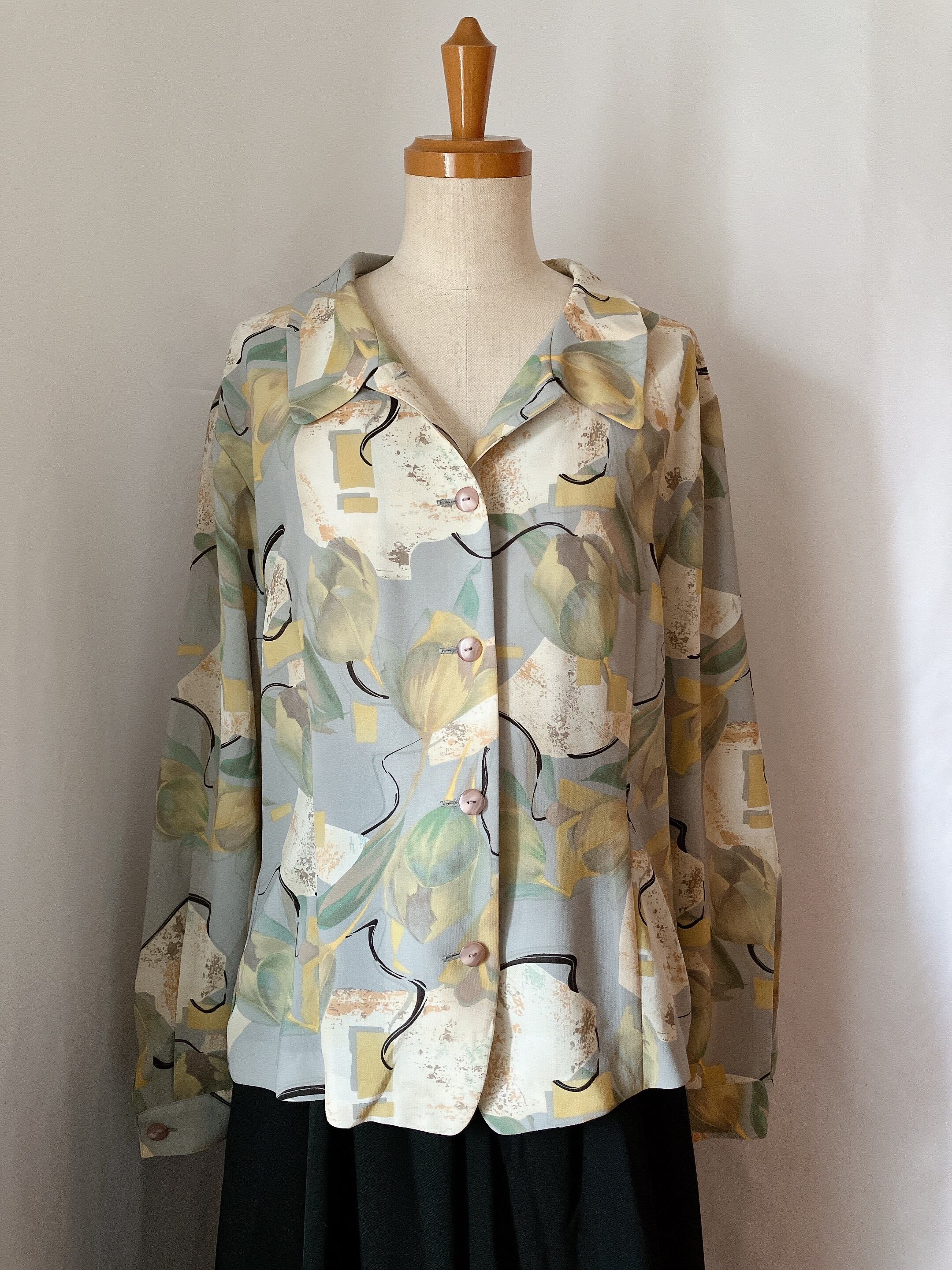 60s 70s 80s 90s の クラシカル で レトロ アンティーク ビンテージ / vintage ヴィンテージ なテイストの 古着 アート柄 総柄 個性的 希少 シャツ ブラウス ワンピース を出品しております。一点物 ユニセックス 古着 もたくさん扱っておりますので、ご覧下さいませ♪