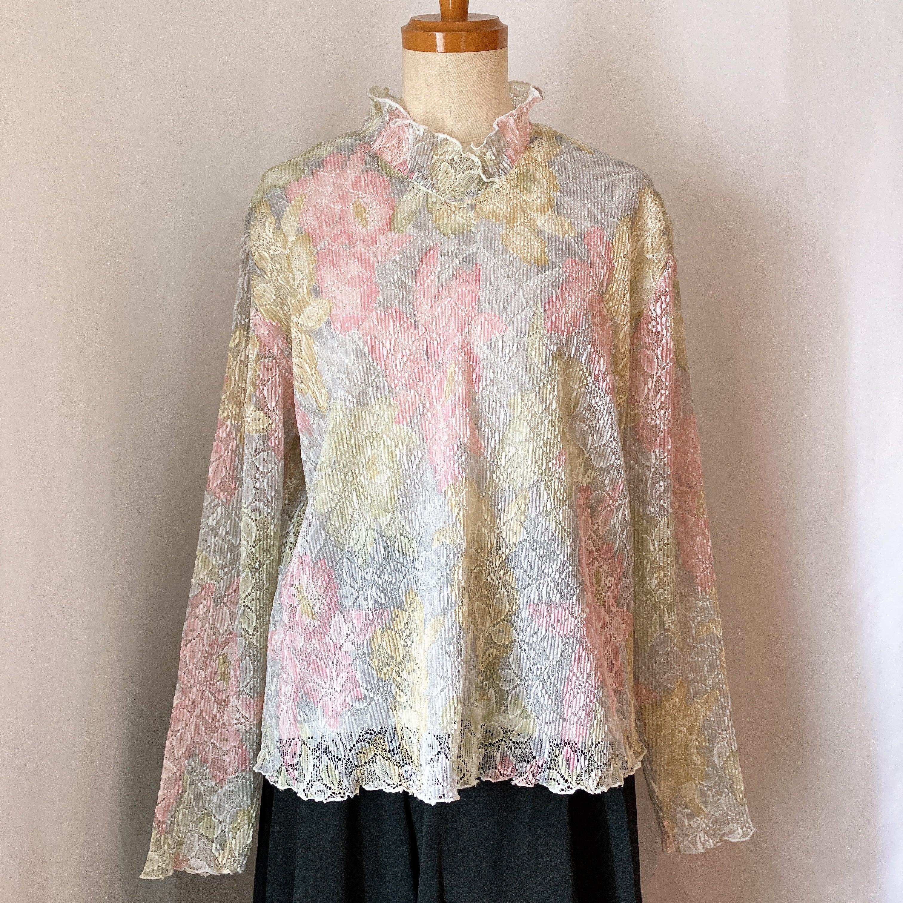 Used レトロ レース生地 トップス 古着 ヴィンテージ vintage