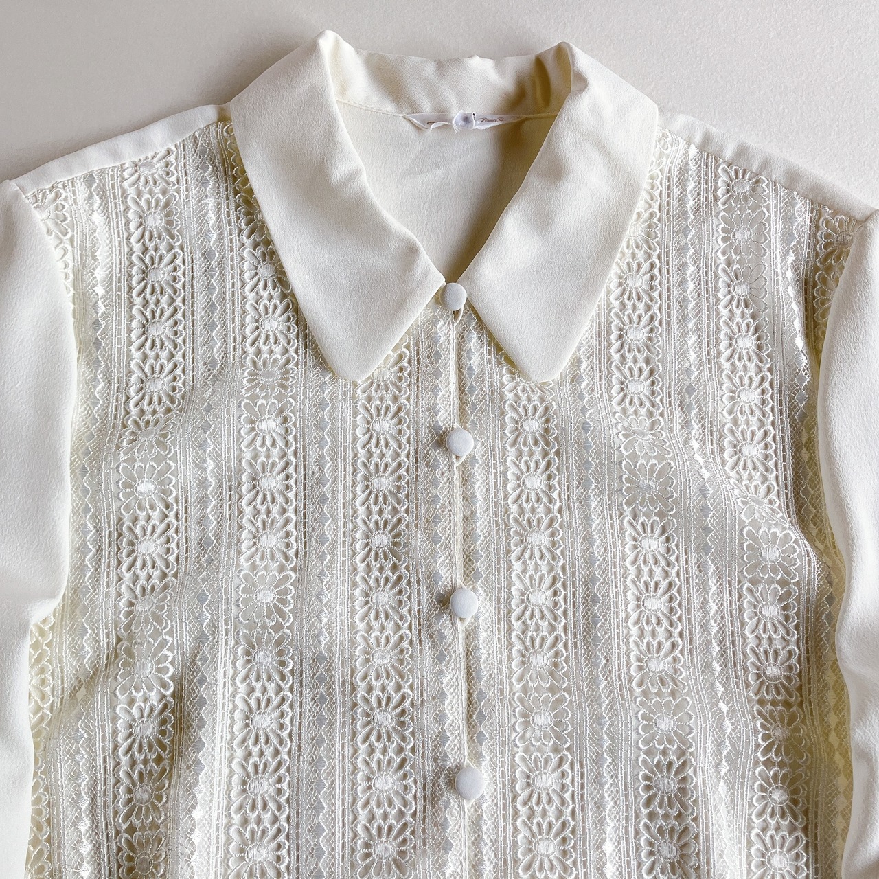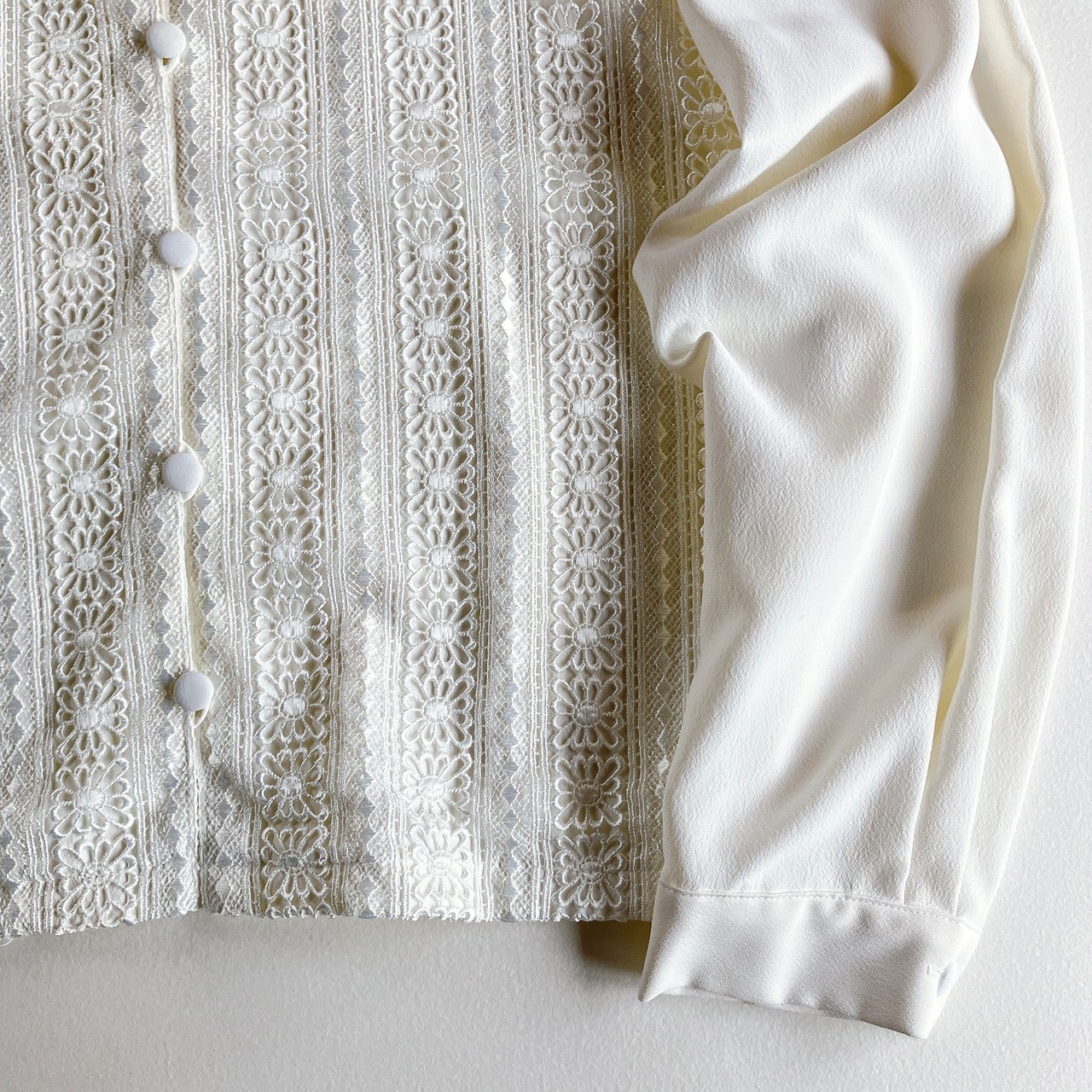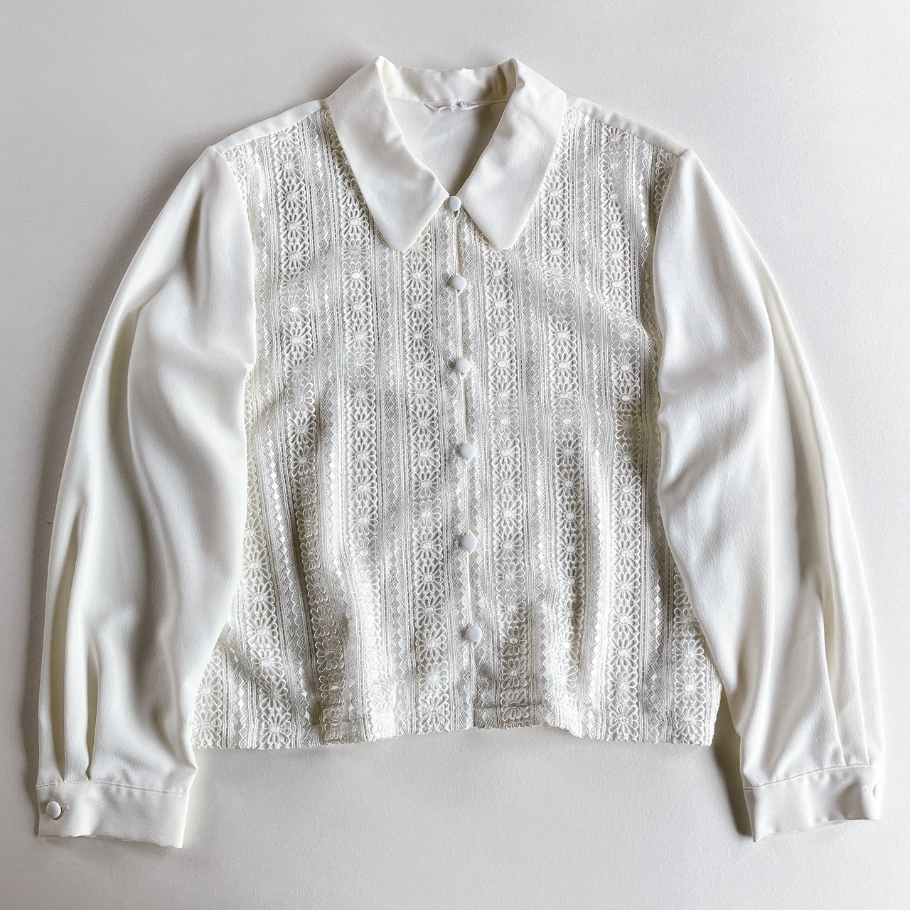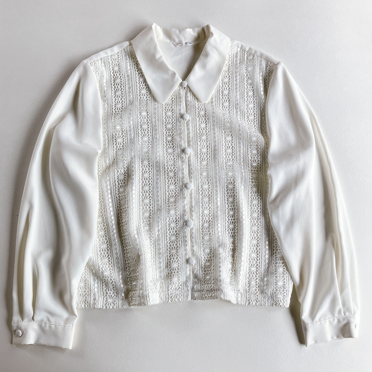 used レトロ 花レース 白 ブラウス 古着 ヴィンテージ vintage
