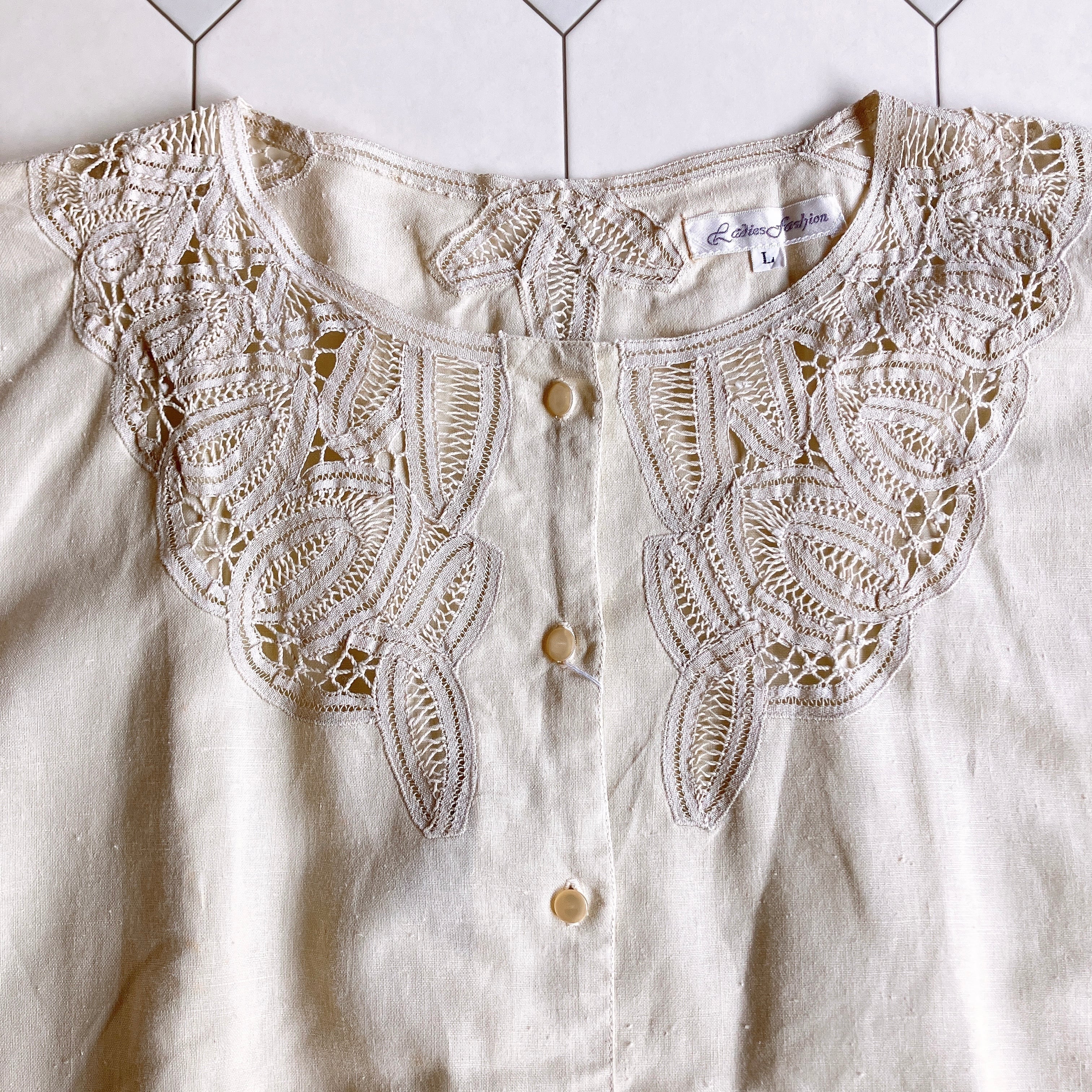 used レトロ 刺繍 白 ブラウス 古着 ヴィンテージ vintage