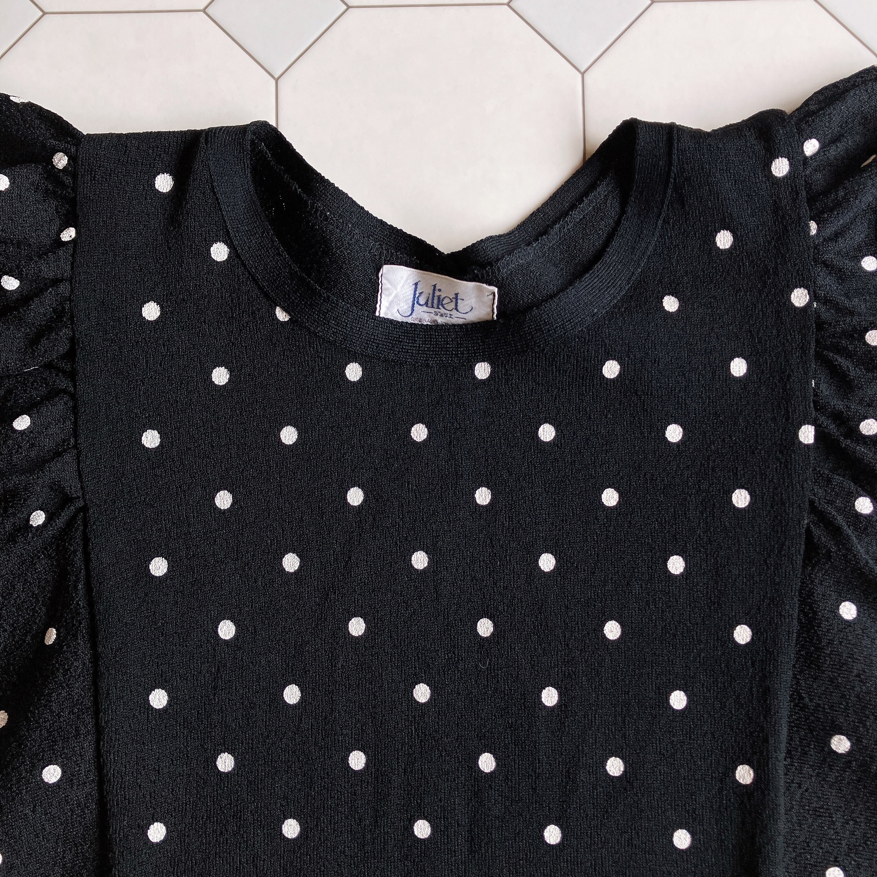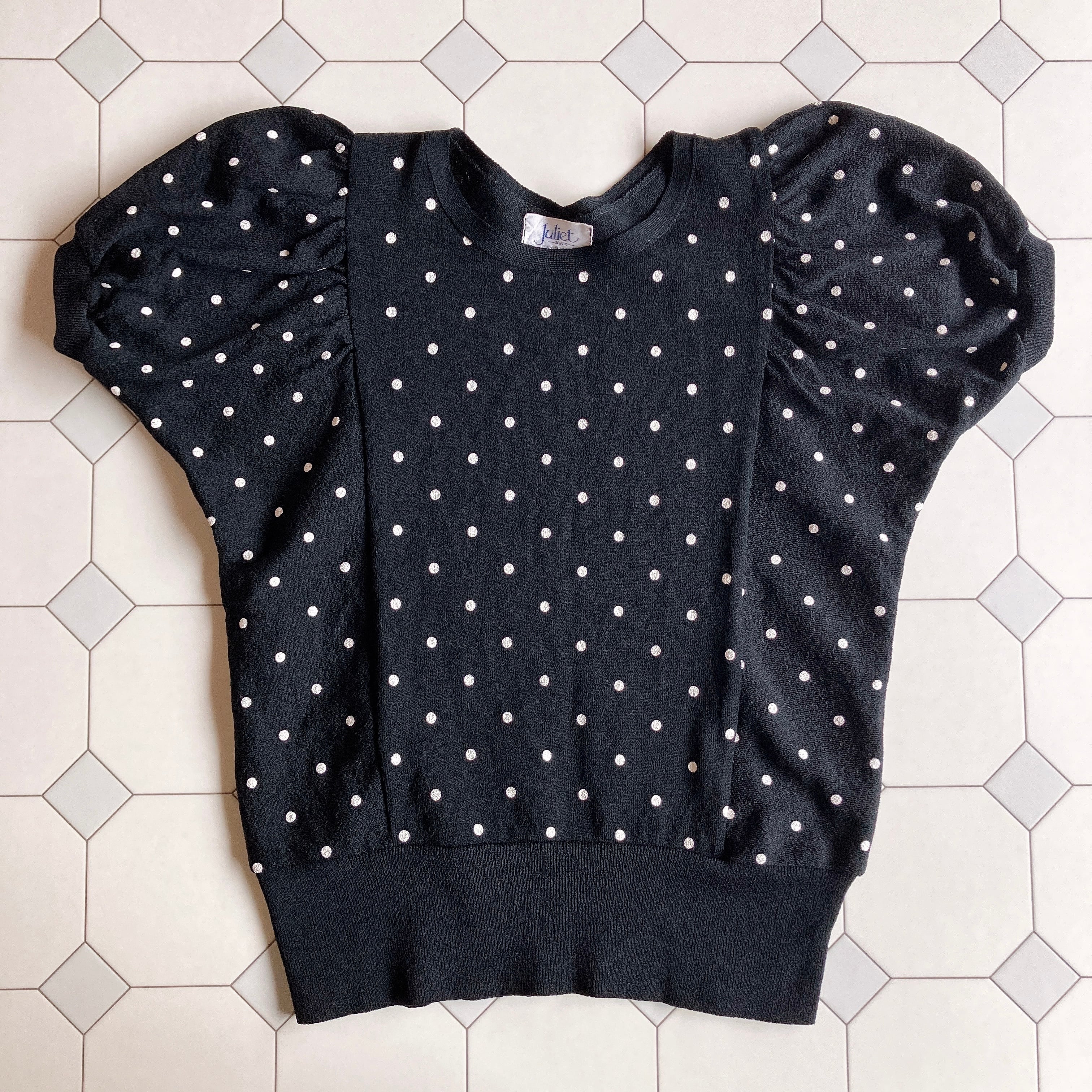 used レトロ 黒 ドット柄 トップス 古着 ヴィンテージ vintage
