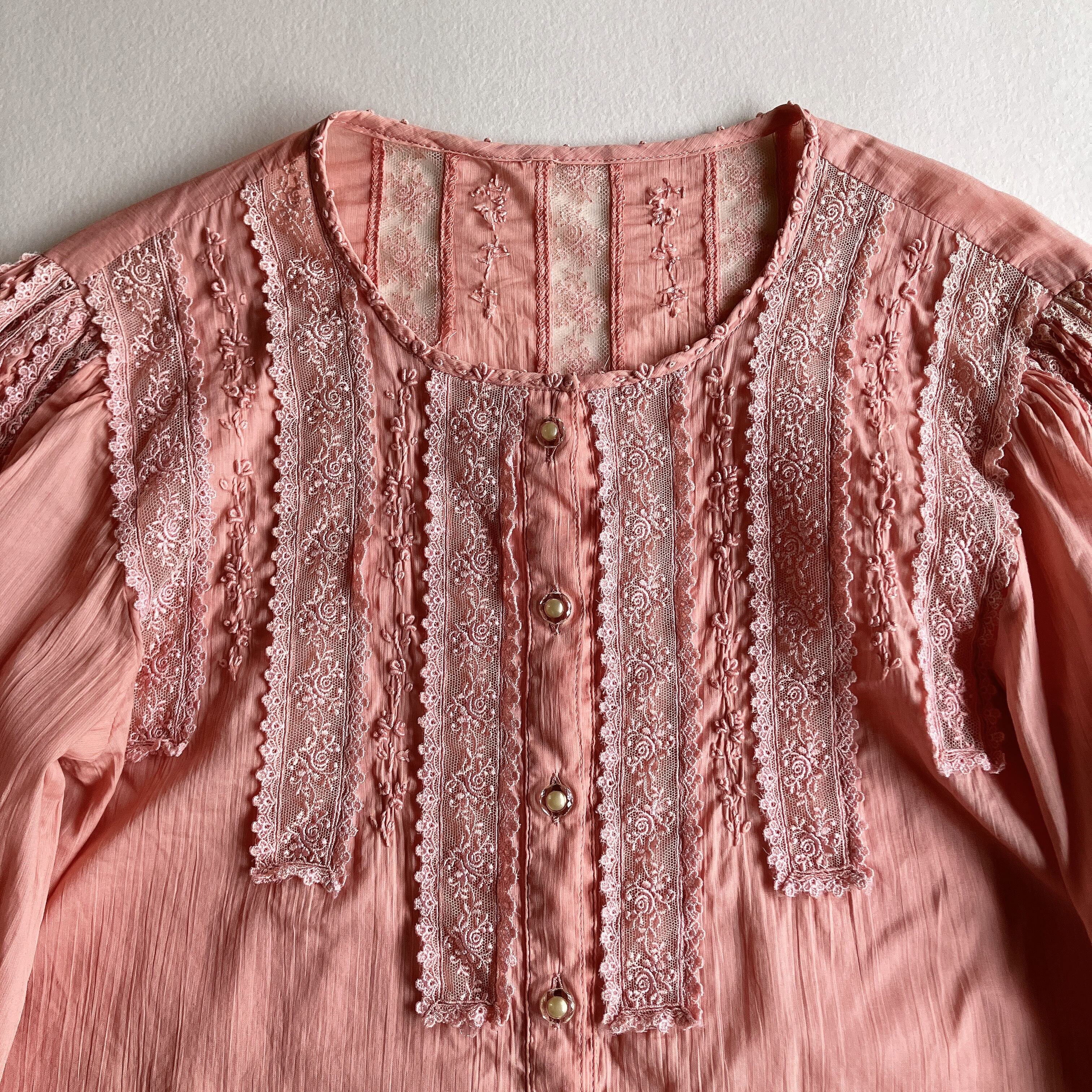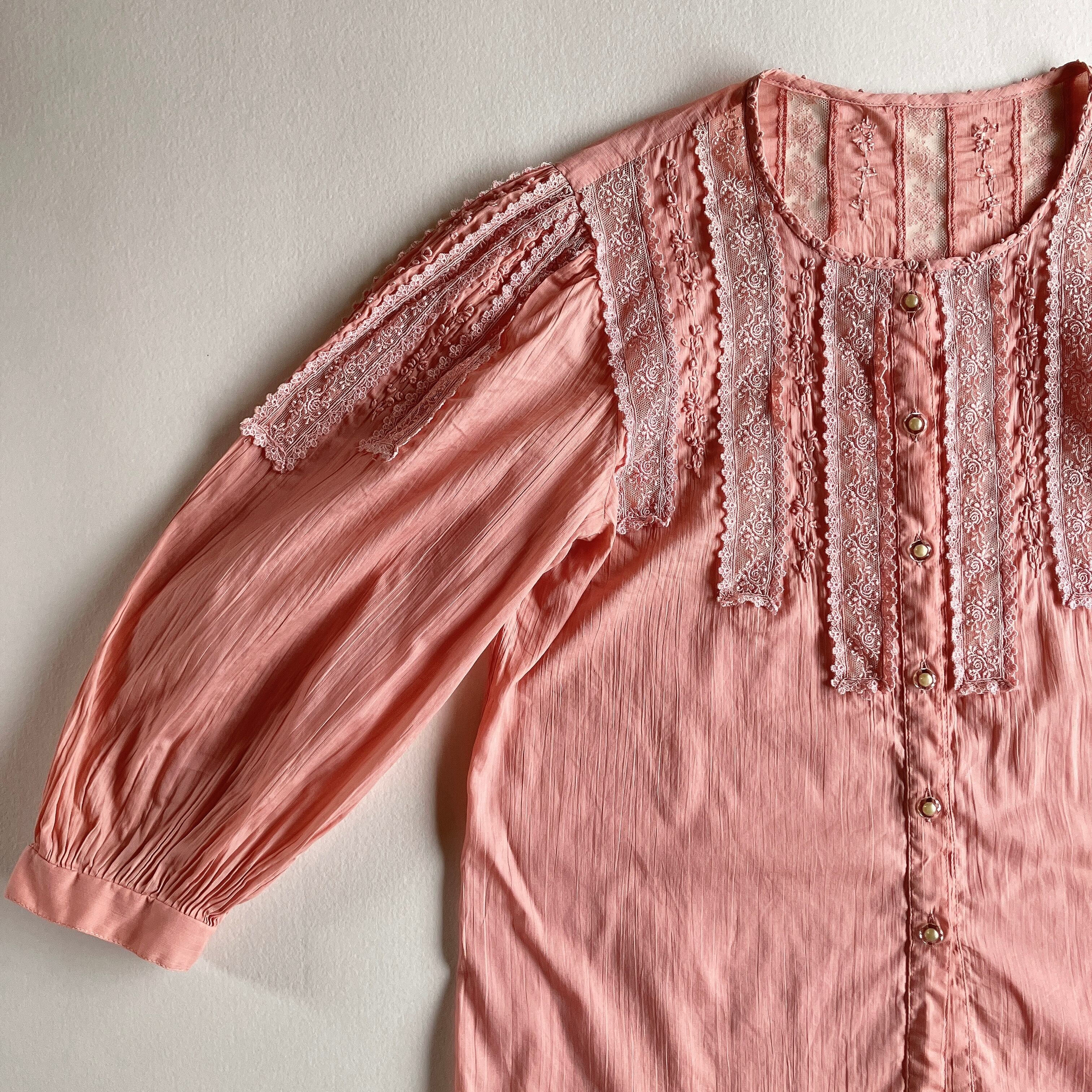 used レトロ ピンク レース ブラウス 古着 ヴィンテージ vintage
