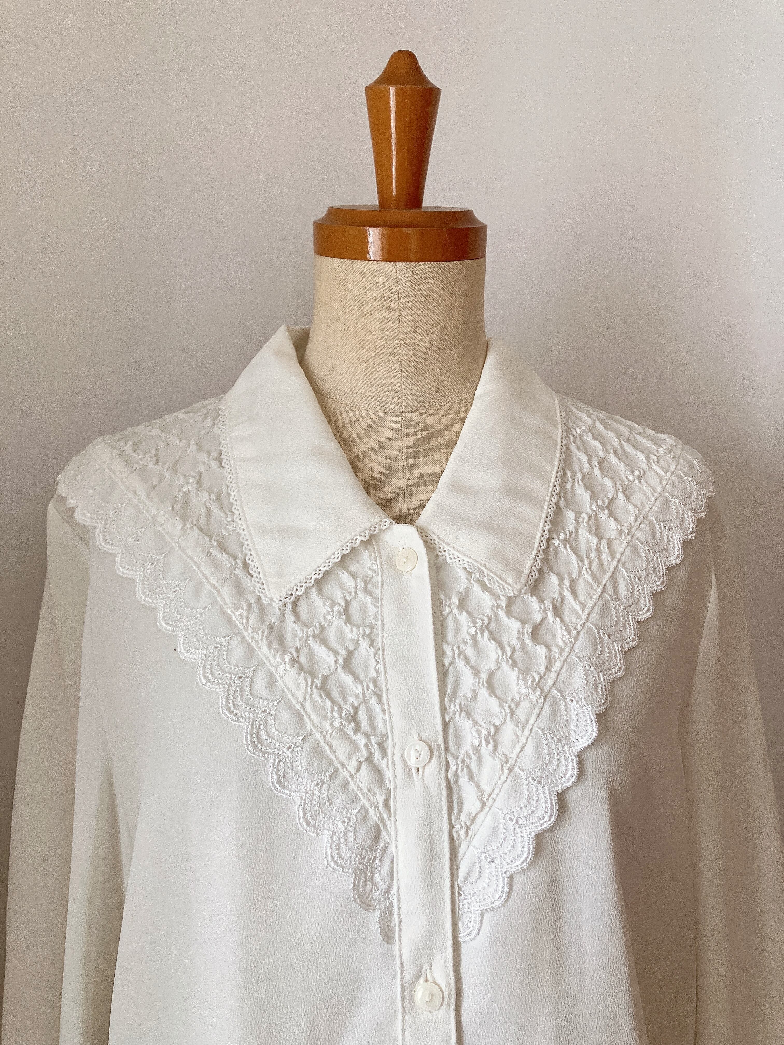 used レトロ 白 レース ブラウス 古着 ヴィンテージ vintage