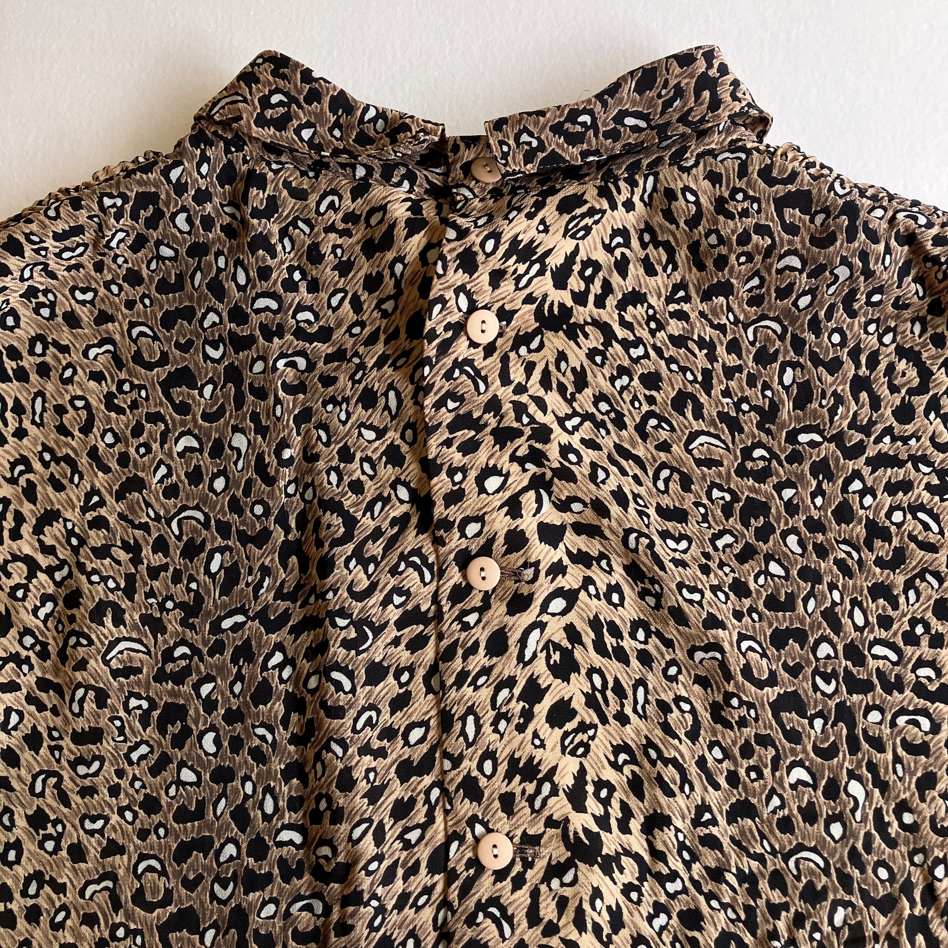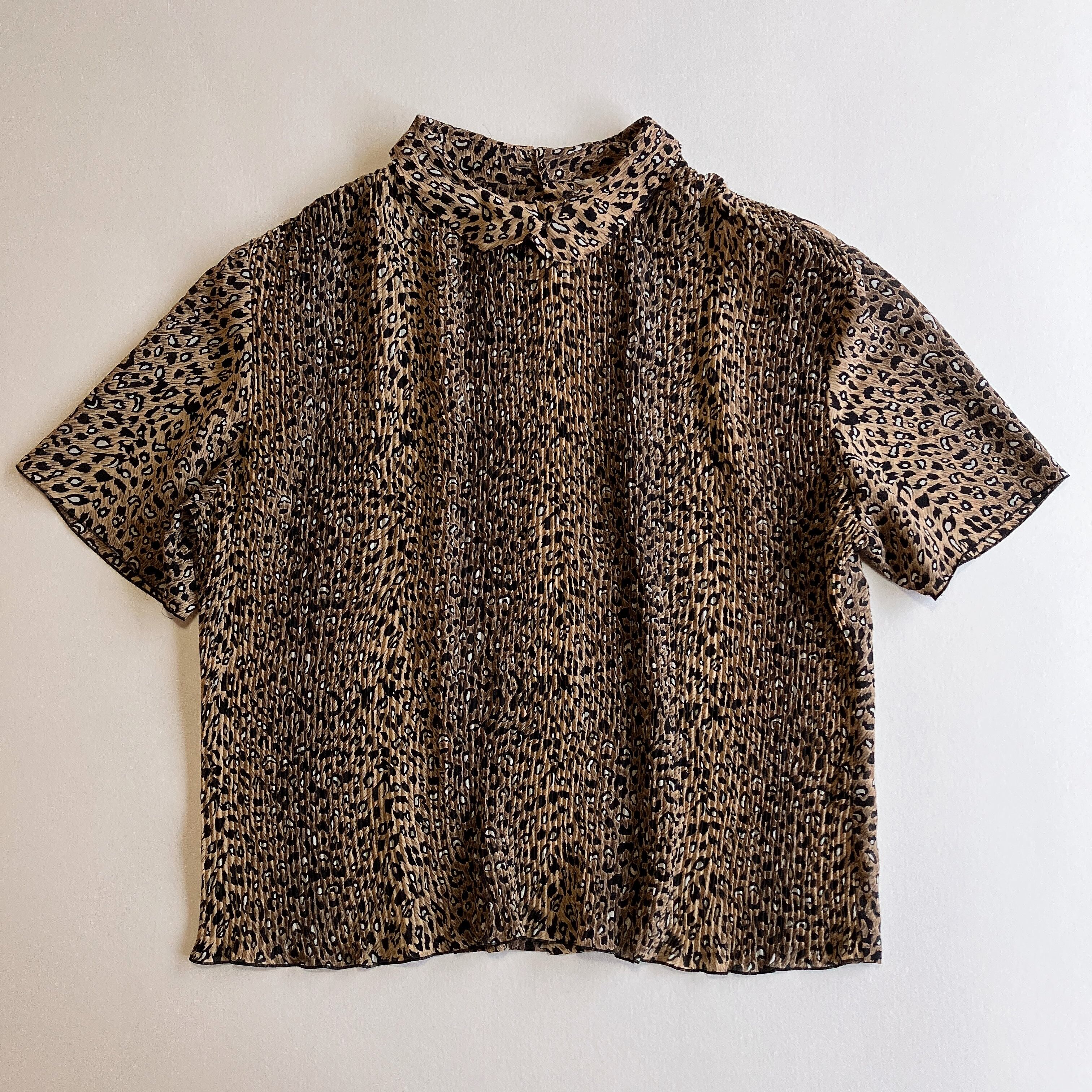 used レトロ 豹柄 プリーツ トップス 古着 ヴィンテージ vintage