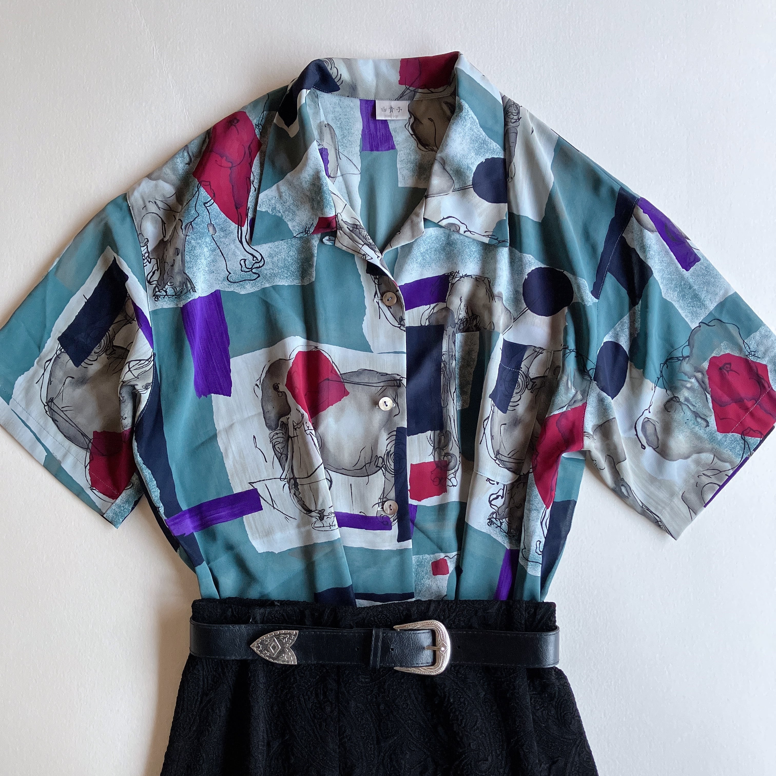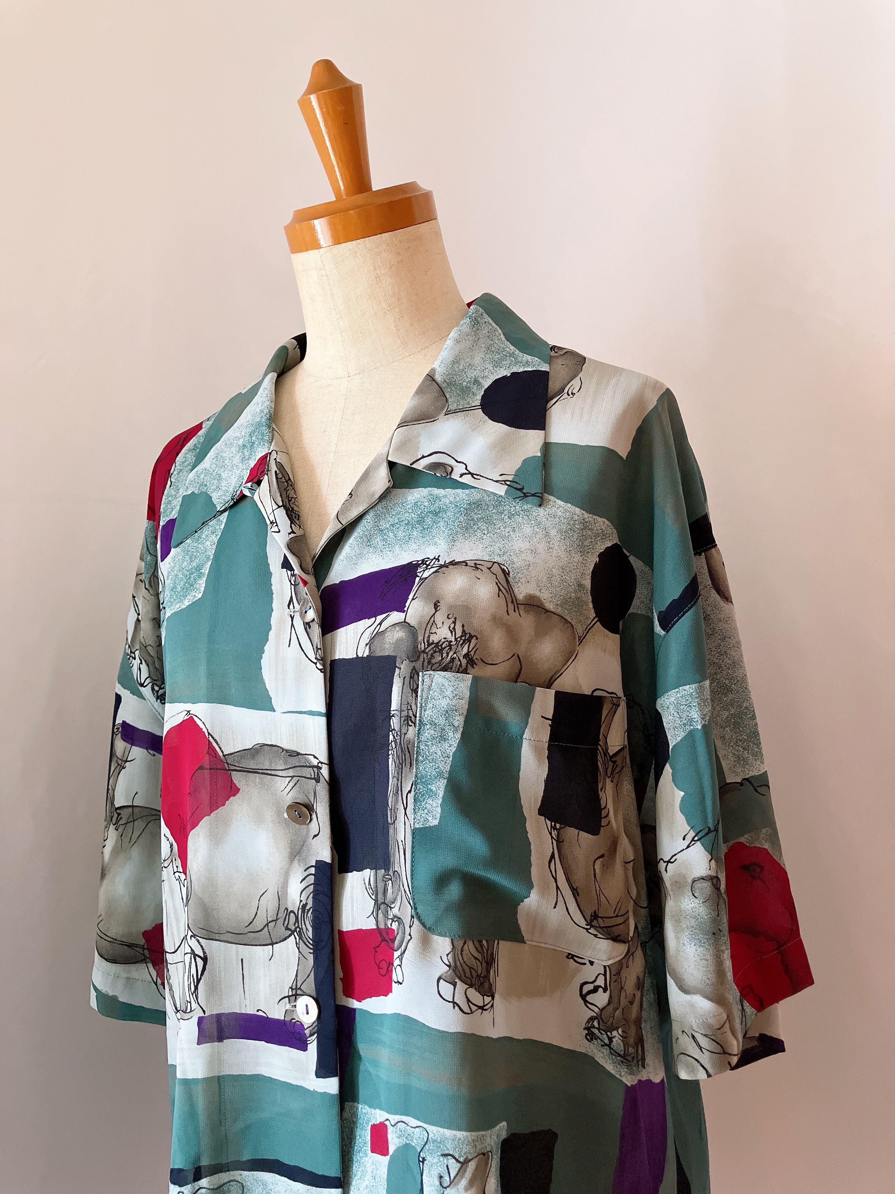 used レトロ 像柄 シャツ ブラウス 古着 ヴィンテージ vintage