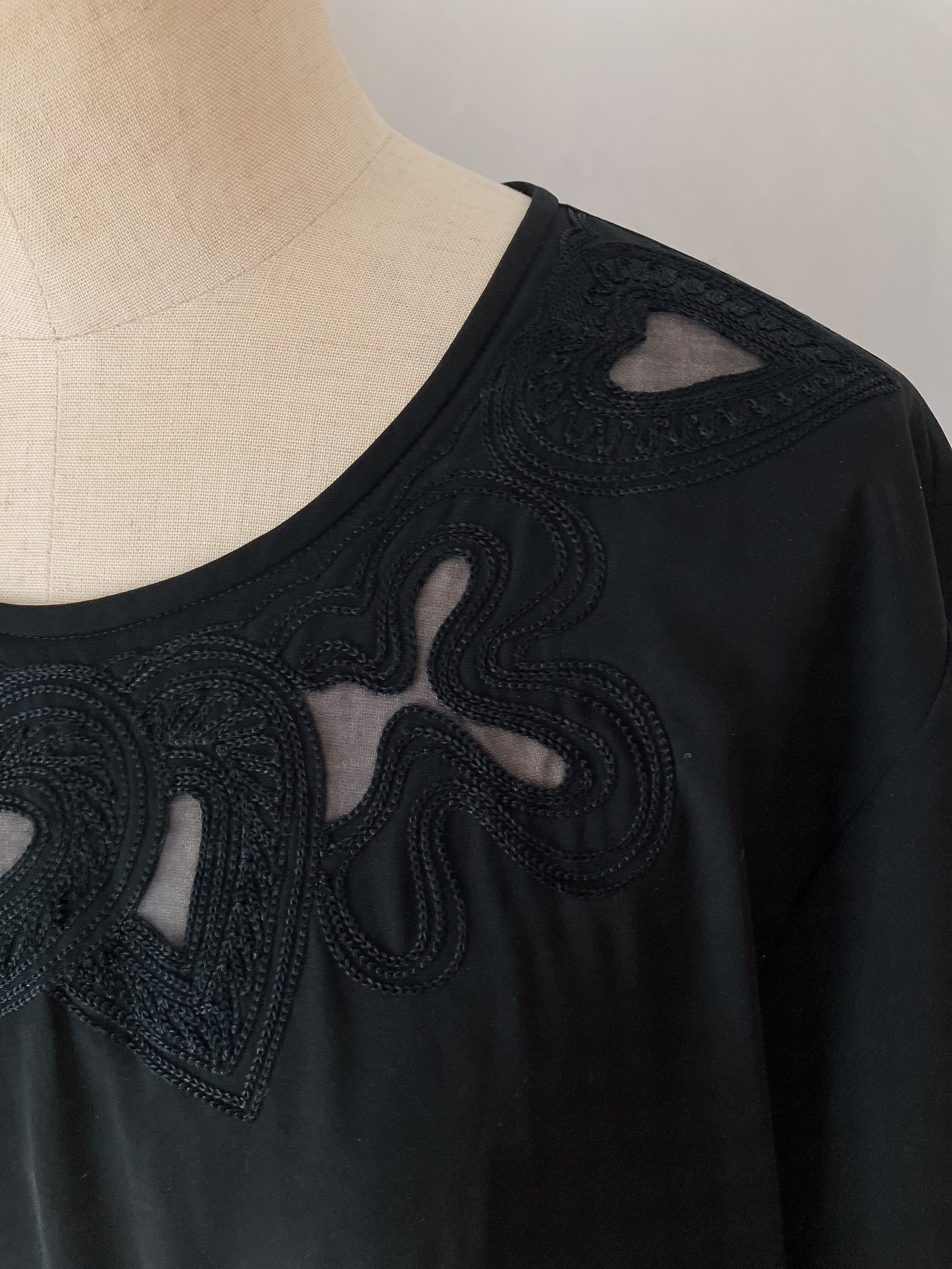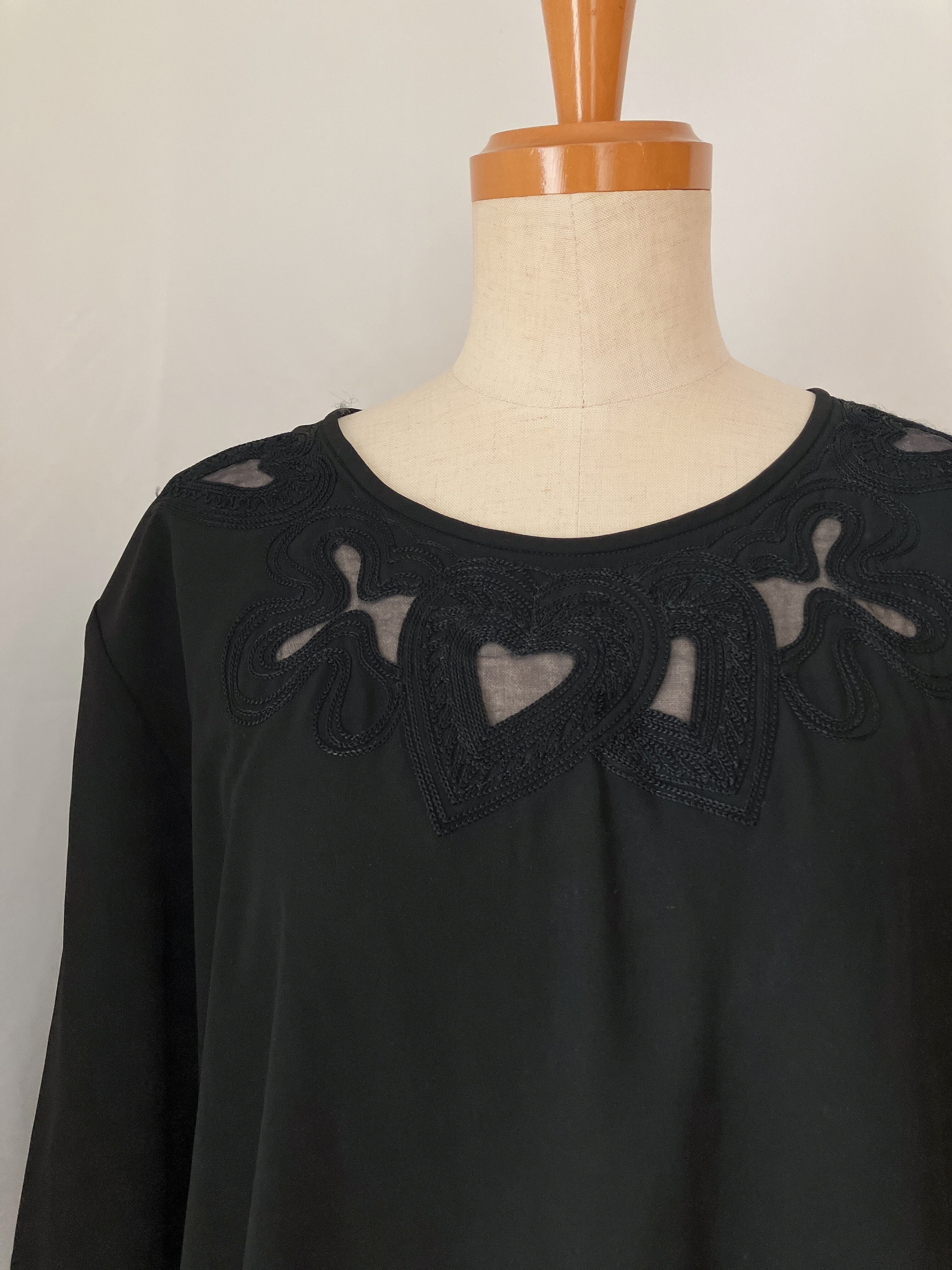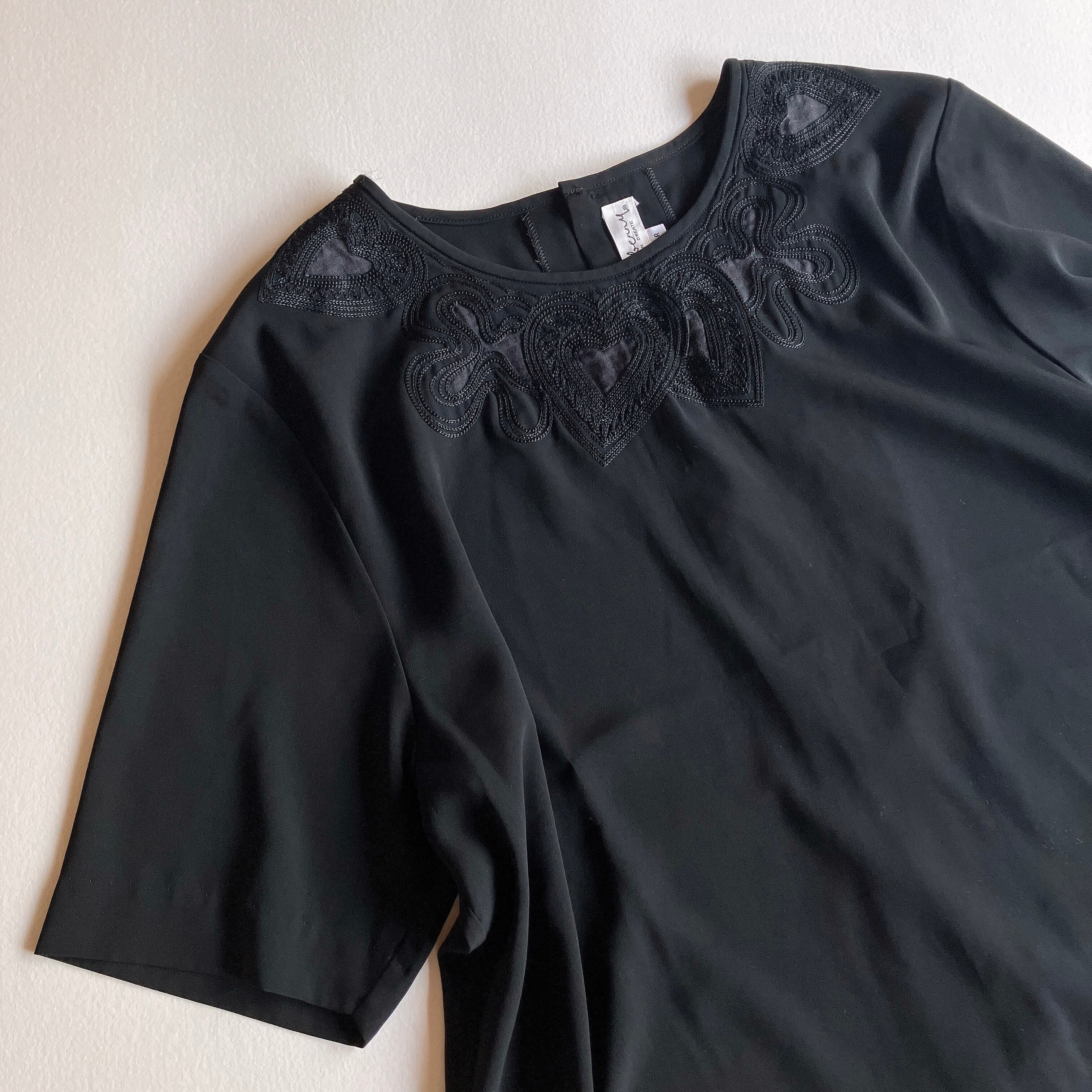 used レトロ 黒 刺繍 トップス 古着 ヴィンテージ vintage
