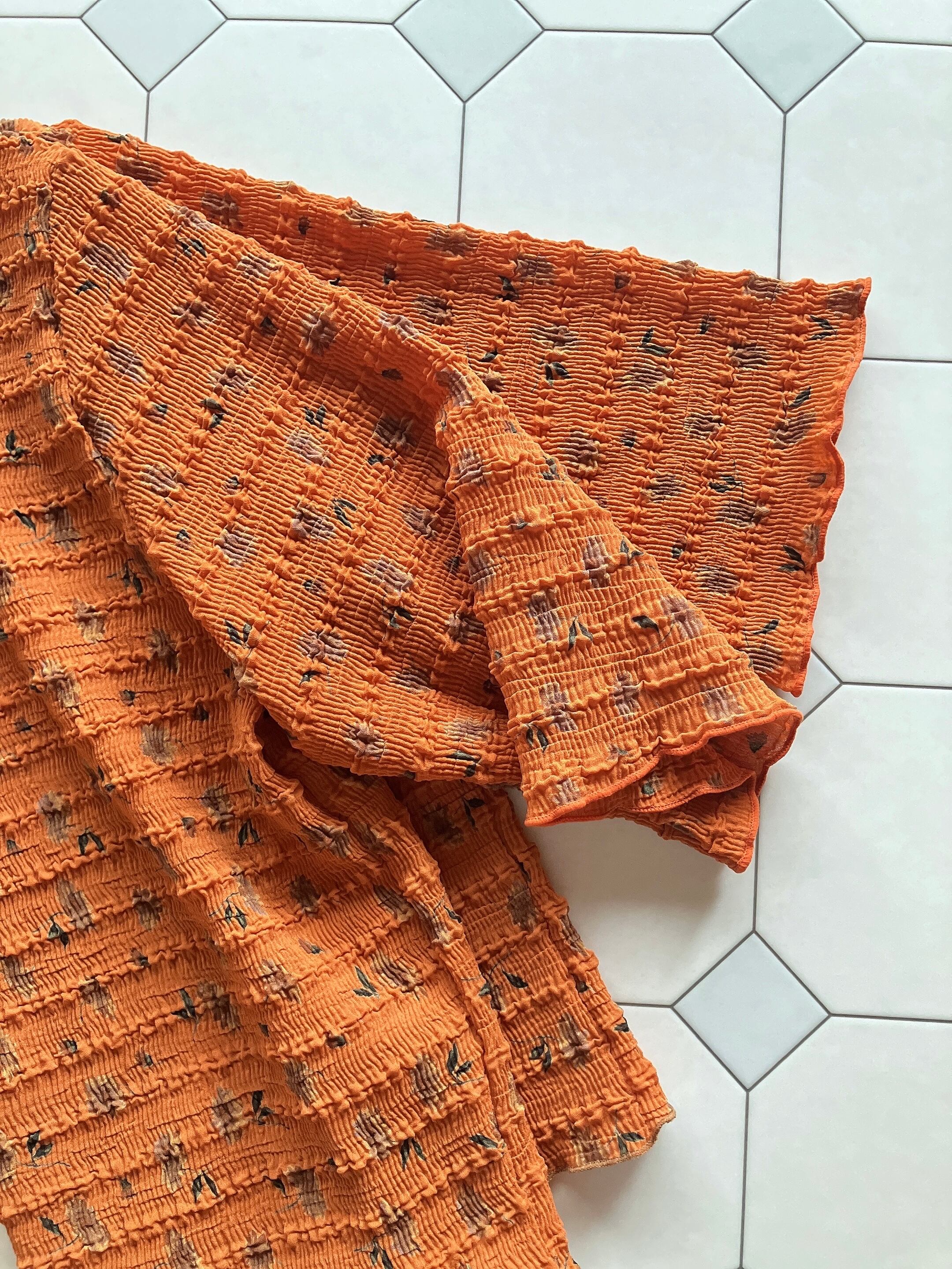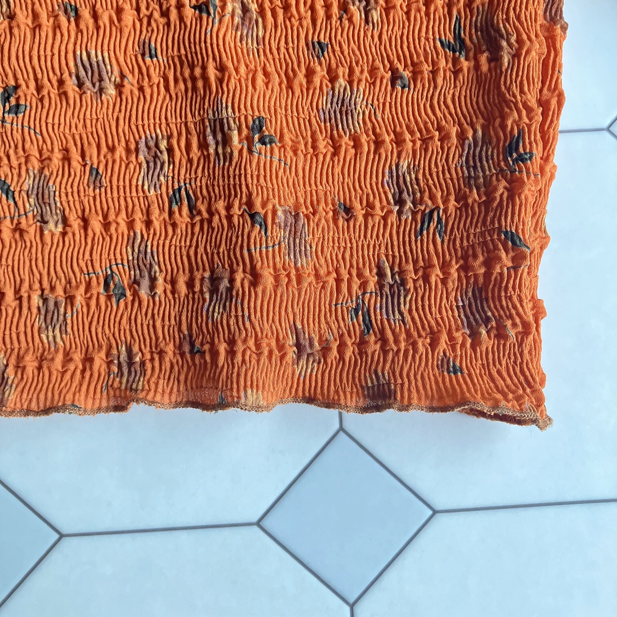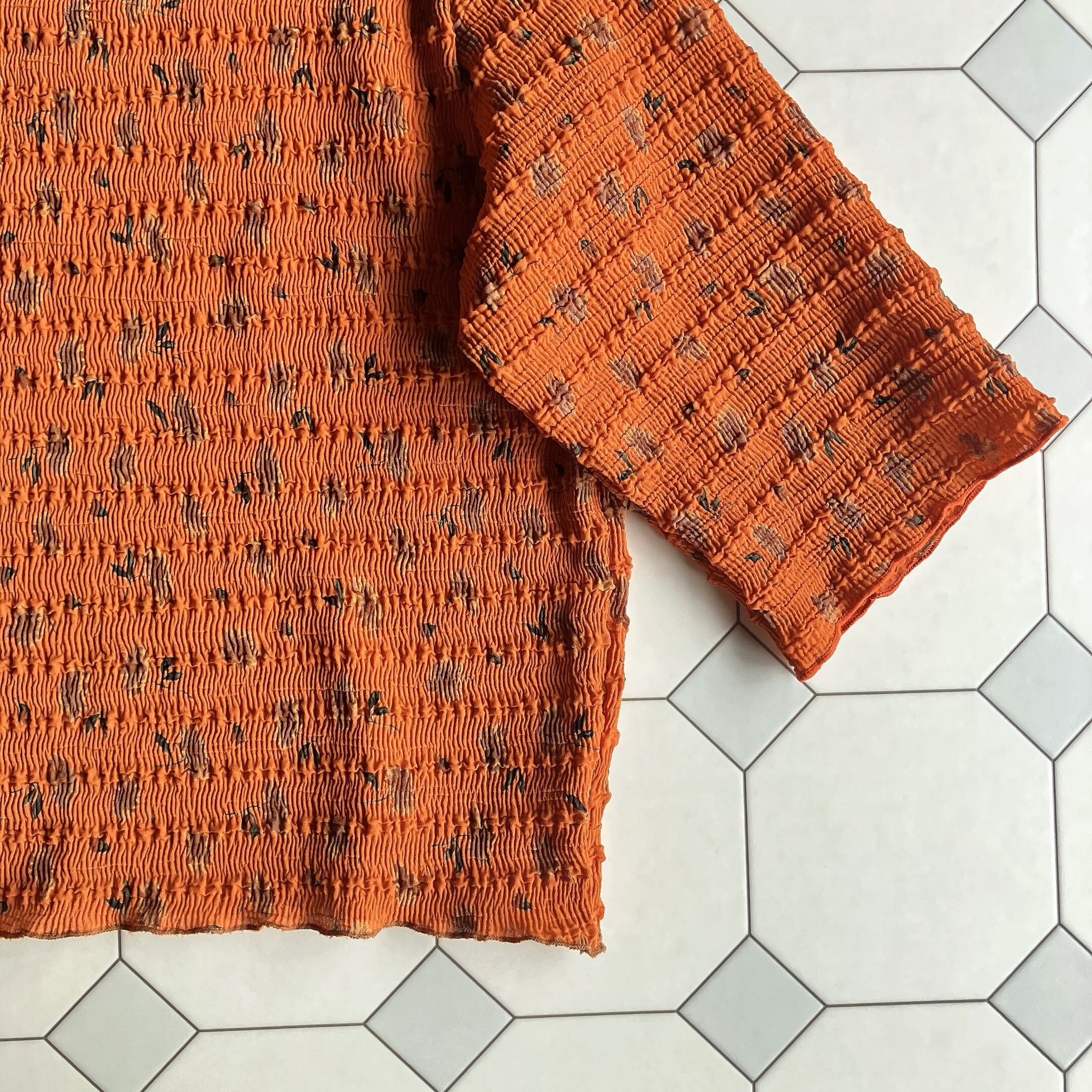 used レトロ オレンジ 花柄 トップス 古着 ヴィンテージ vintage