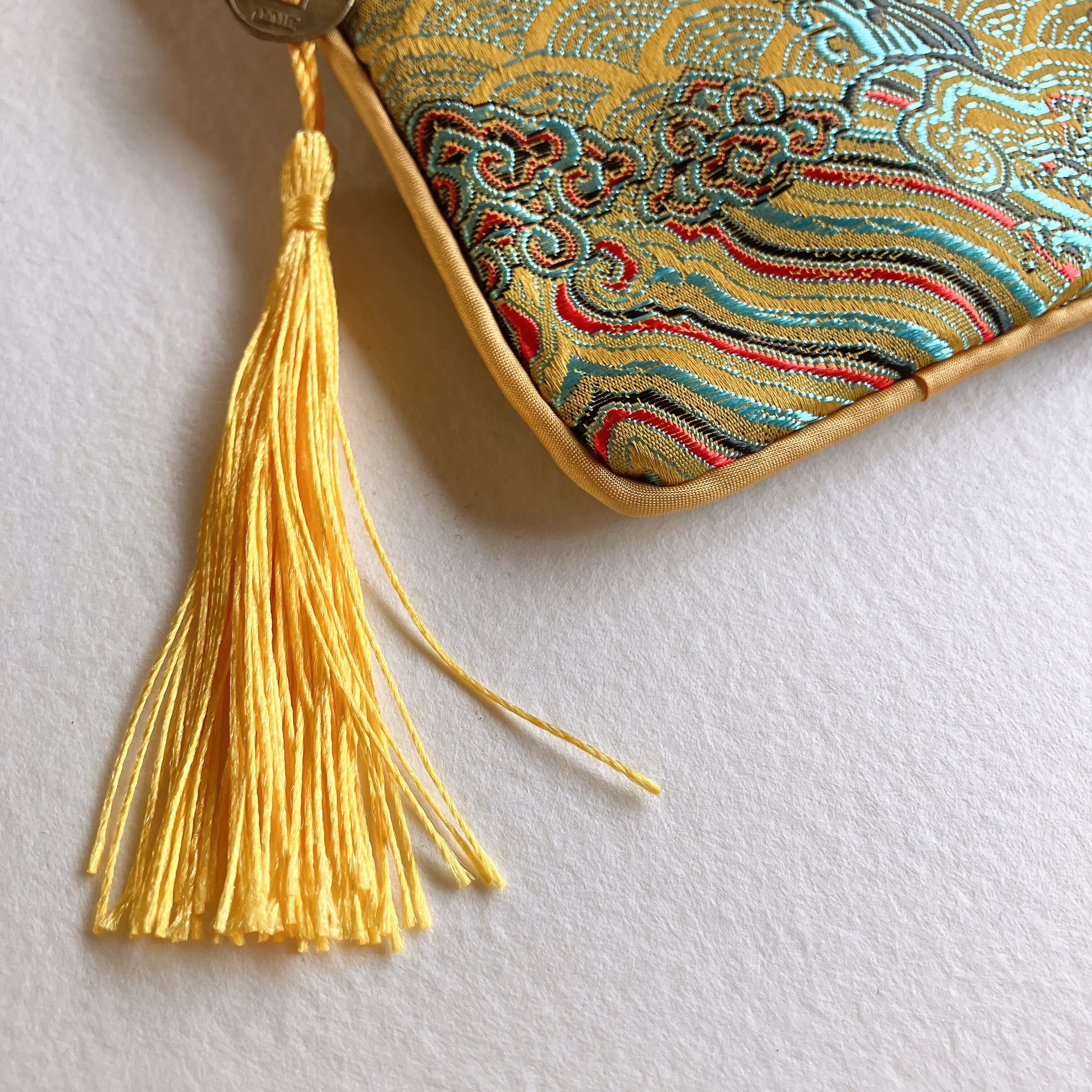 レトロ 刺繍 黄色 チャイナポーチ タッセル 古着 台湾