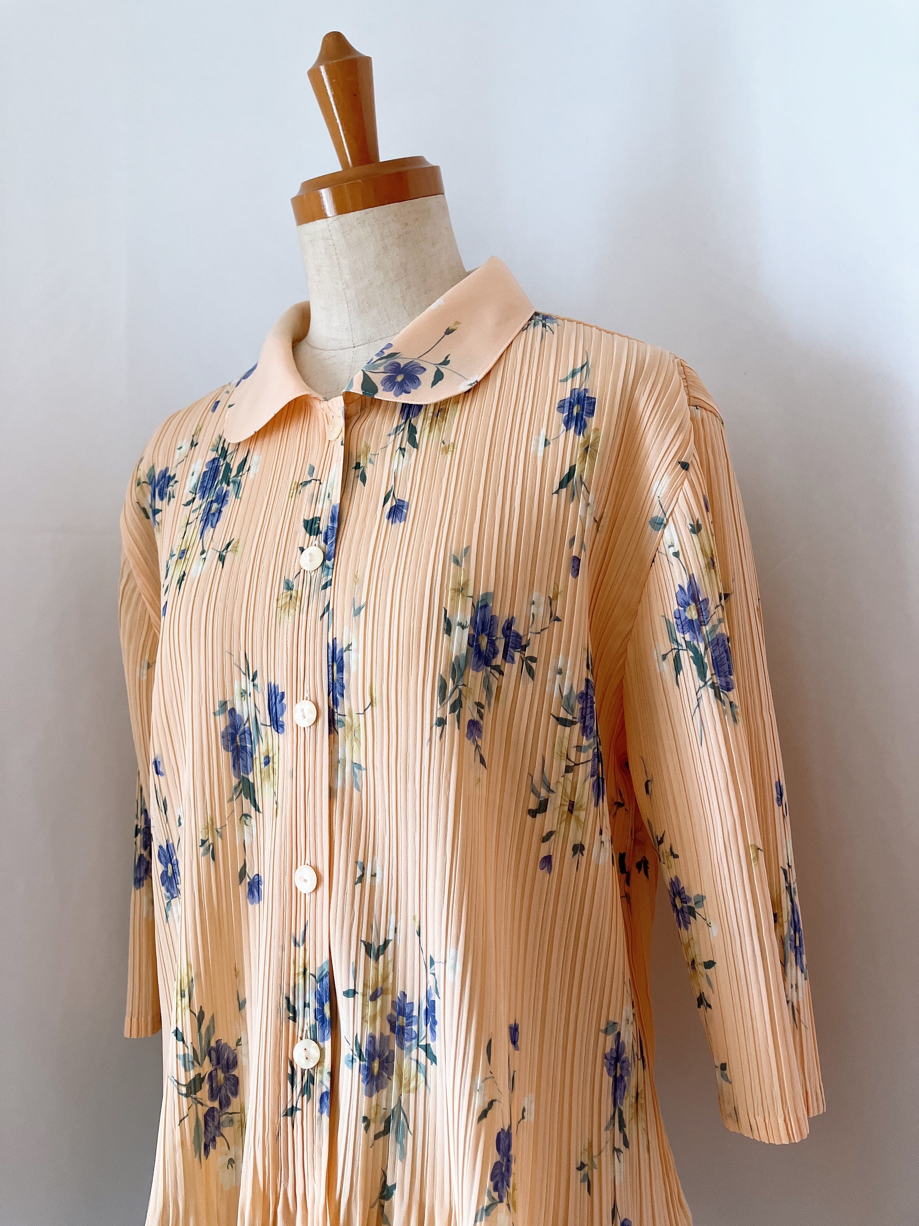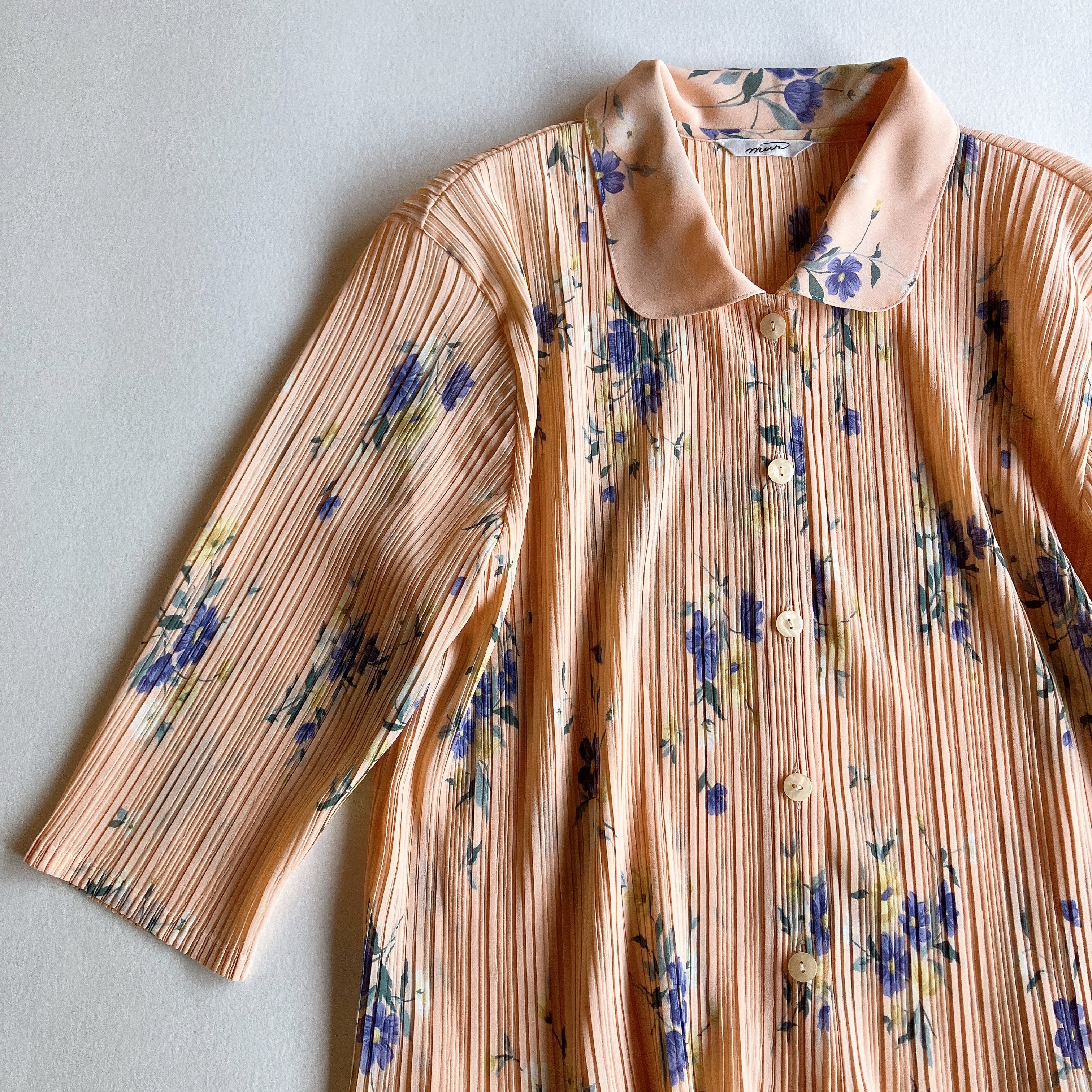 used レトロ 花柄 プリーツブラウス 古着 ヴィンテージ vintage