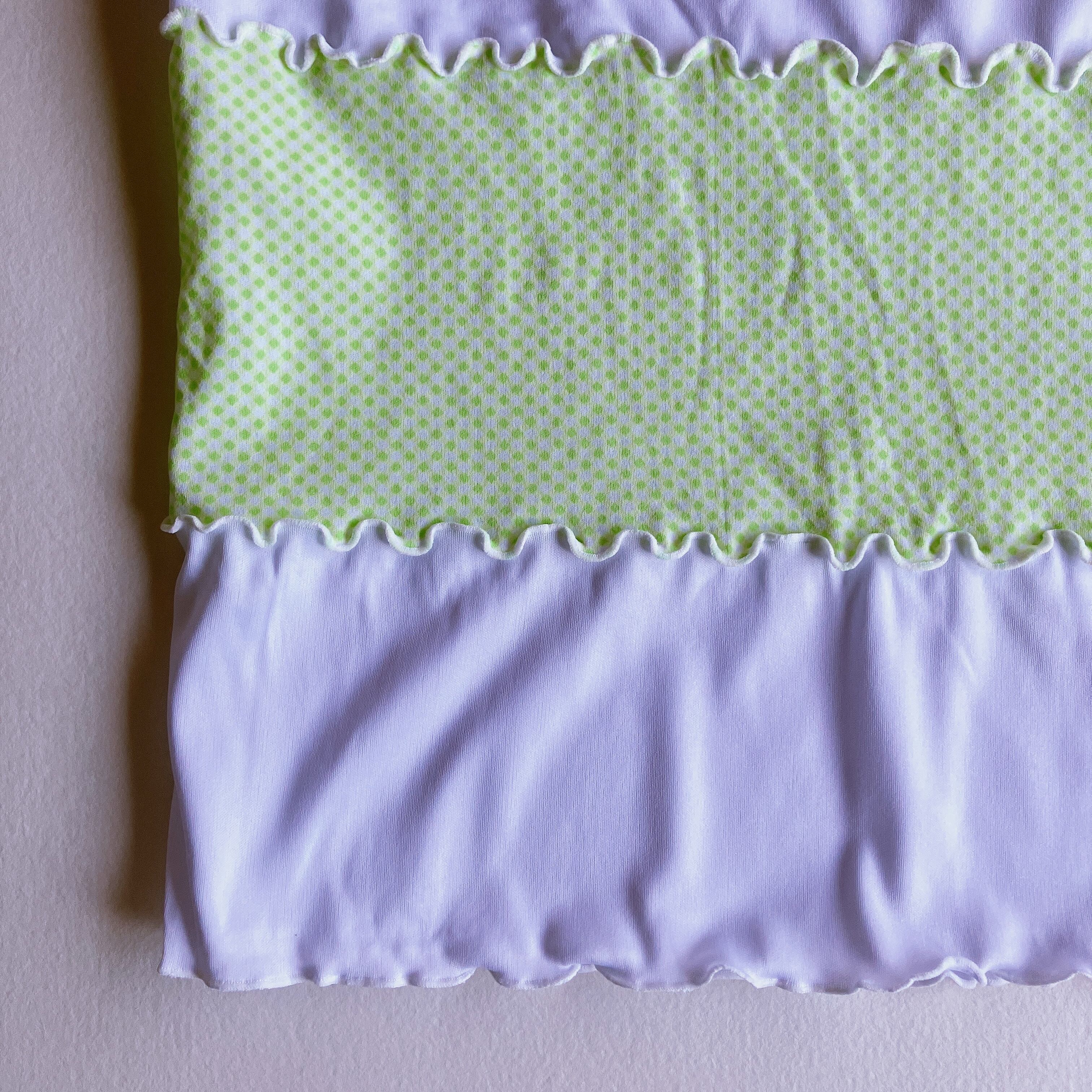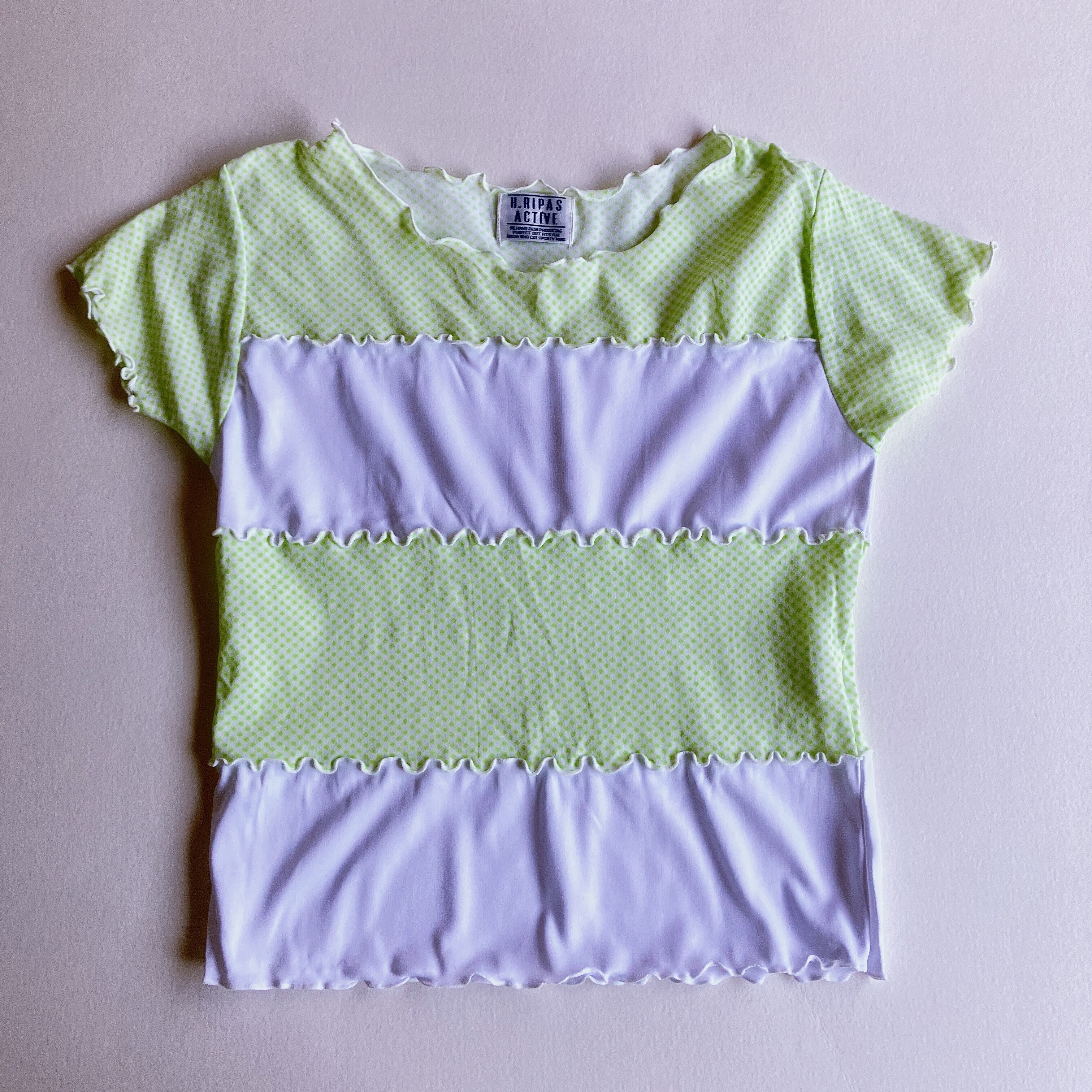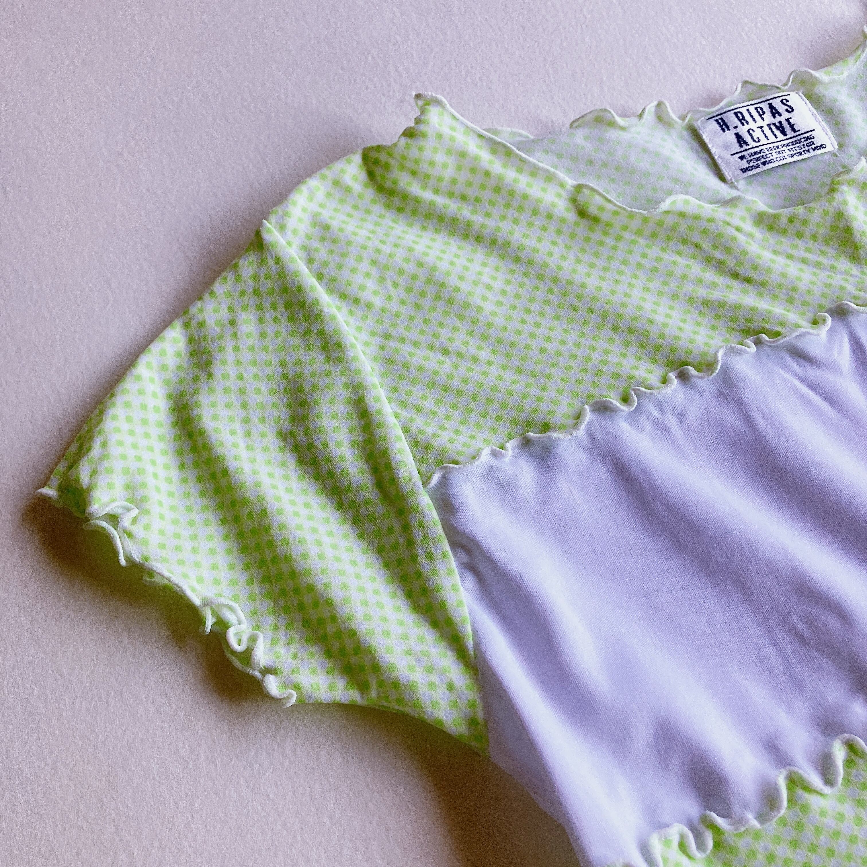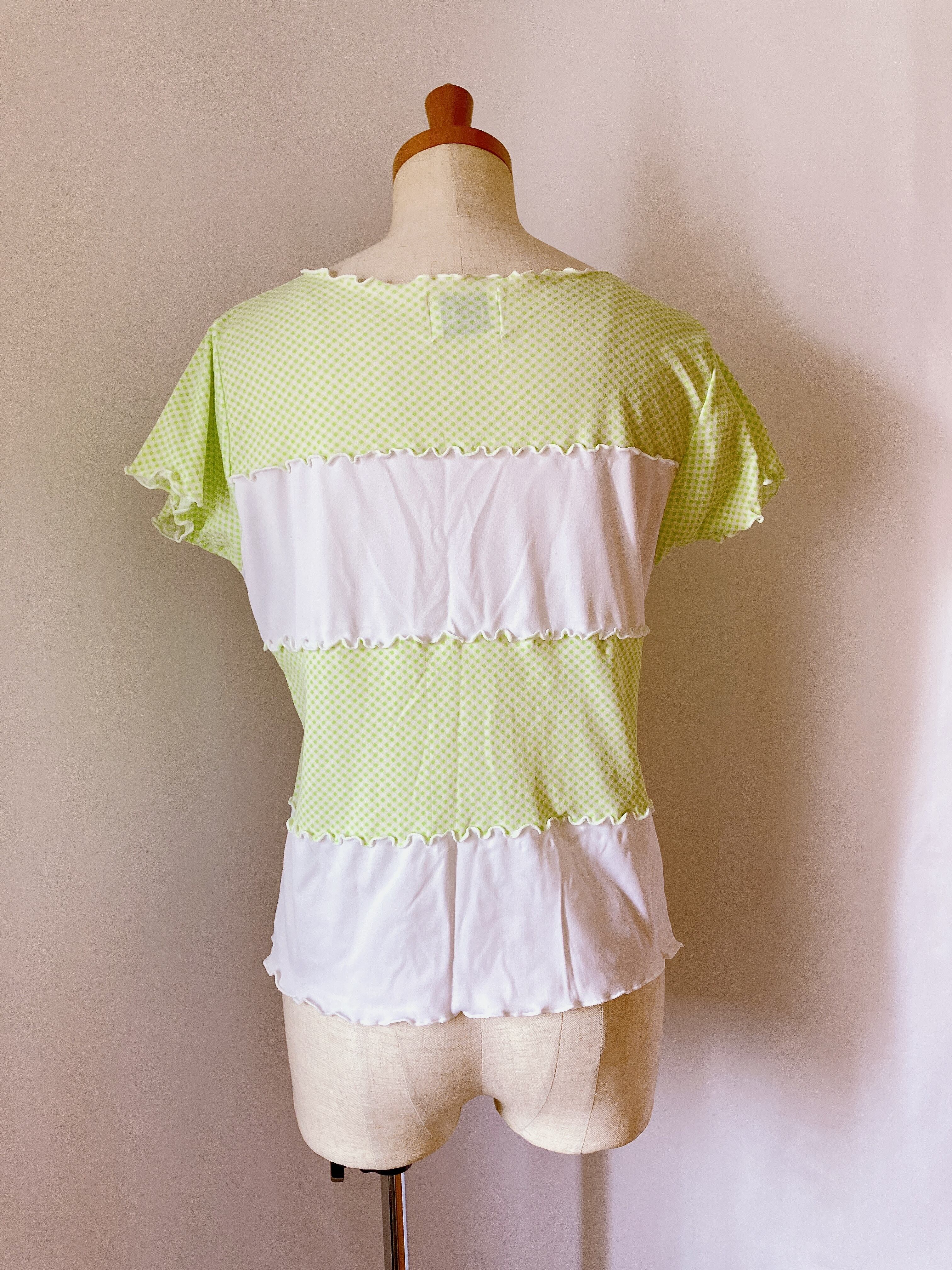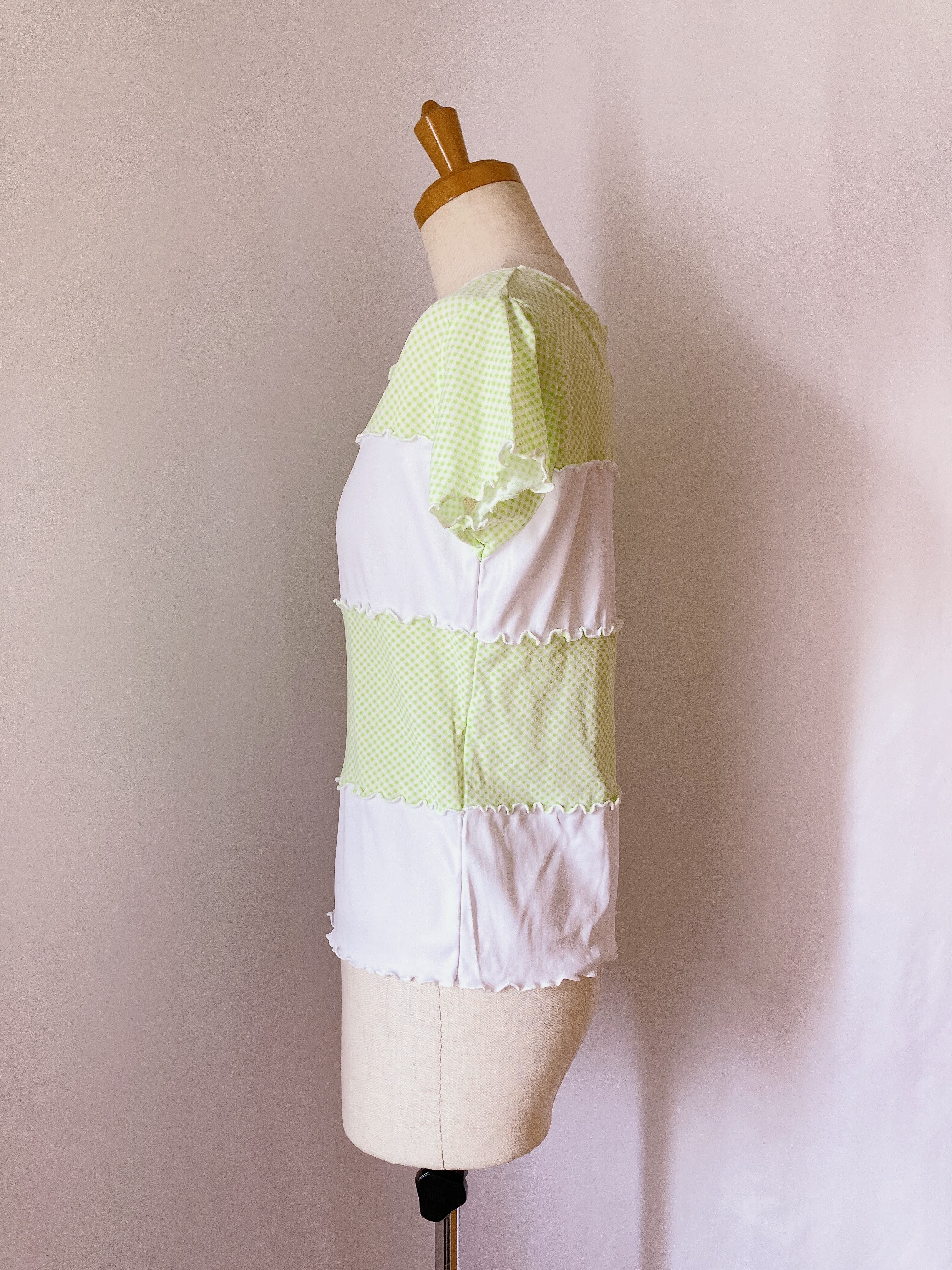 黄緑色✖️白のトップスです。