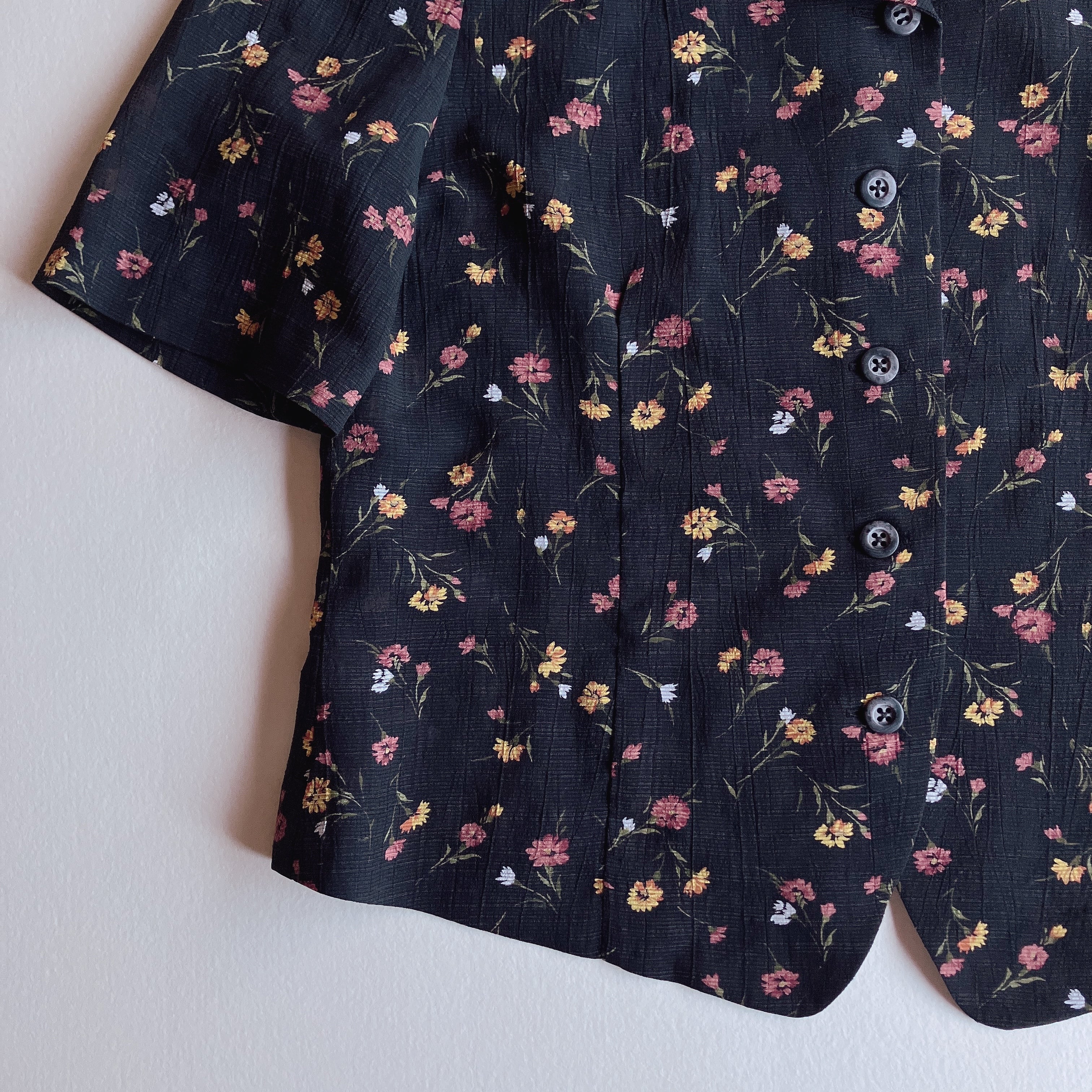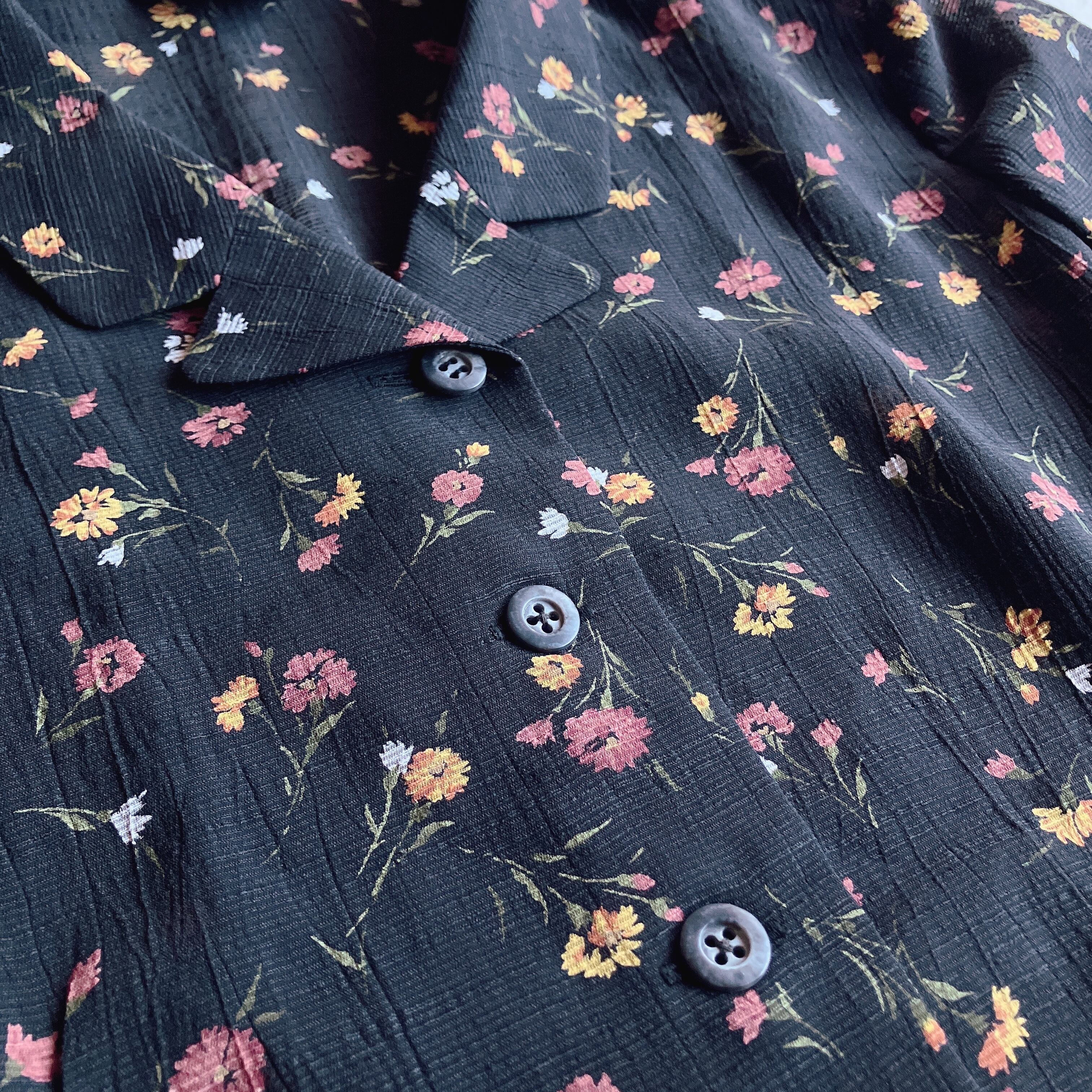 used レトロ 黒 花柄 ブラウス 古着 ヴィンテージ vintage