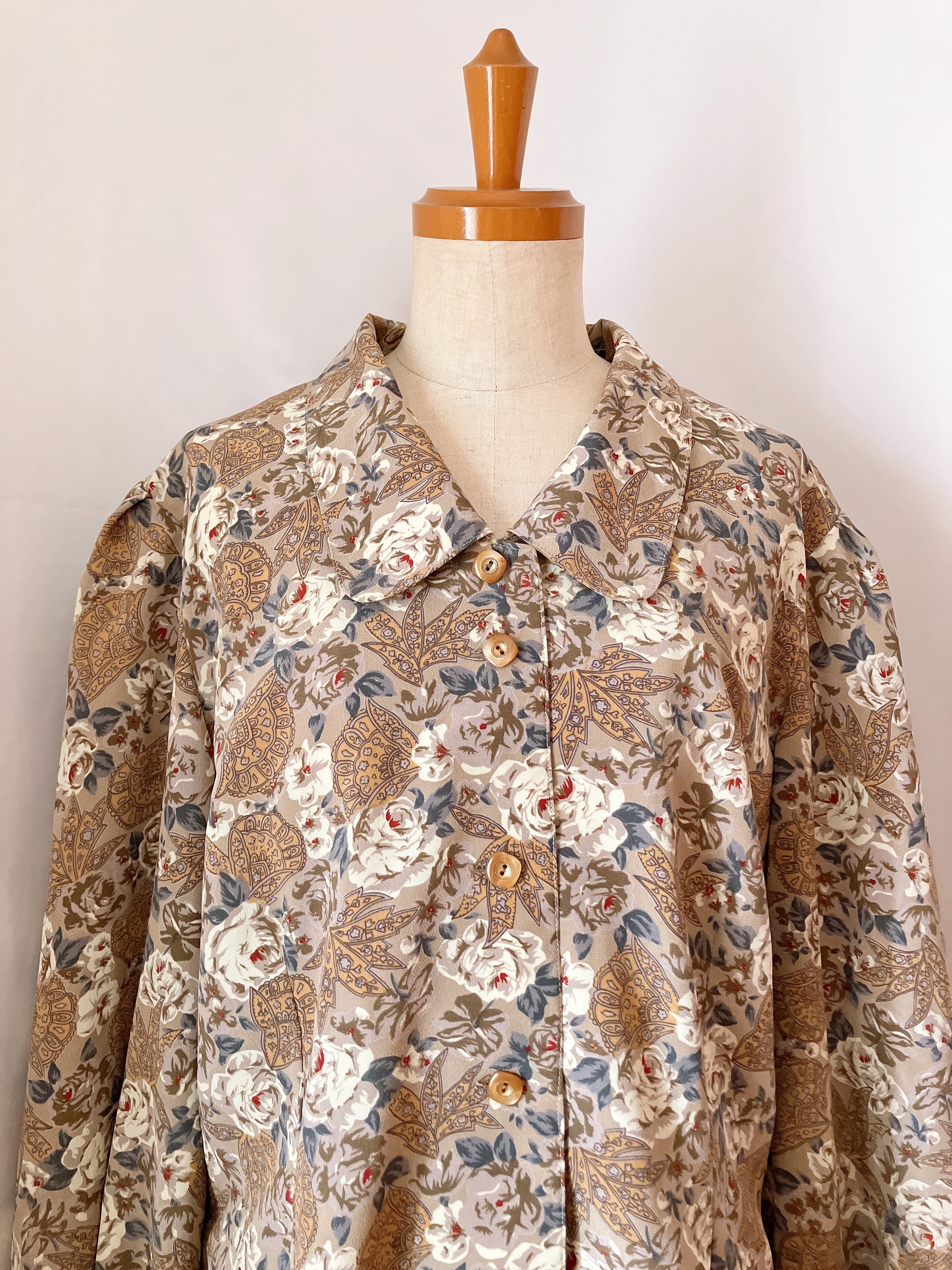 used レトロ ベージュ花柄ブラウス 古着 ヴィンテージ vintage