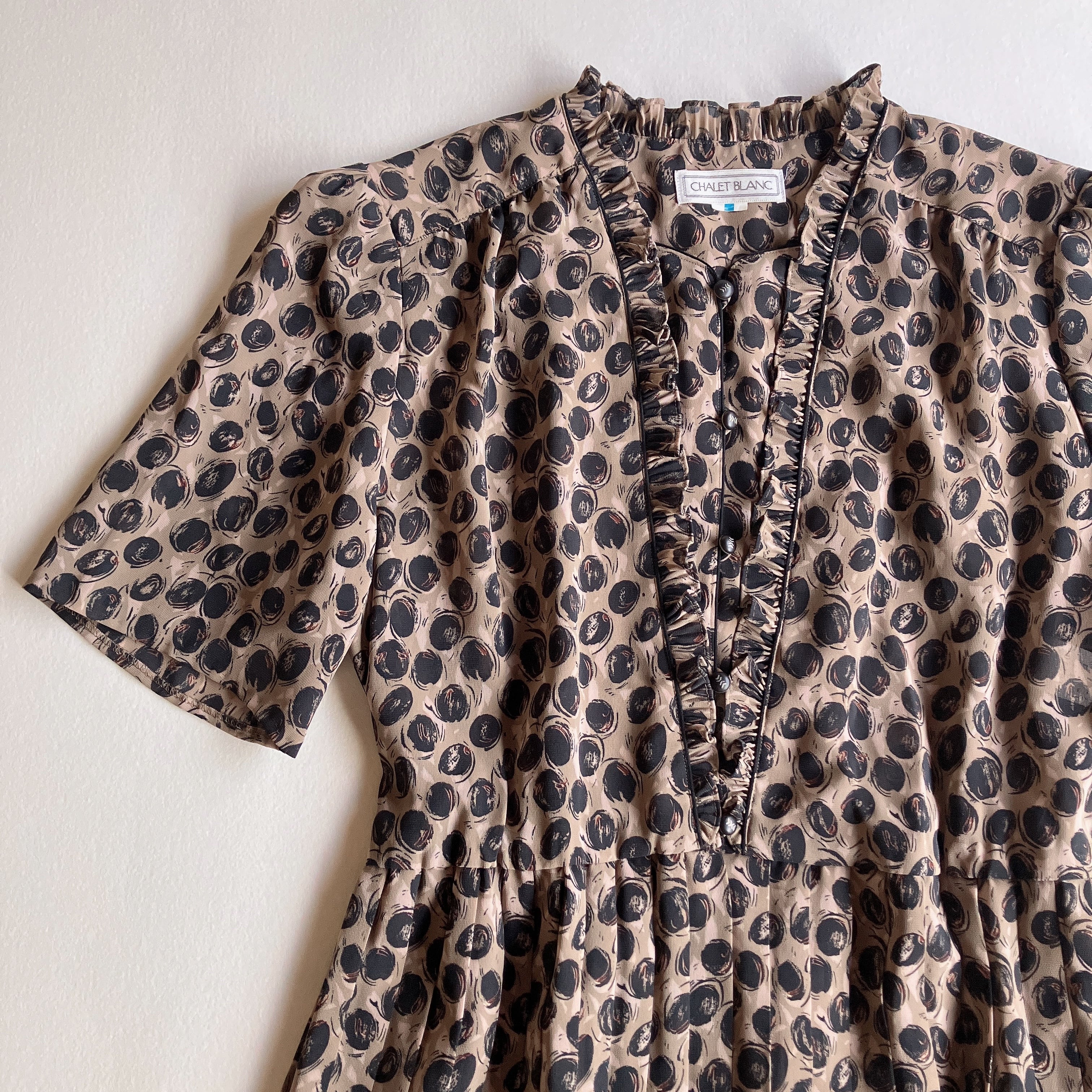 ベージュ地に黒のサークル柄が散りばめられた個性的なデザインで、