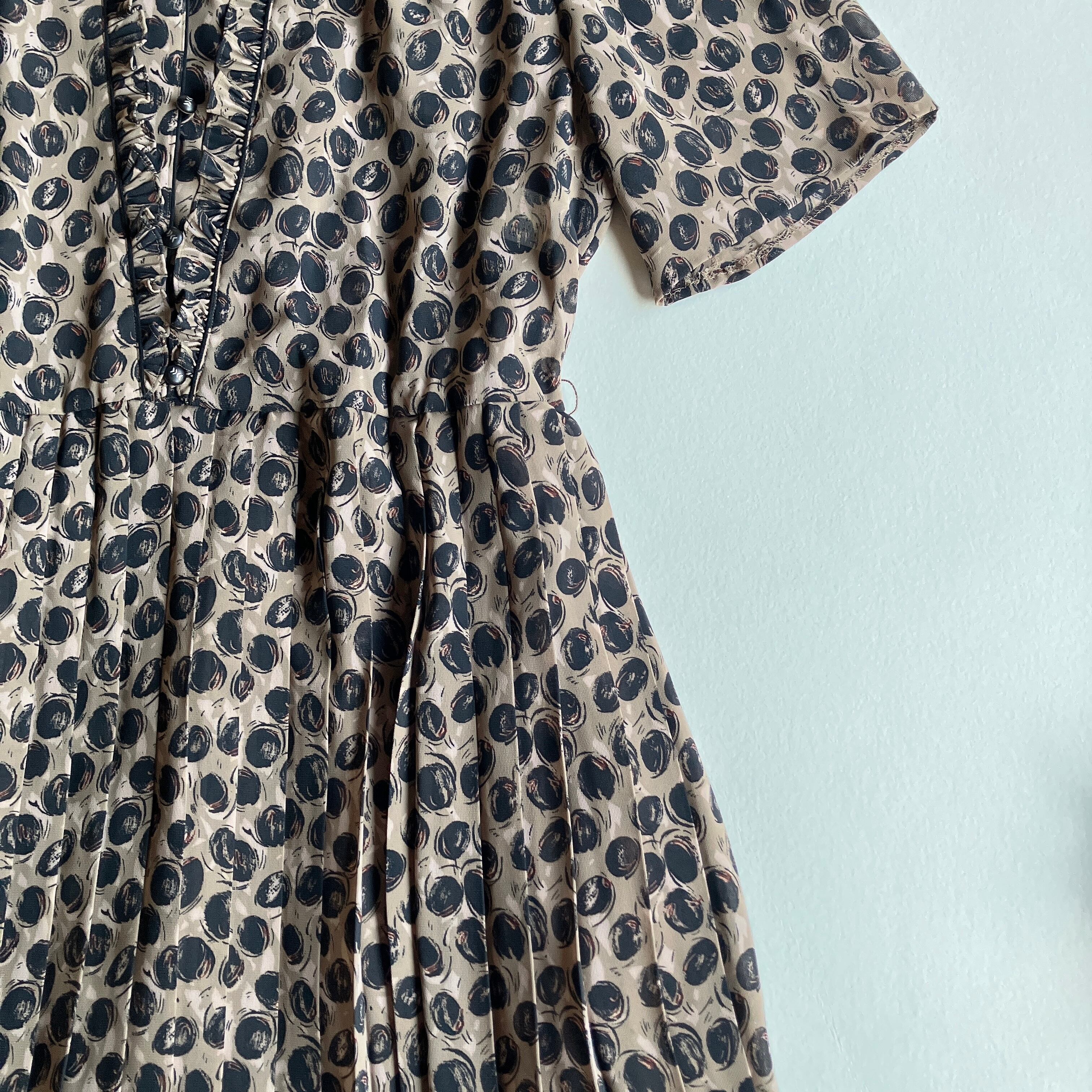 used レトロ ベージュ 総柄ワンピース 古着 ヴィンテージ vintage