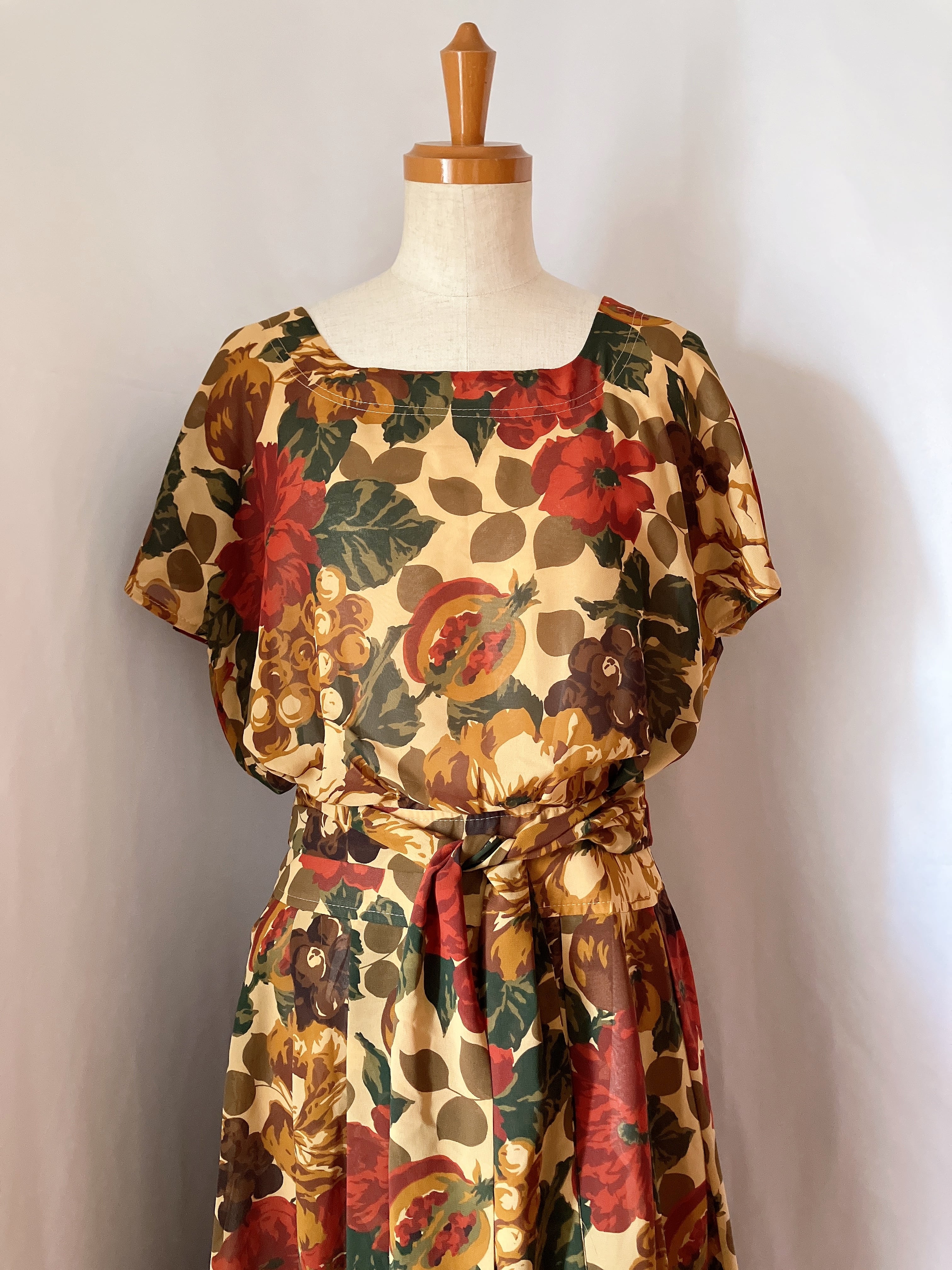 used レトロ 花 果実柄 ワンピース 古着 ヴィンテージ vintage