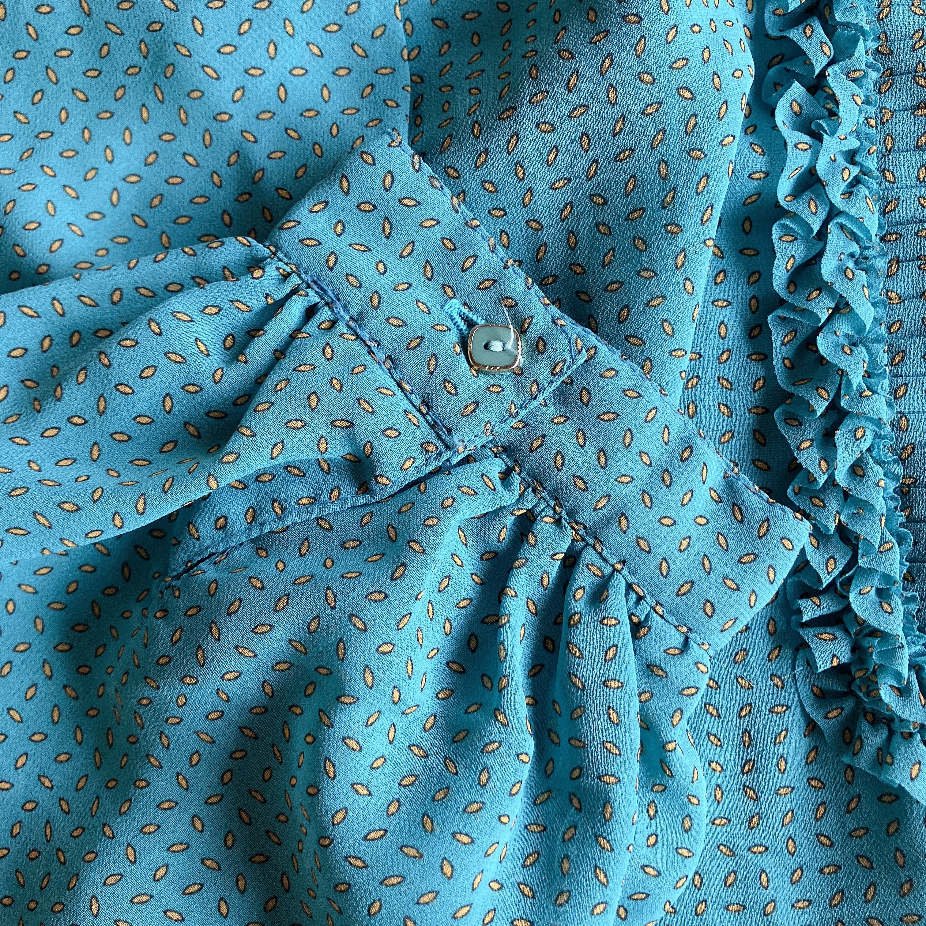 used レトロ 水色 フリルブラウス 古着 ヴィンテージ vintage