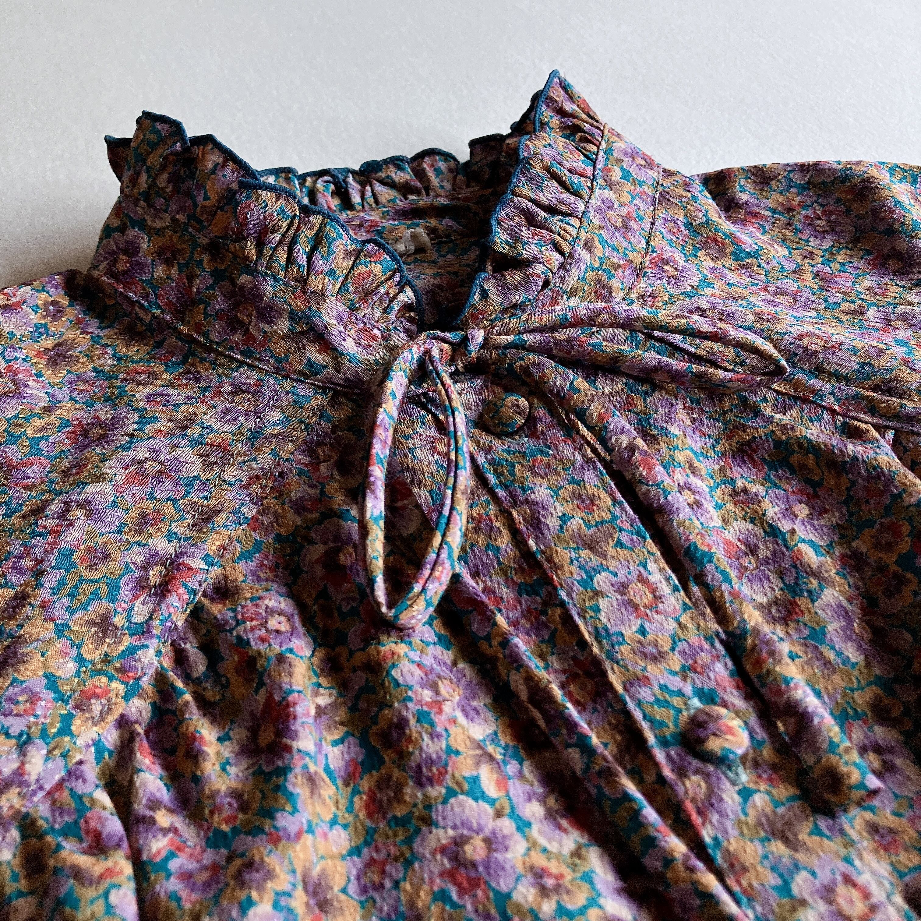 used レトロ 小花柄 リボン ブラウス 古着 ヴィンテージ vintage