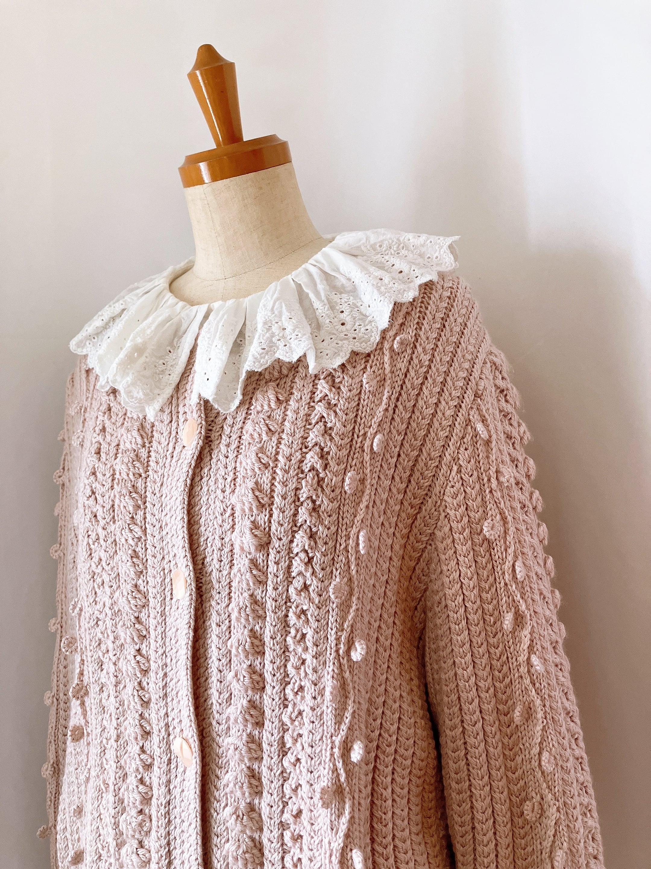used レトロ ピンクポンポン ニットカーデ古着 ヴィンテージ vintage