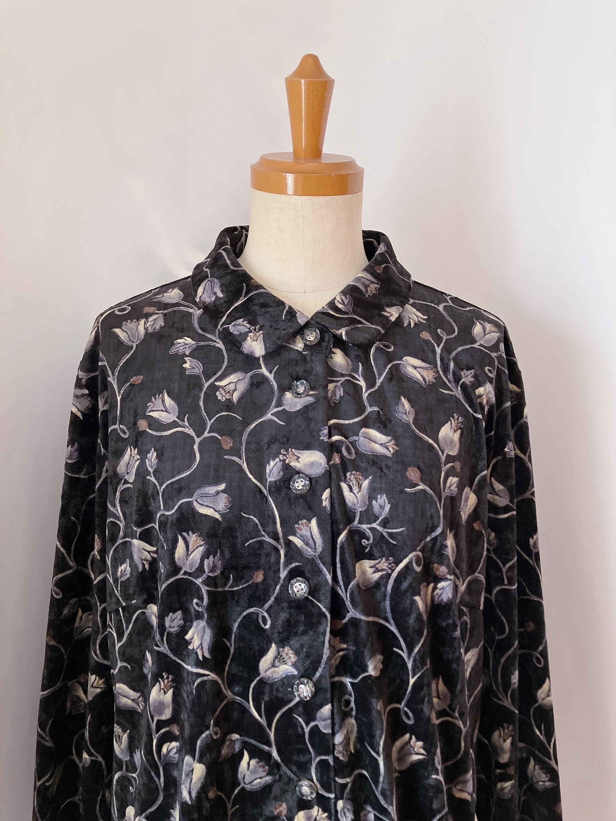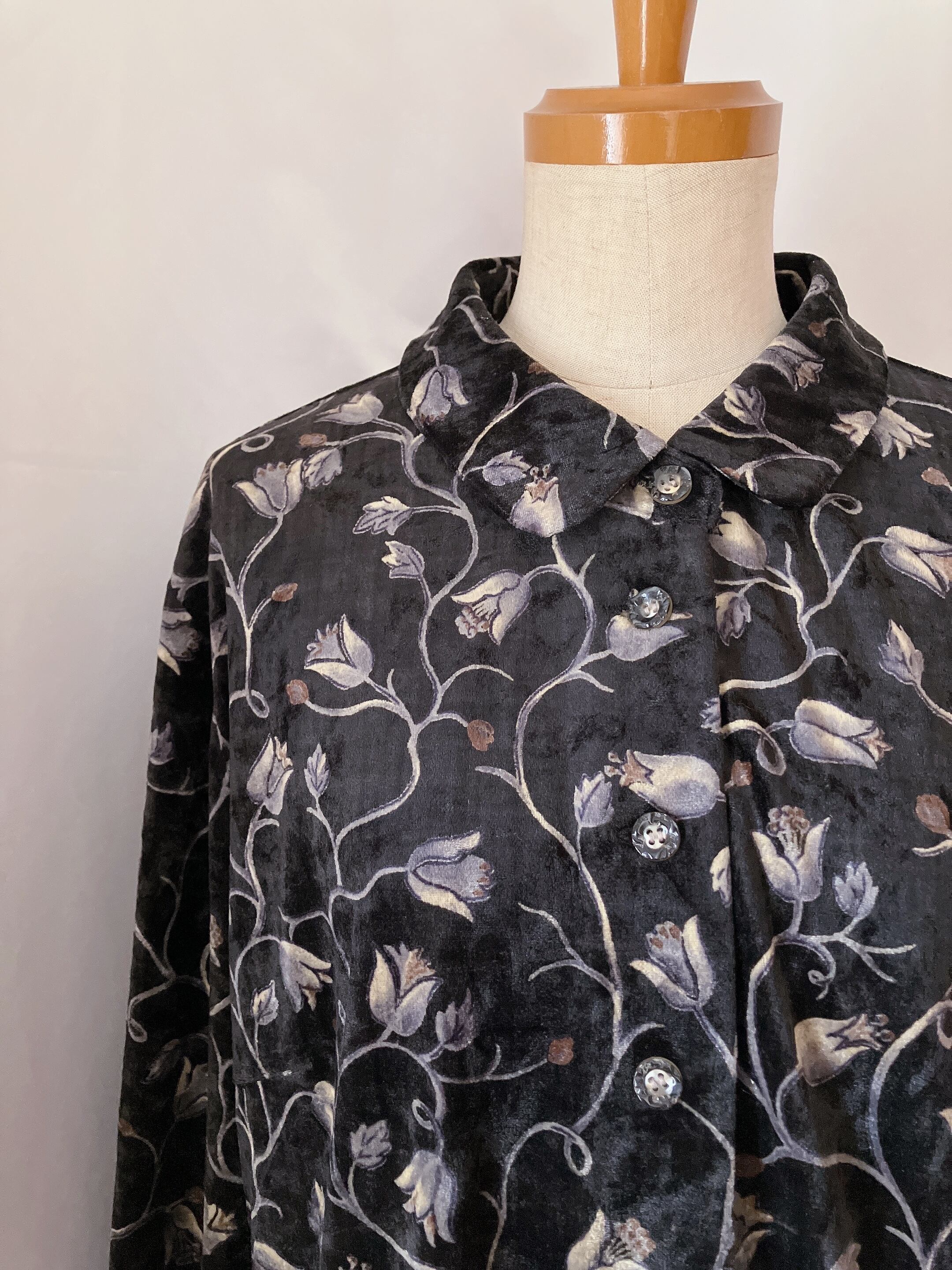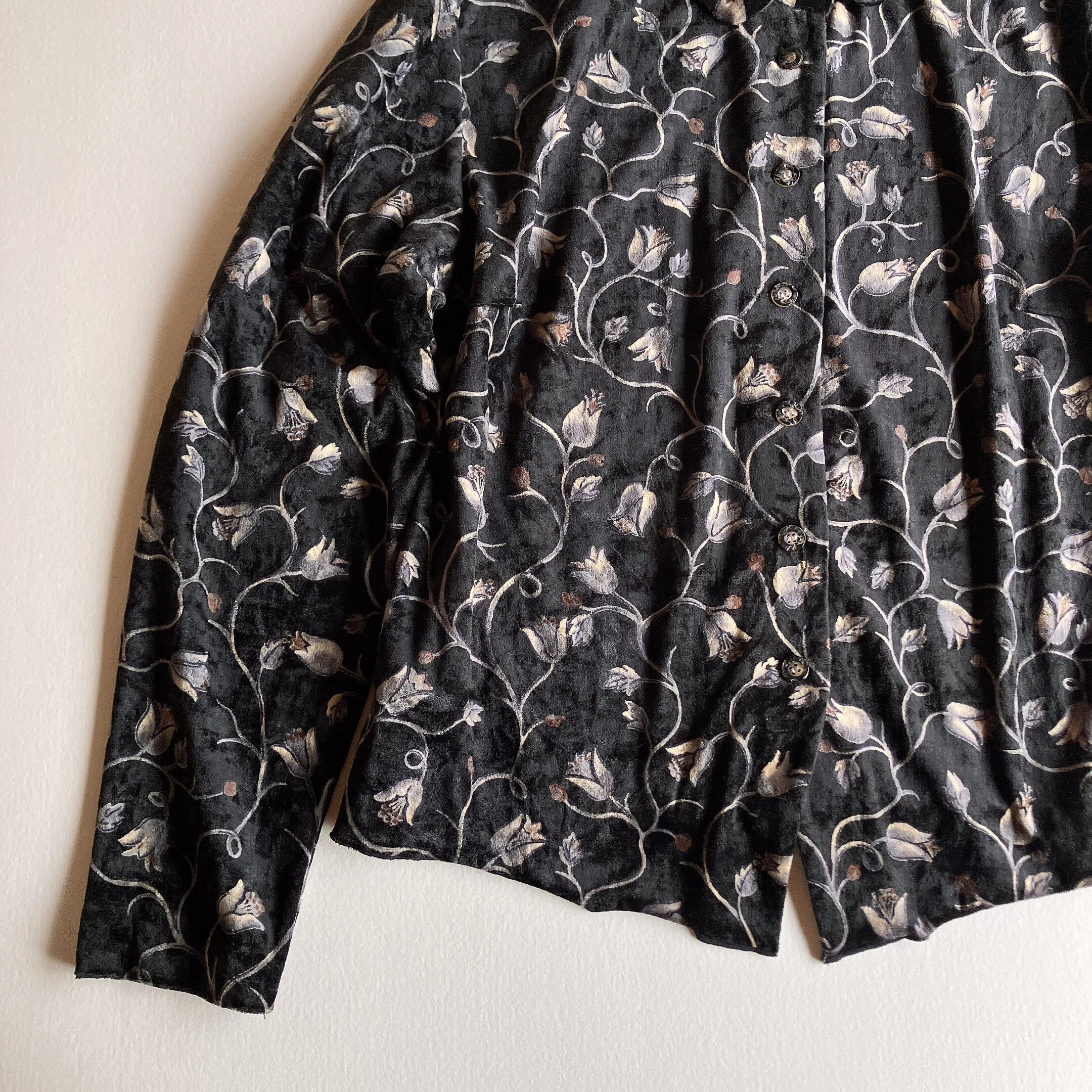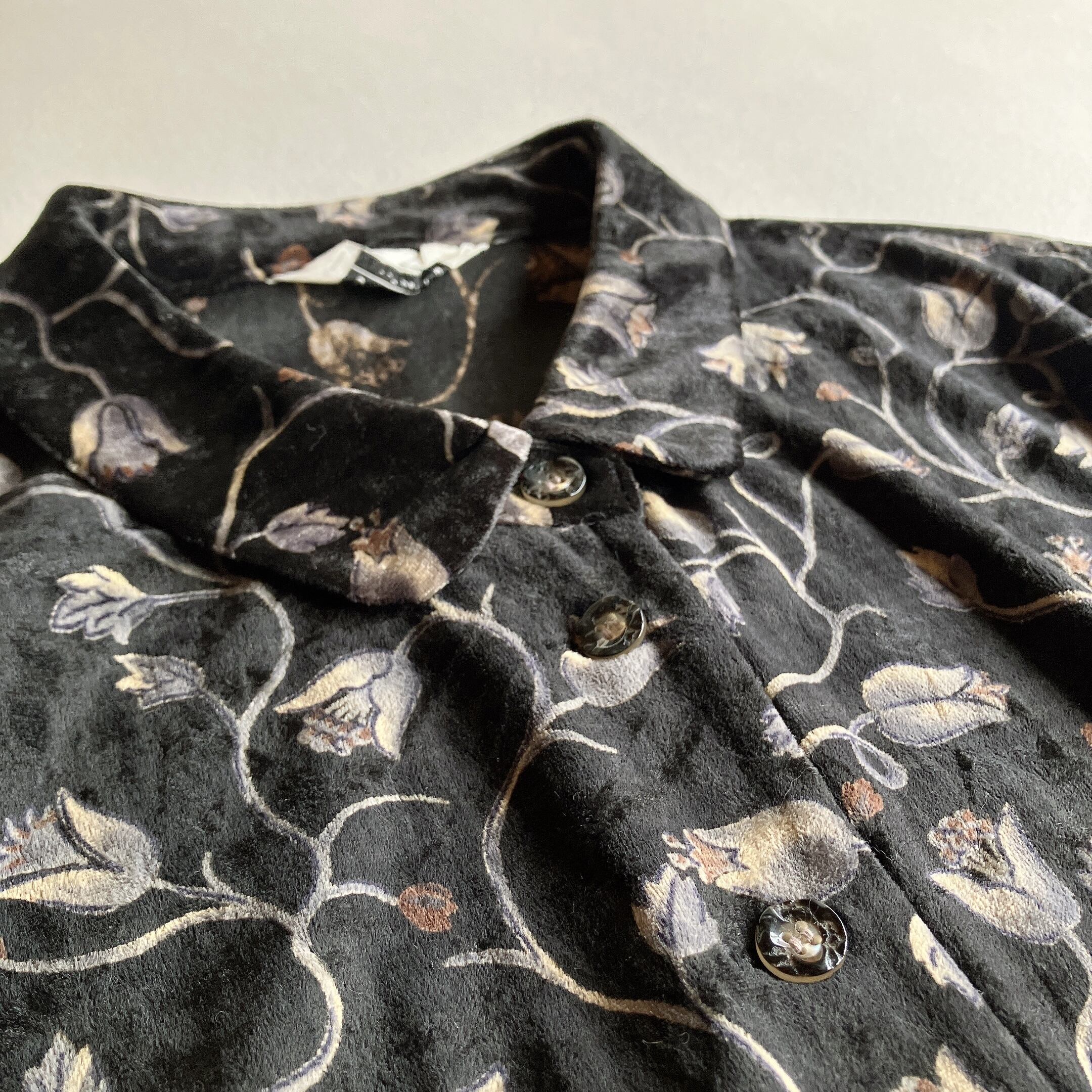 used レトロ ベロア調 花柄ブラウス 古着 ヴィンテージ vintage