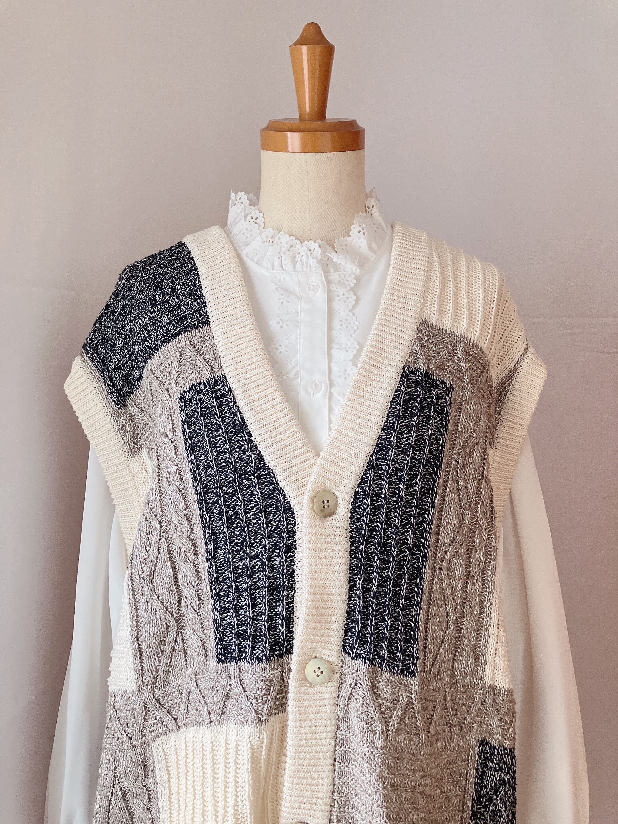 used レトロ 模様編み ニット ベスト 古着 ヴィンテージ vintage