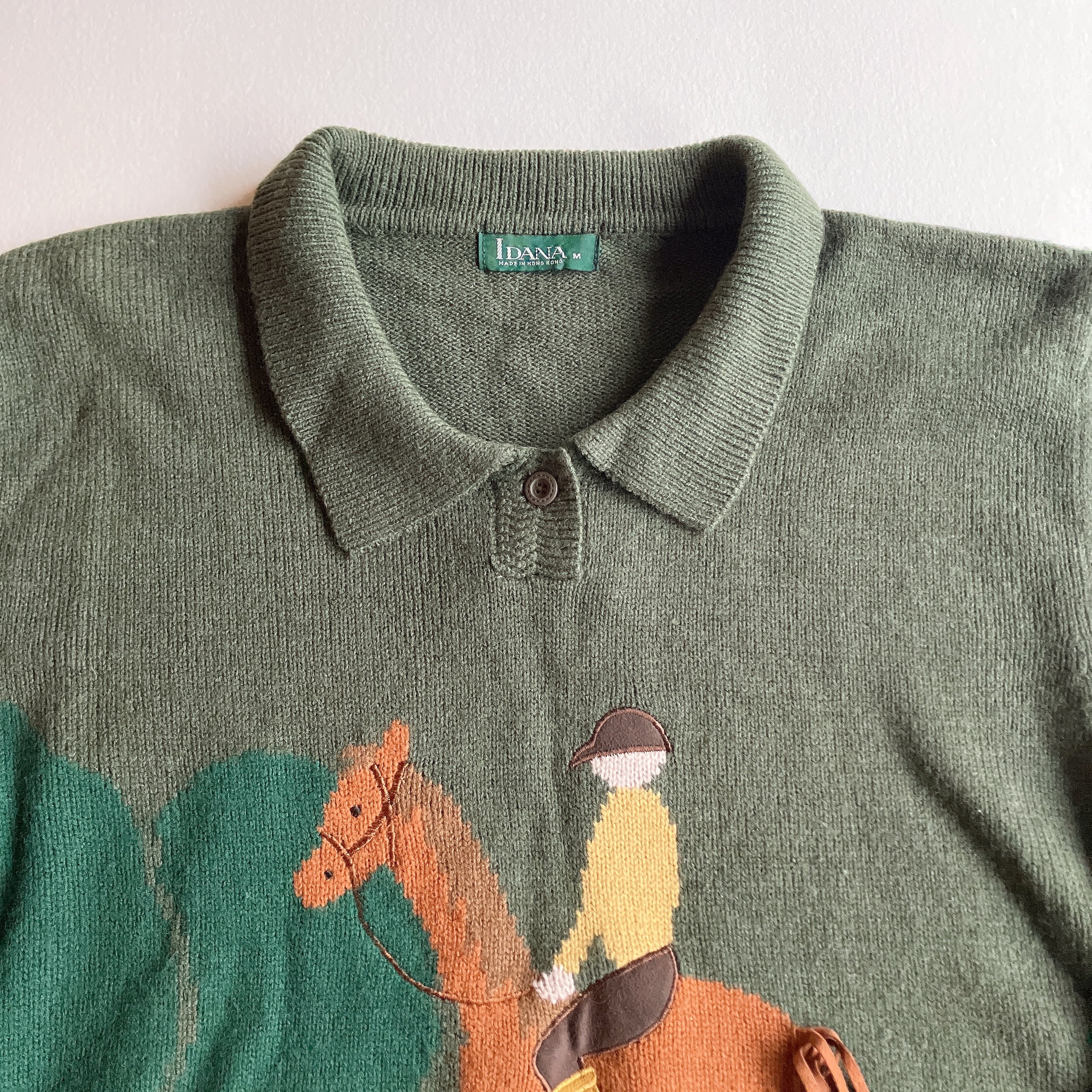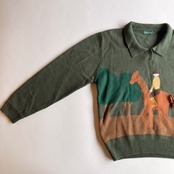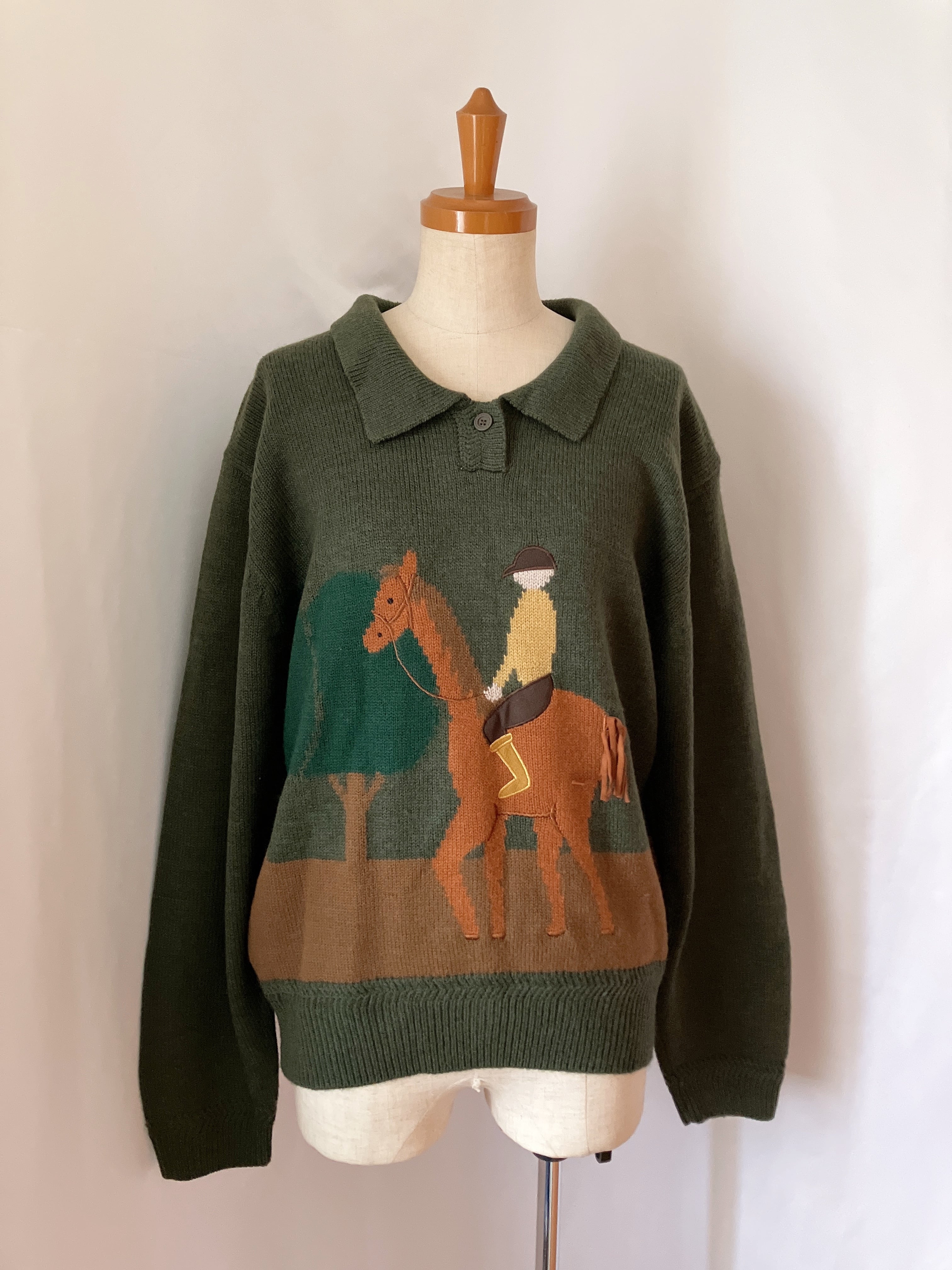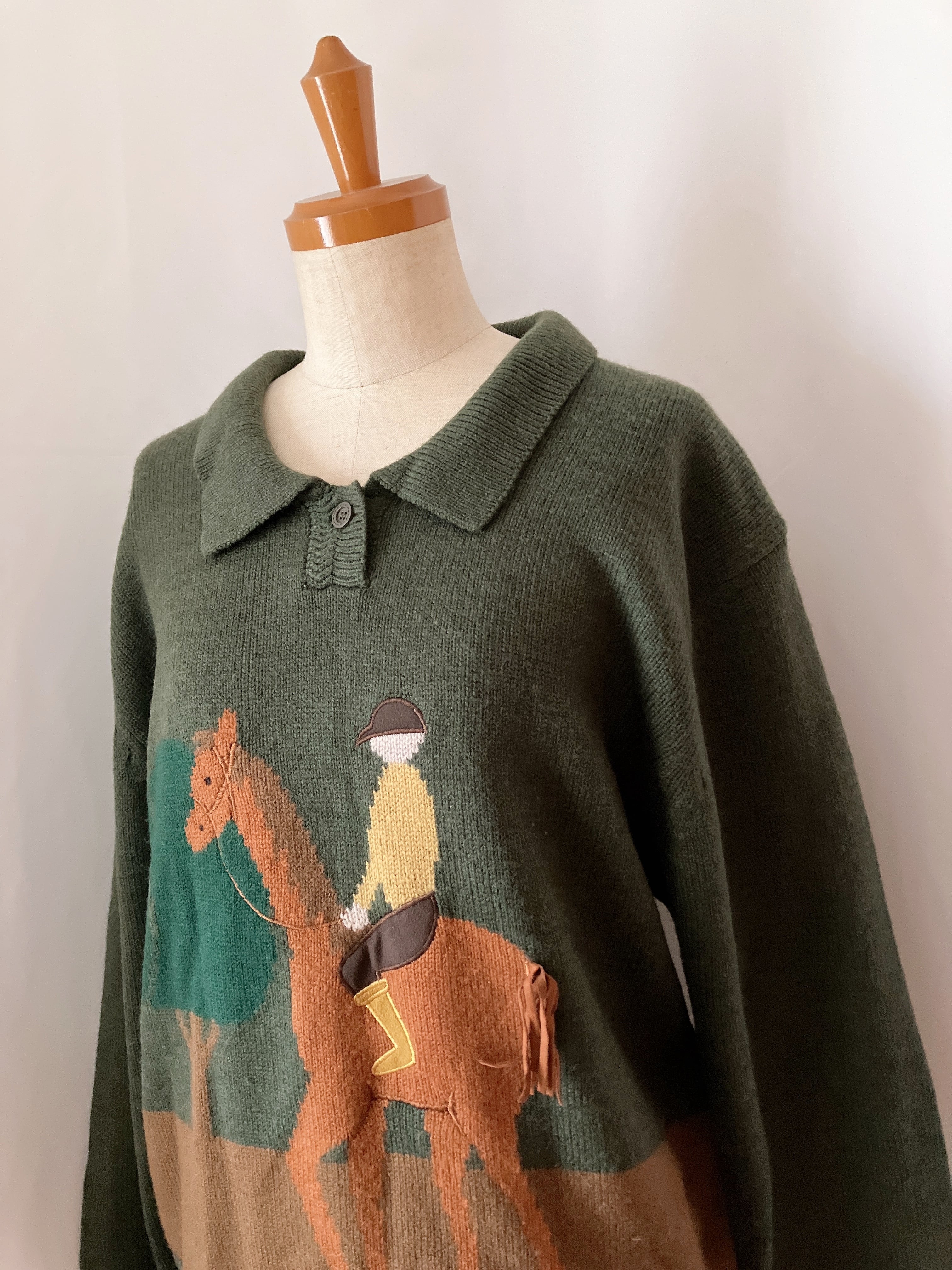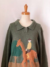 used レトロ 馬 ニットポロ セーター 古着 ヴィンテージ vintage