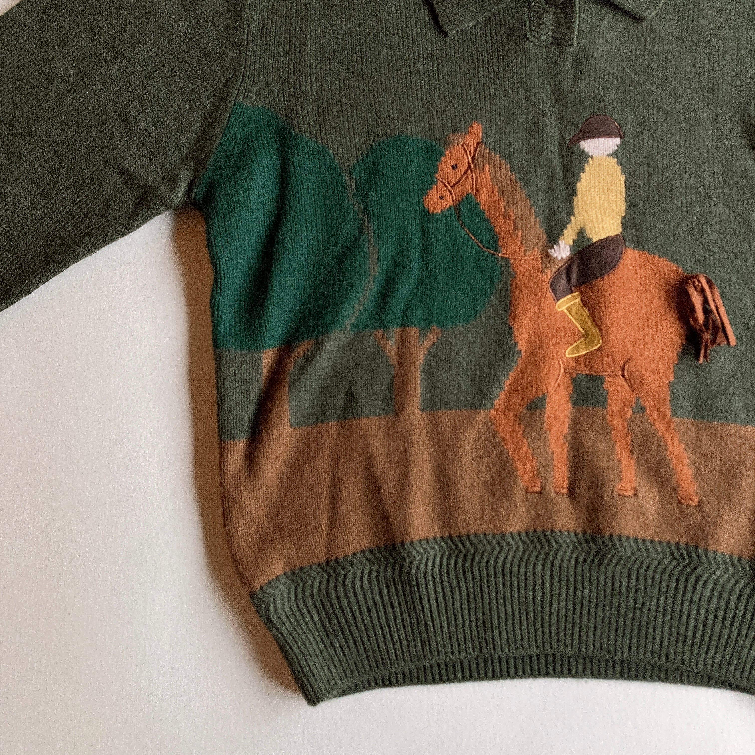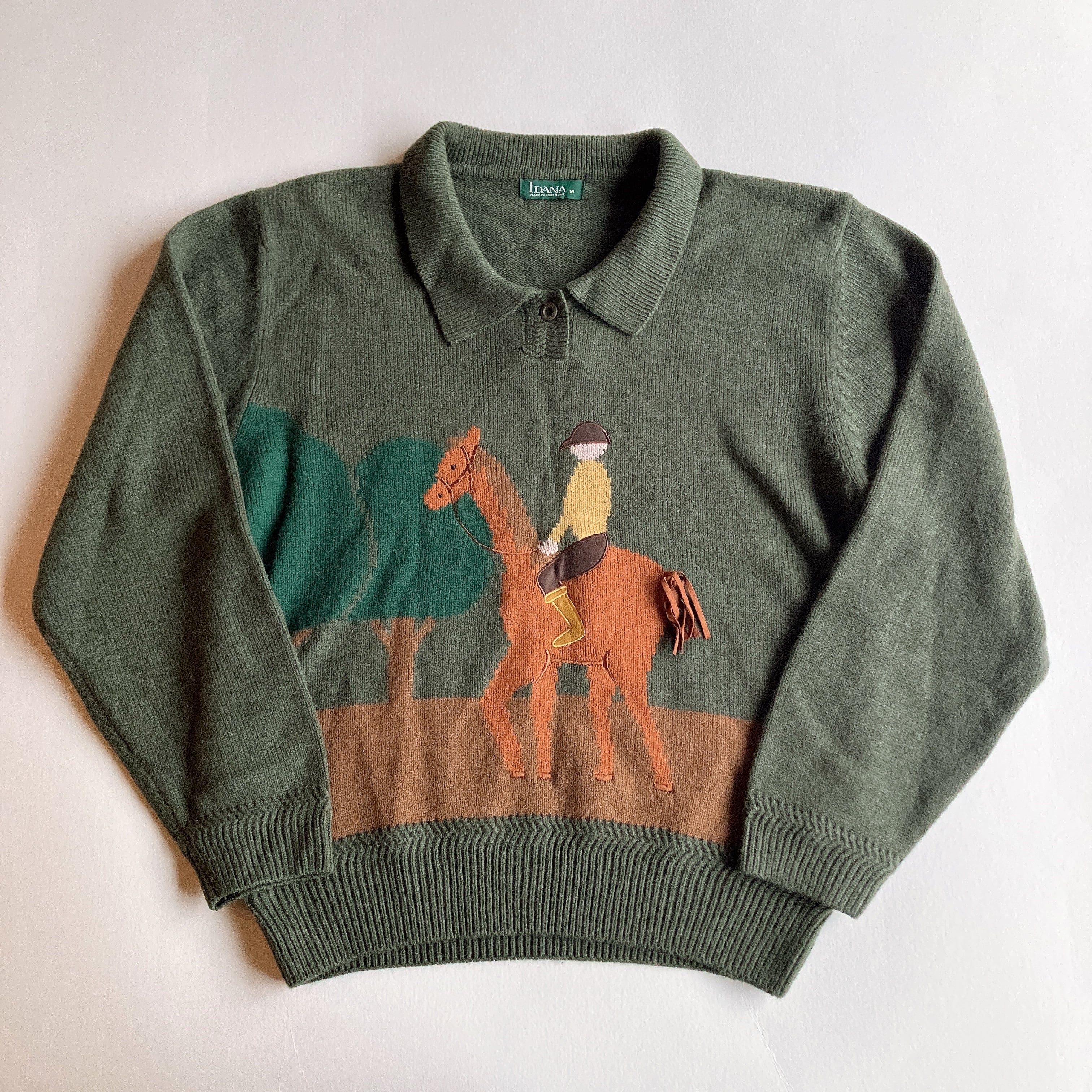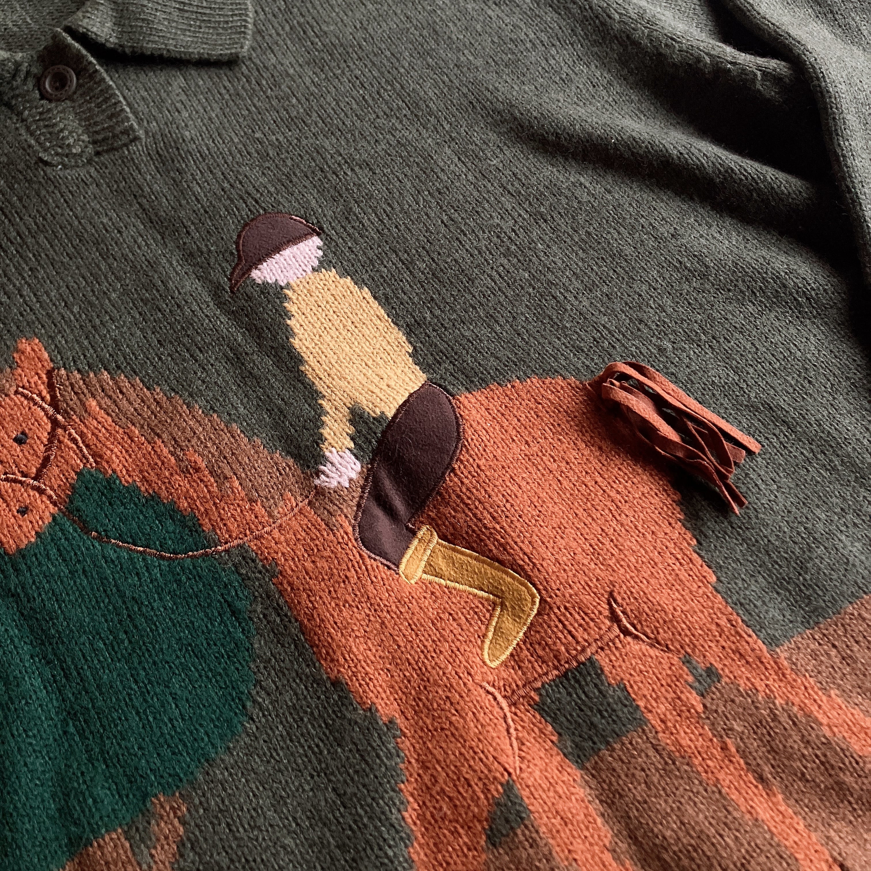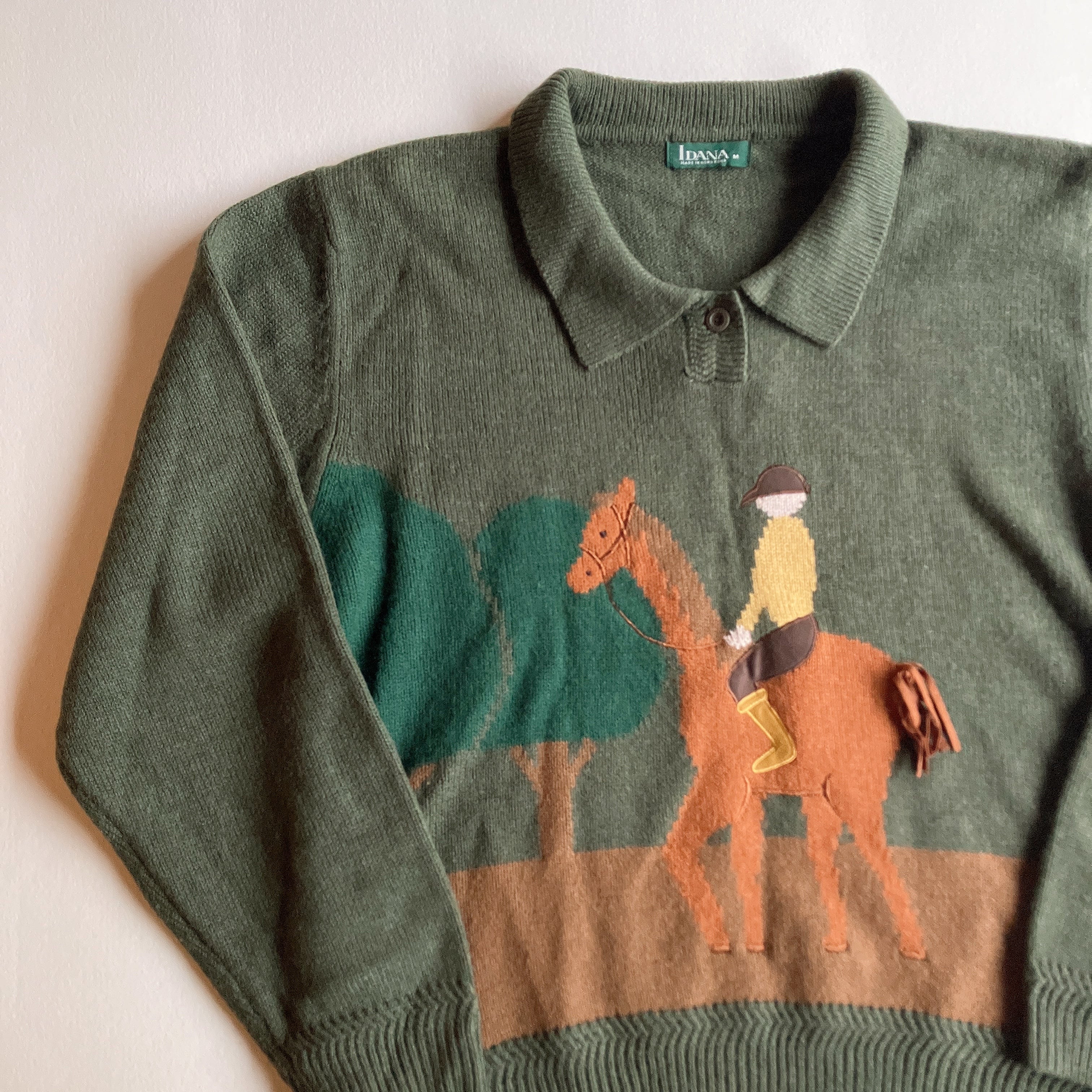 used レトロ 馬 ニットポロ セーター 古着 ヴィンテージ vintage