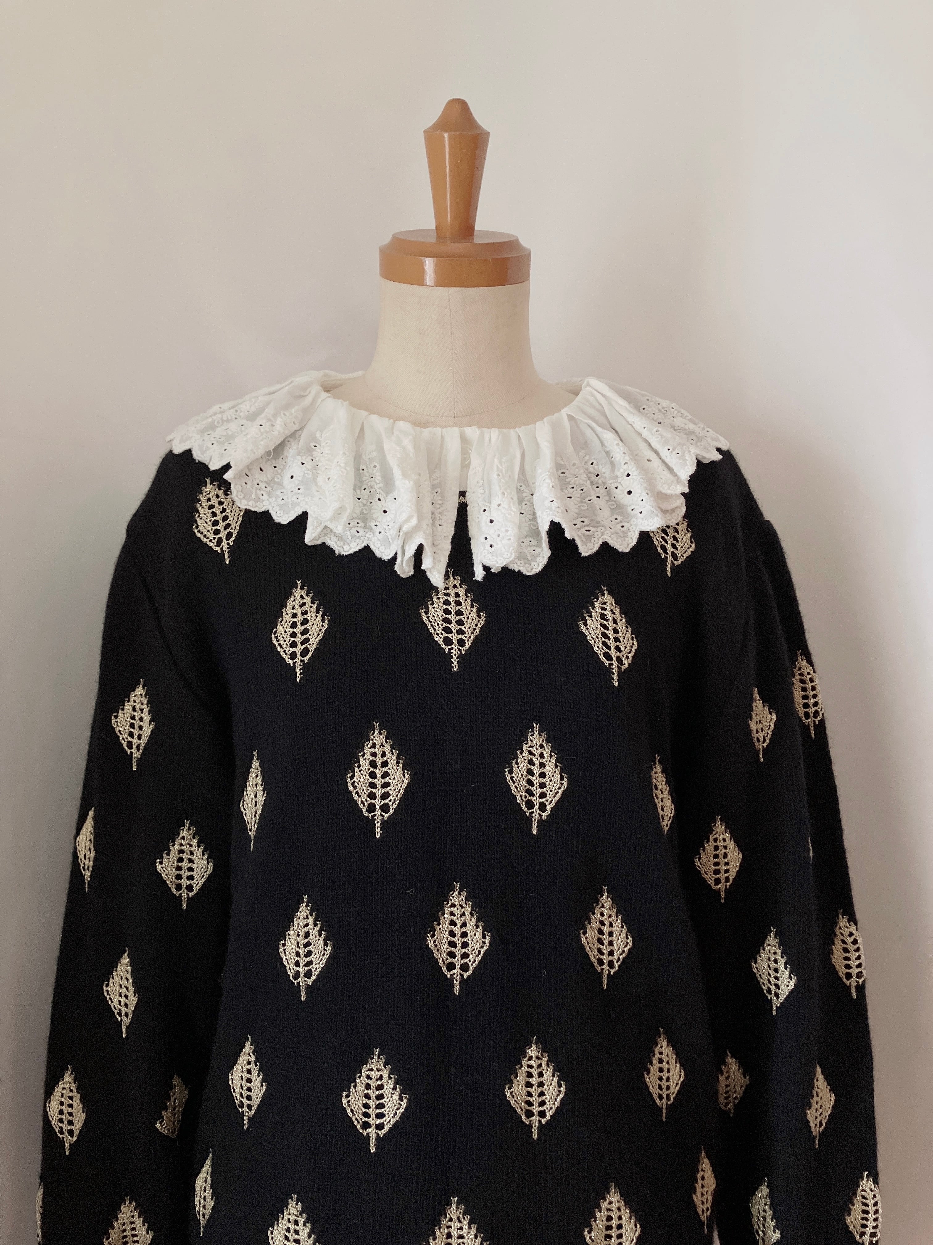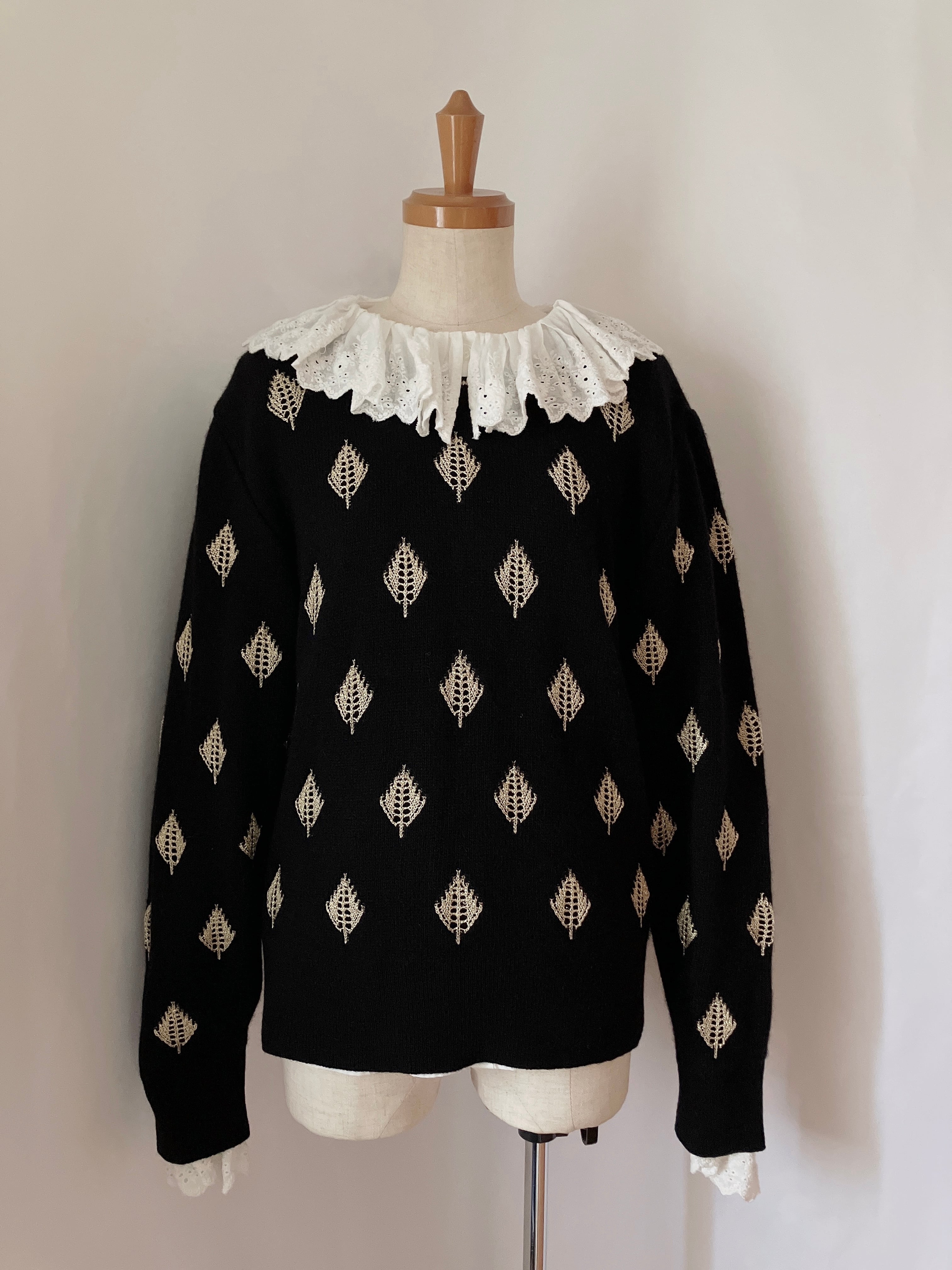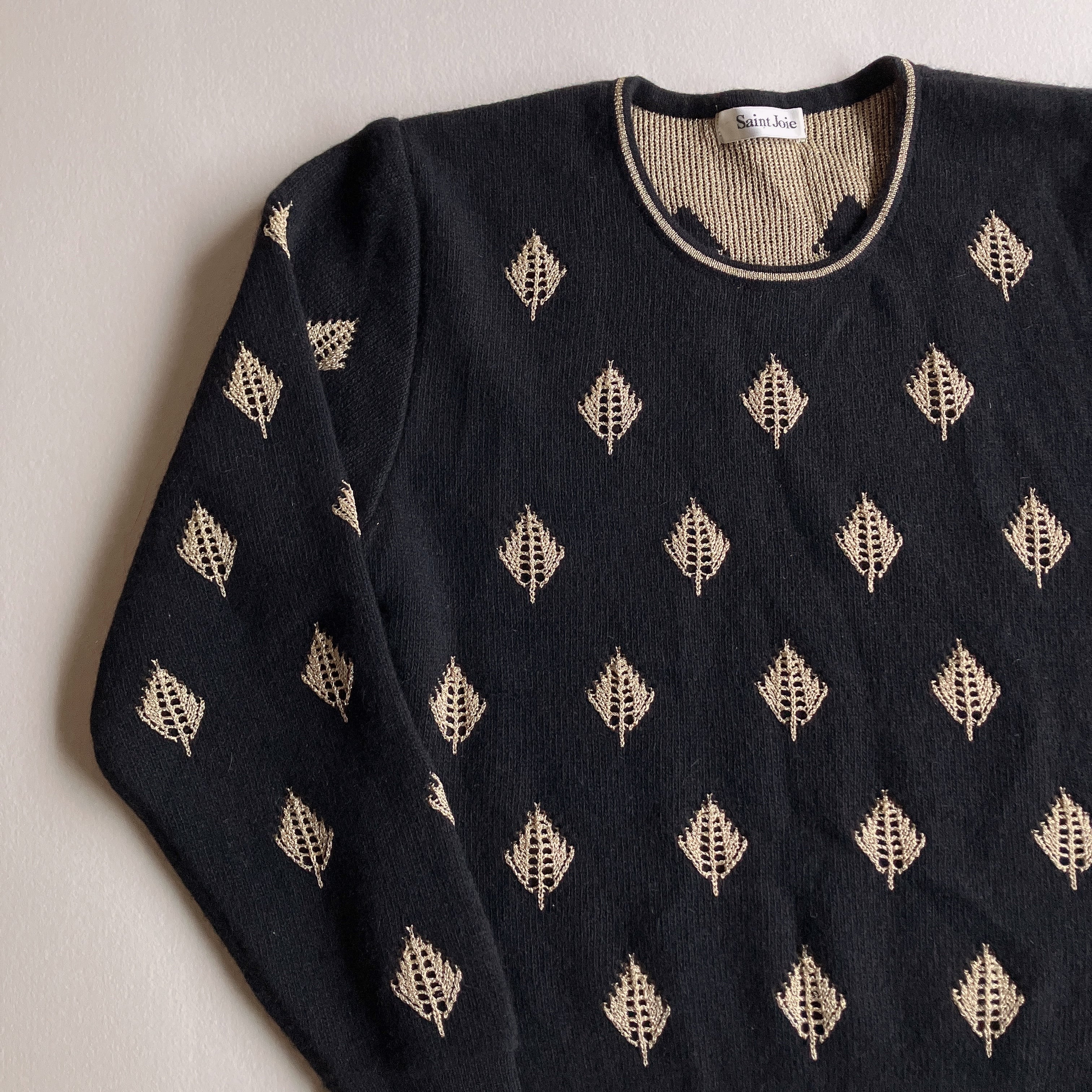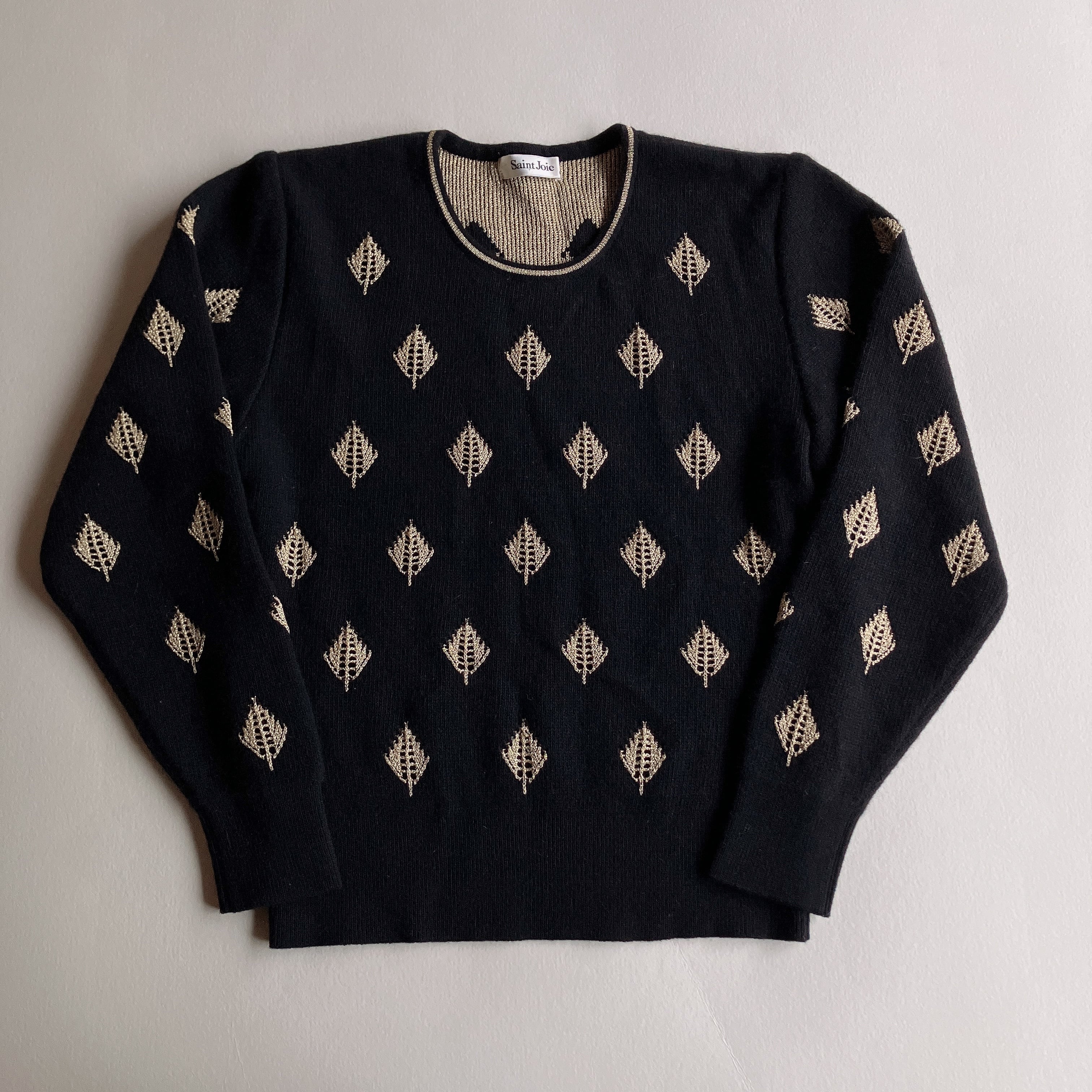 used レトロ 葉っぱモチーフ ニットトップス古着 ヴィンテージvintage