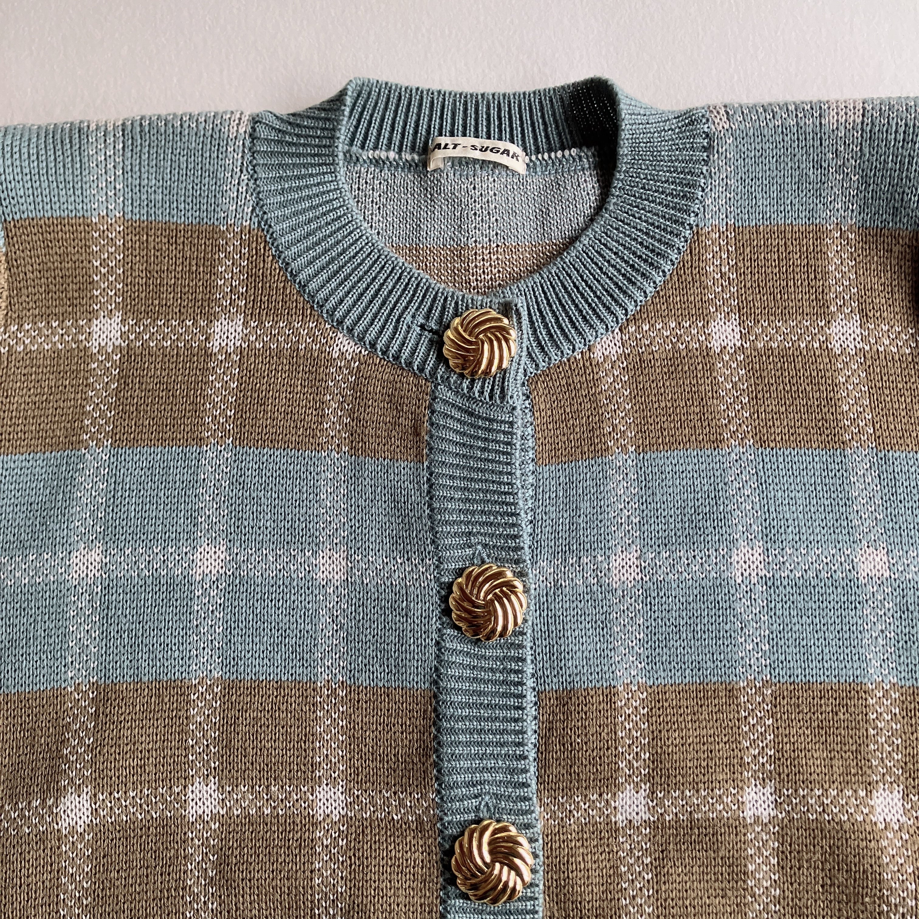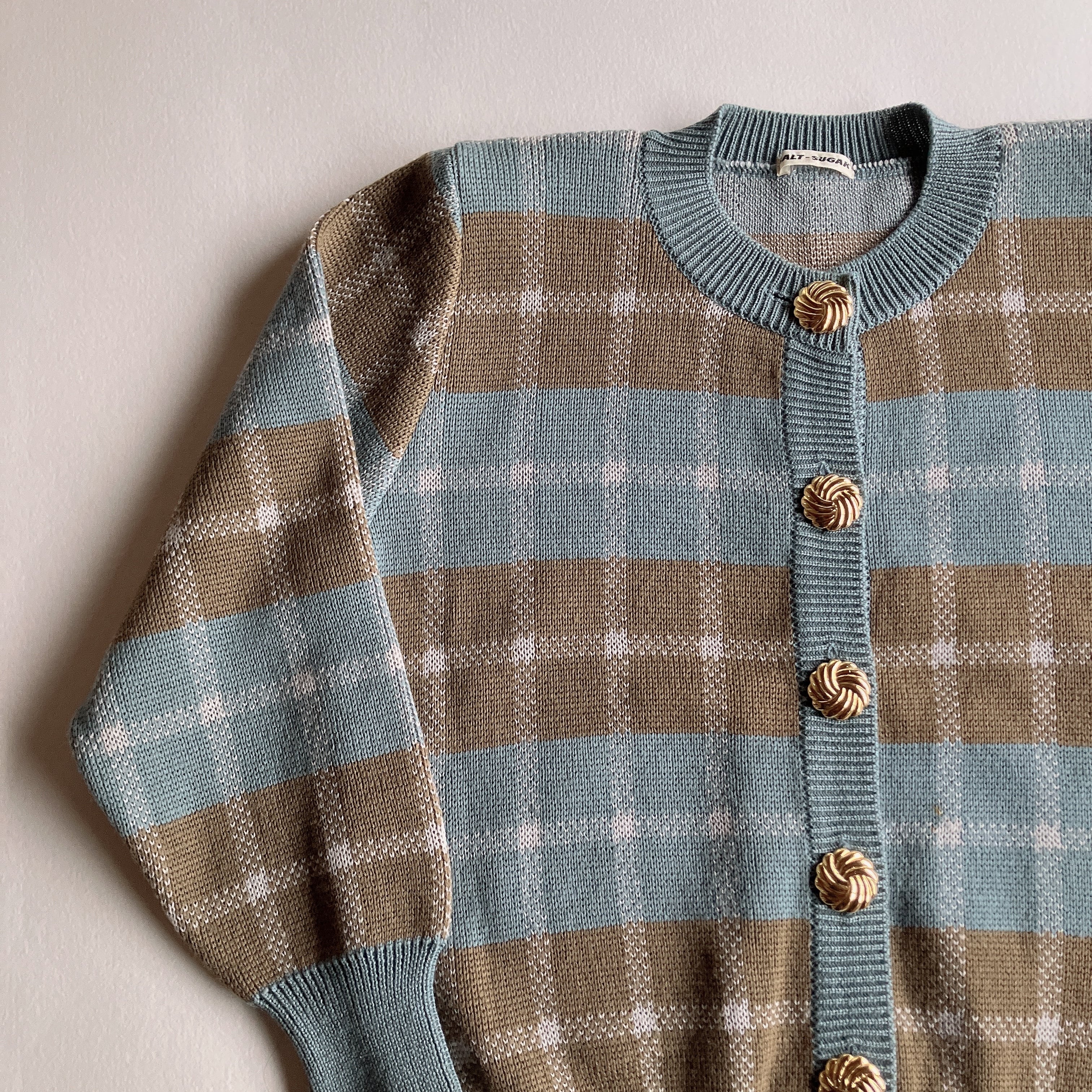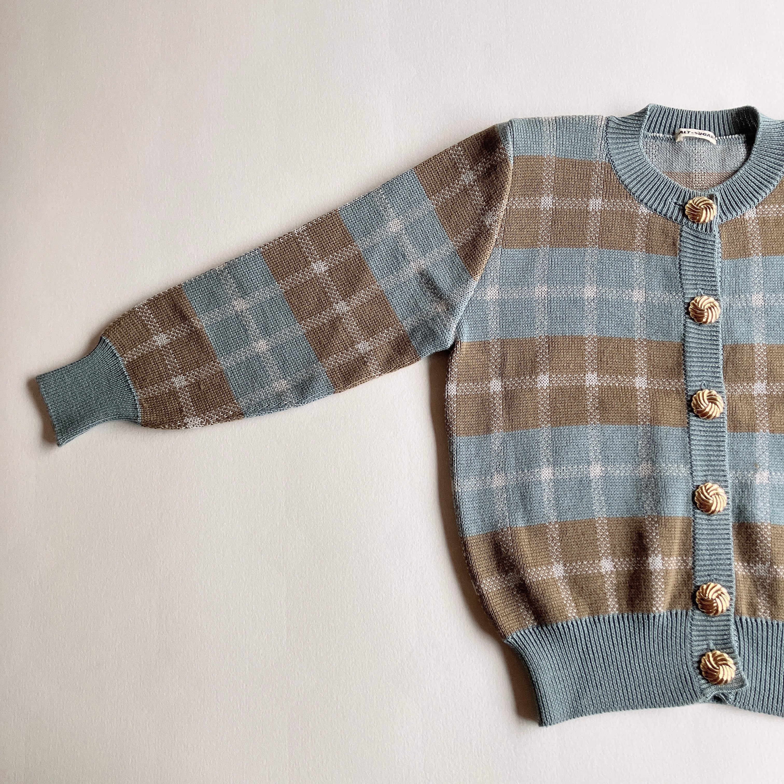 used レトロ チェック ニットカーディガン古着 ヴィンテージ vintage
