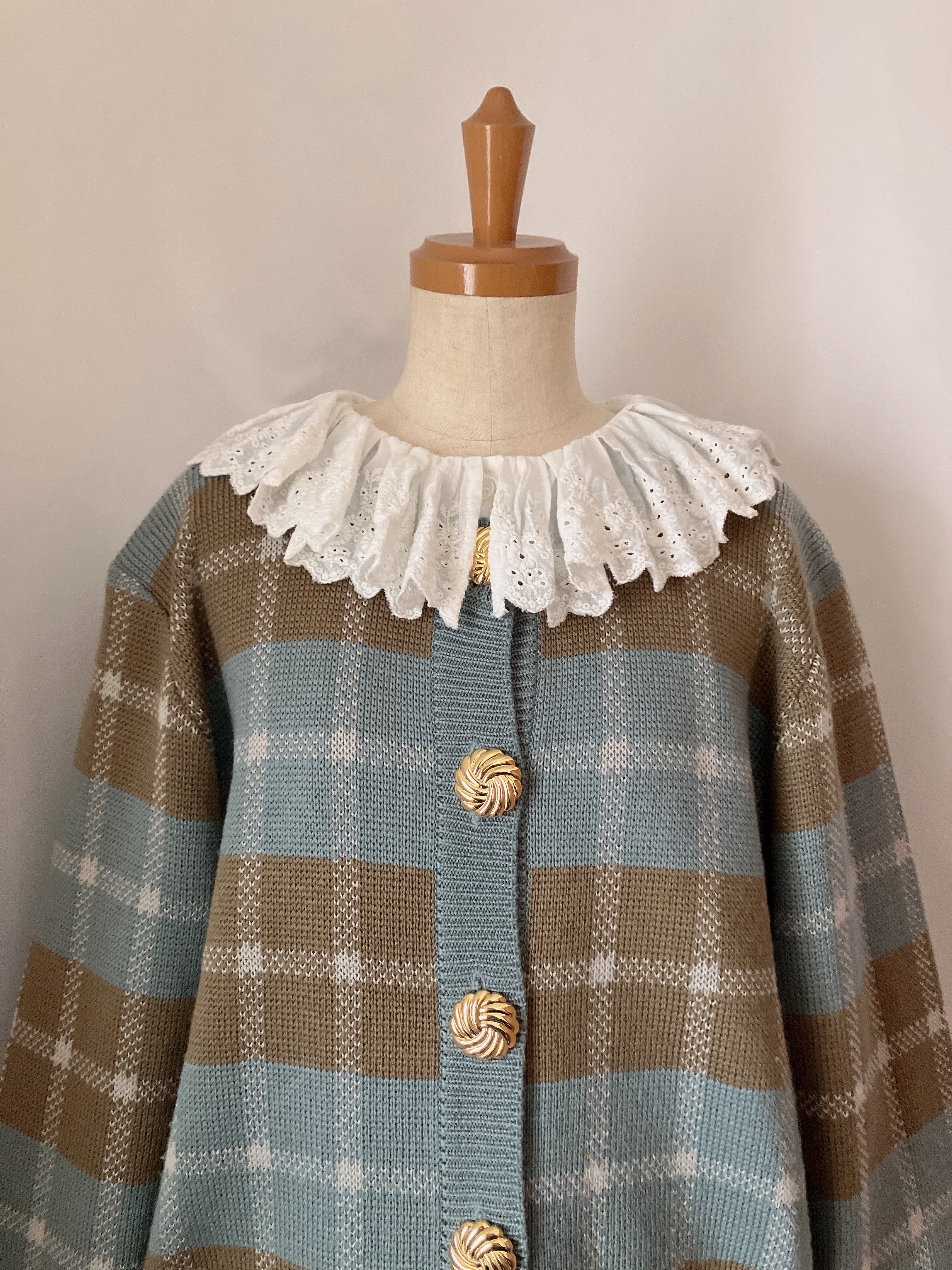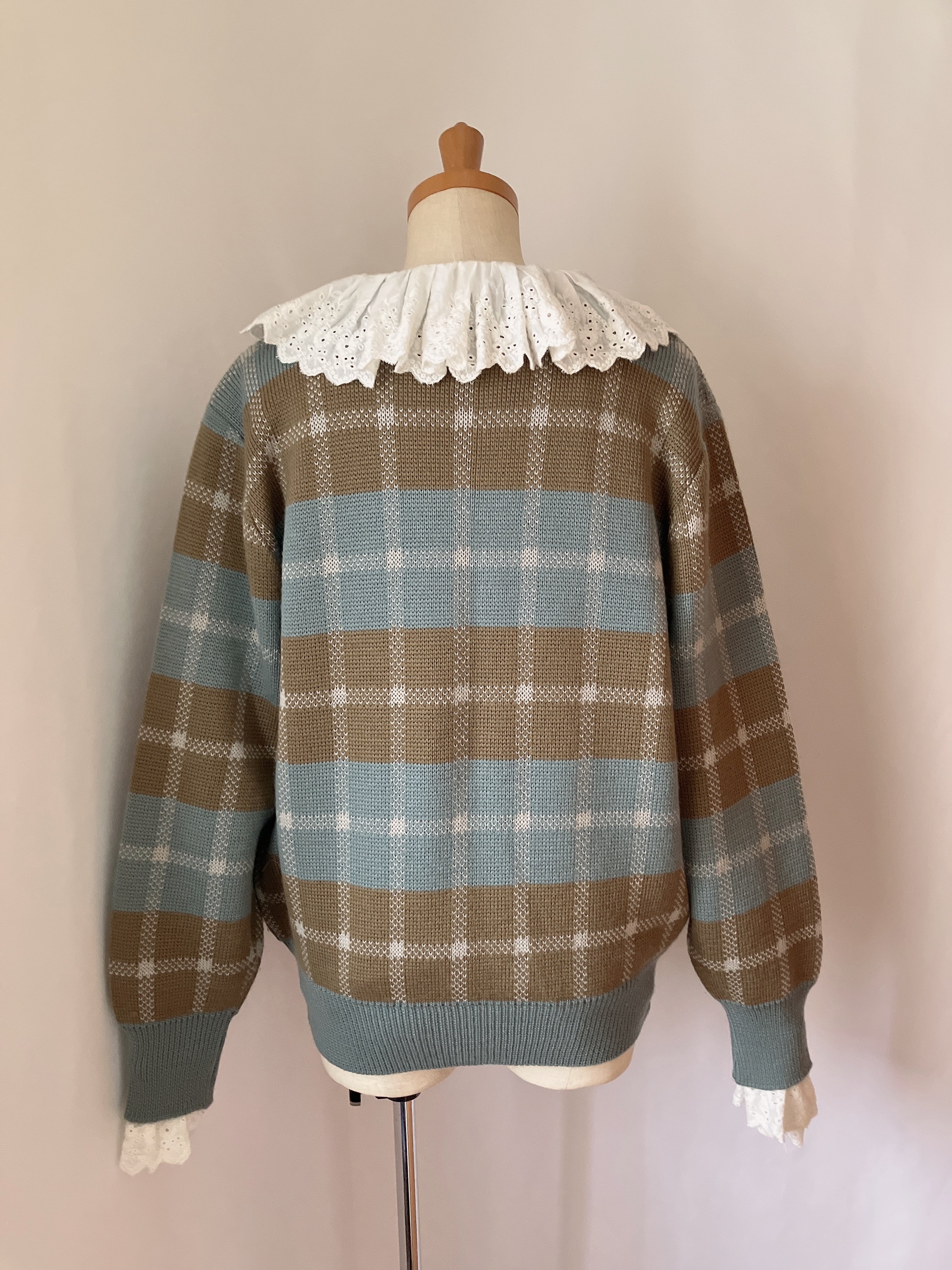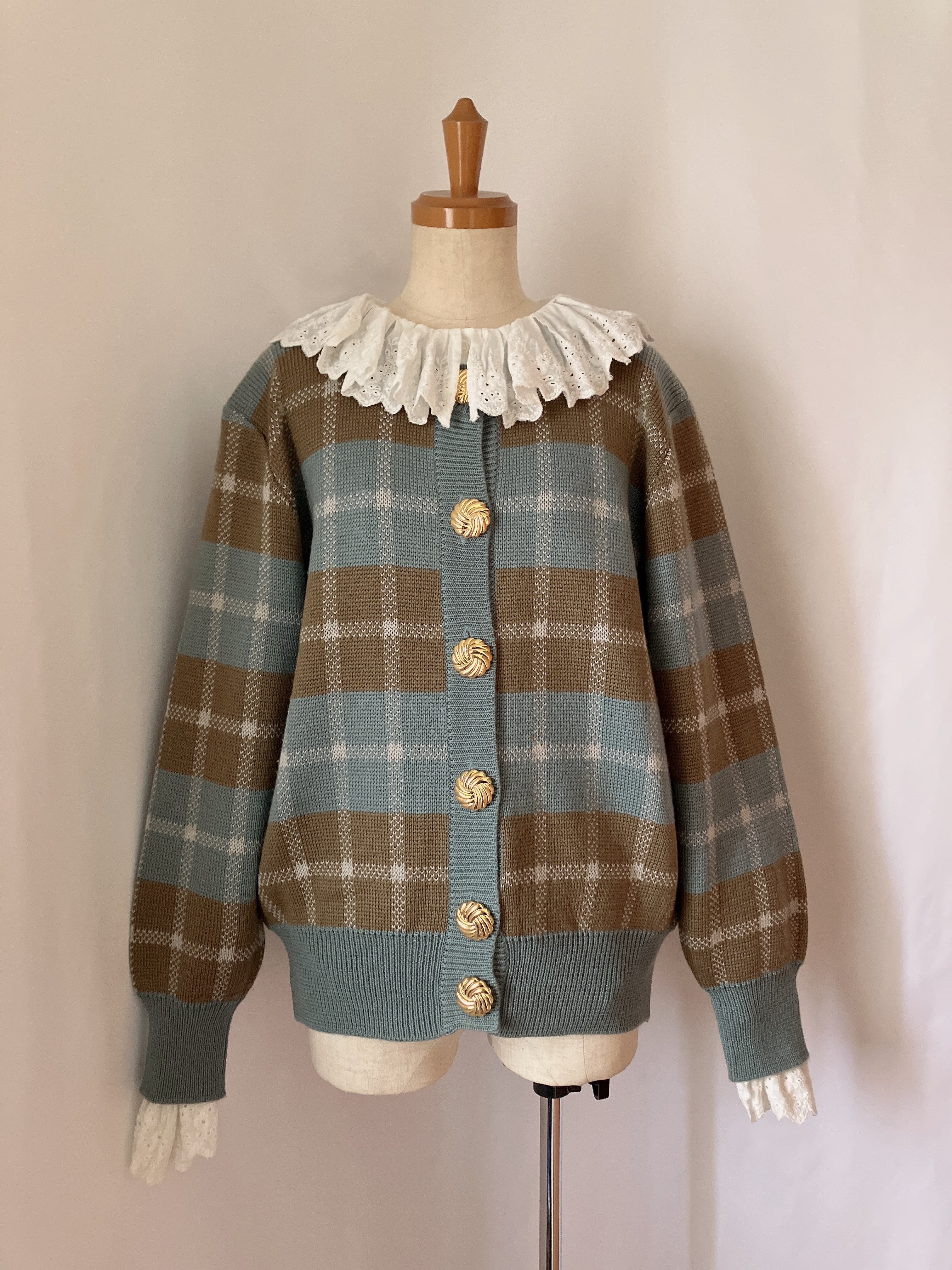 used レトロ チェック ニットカーディガン古着 ヴィンテージ vintage