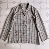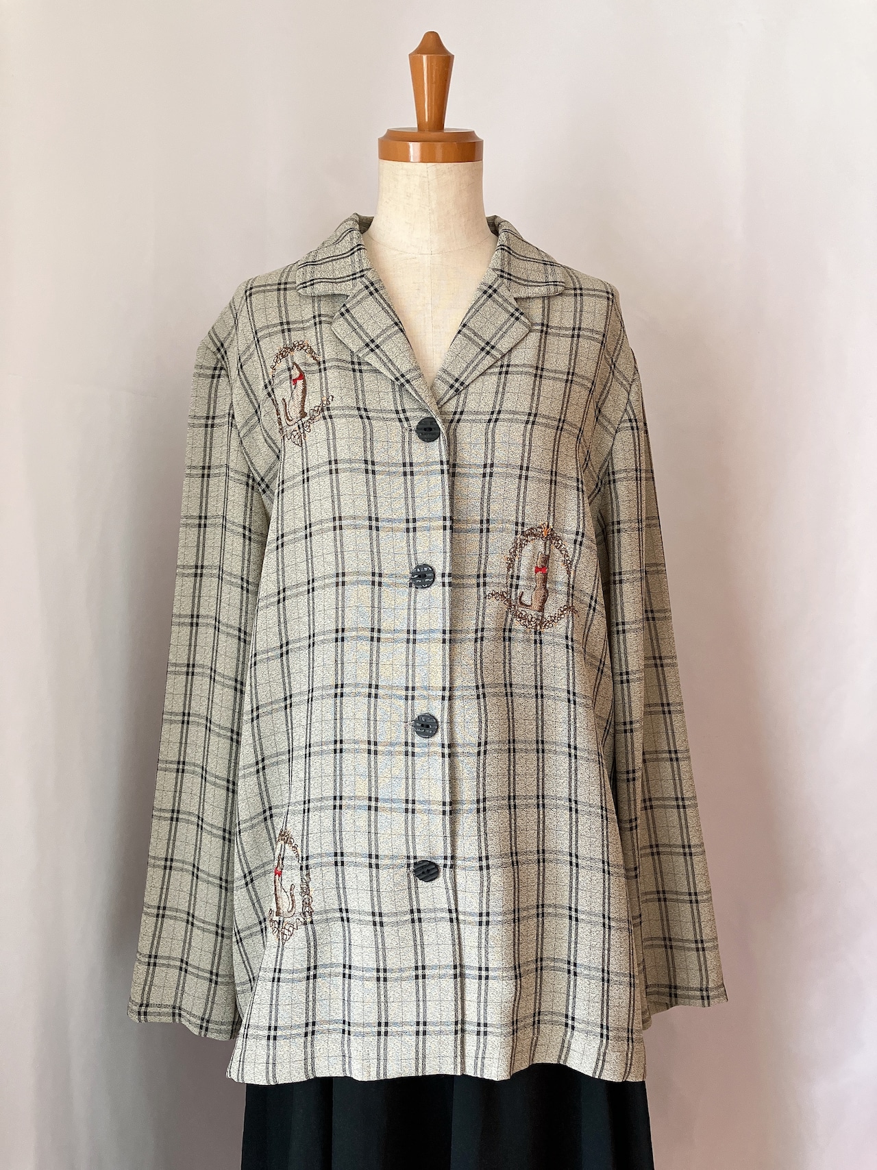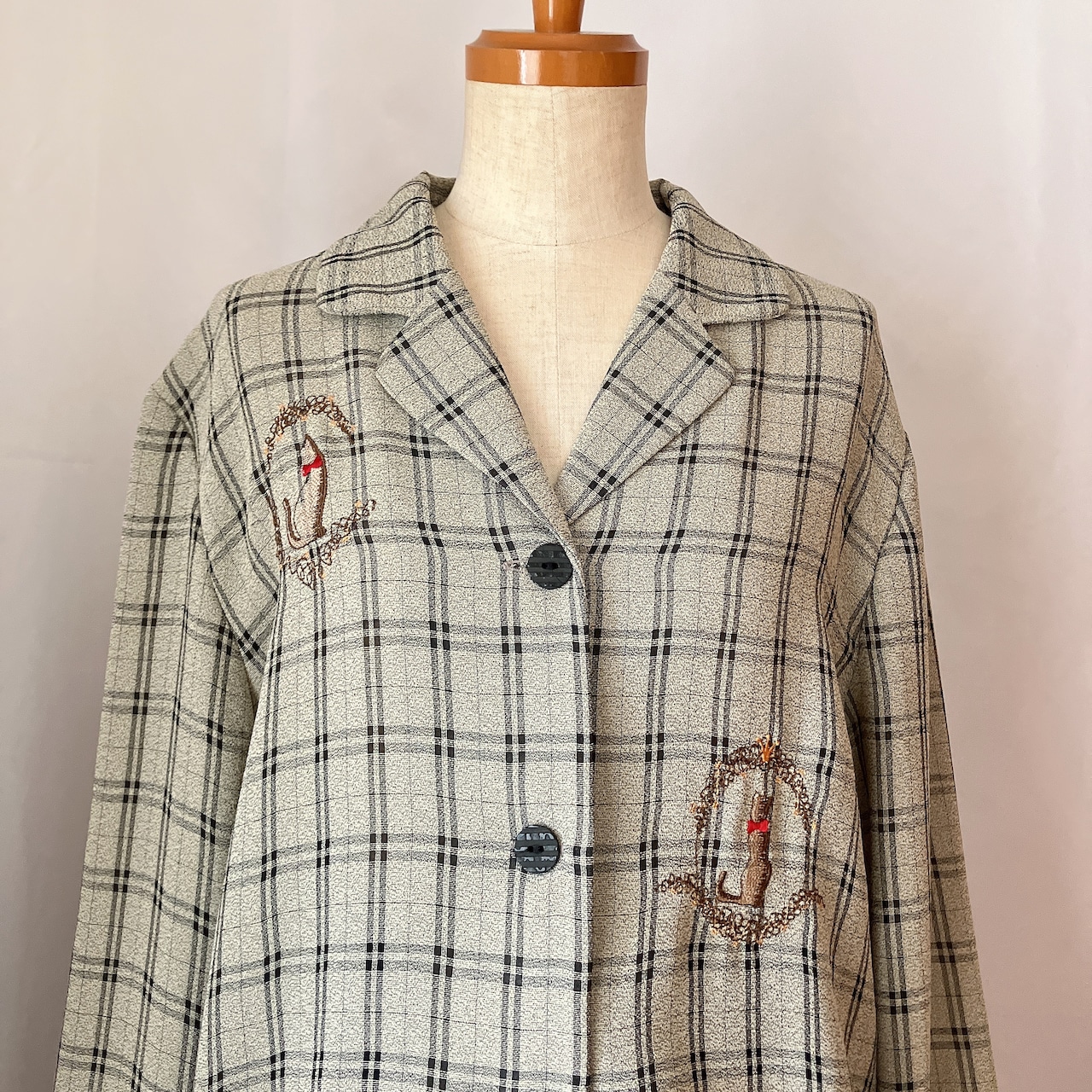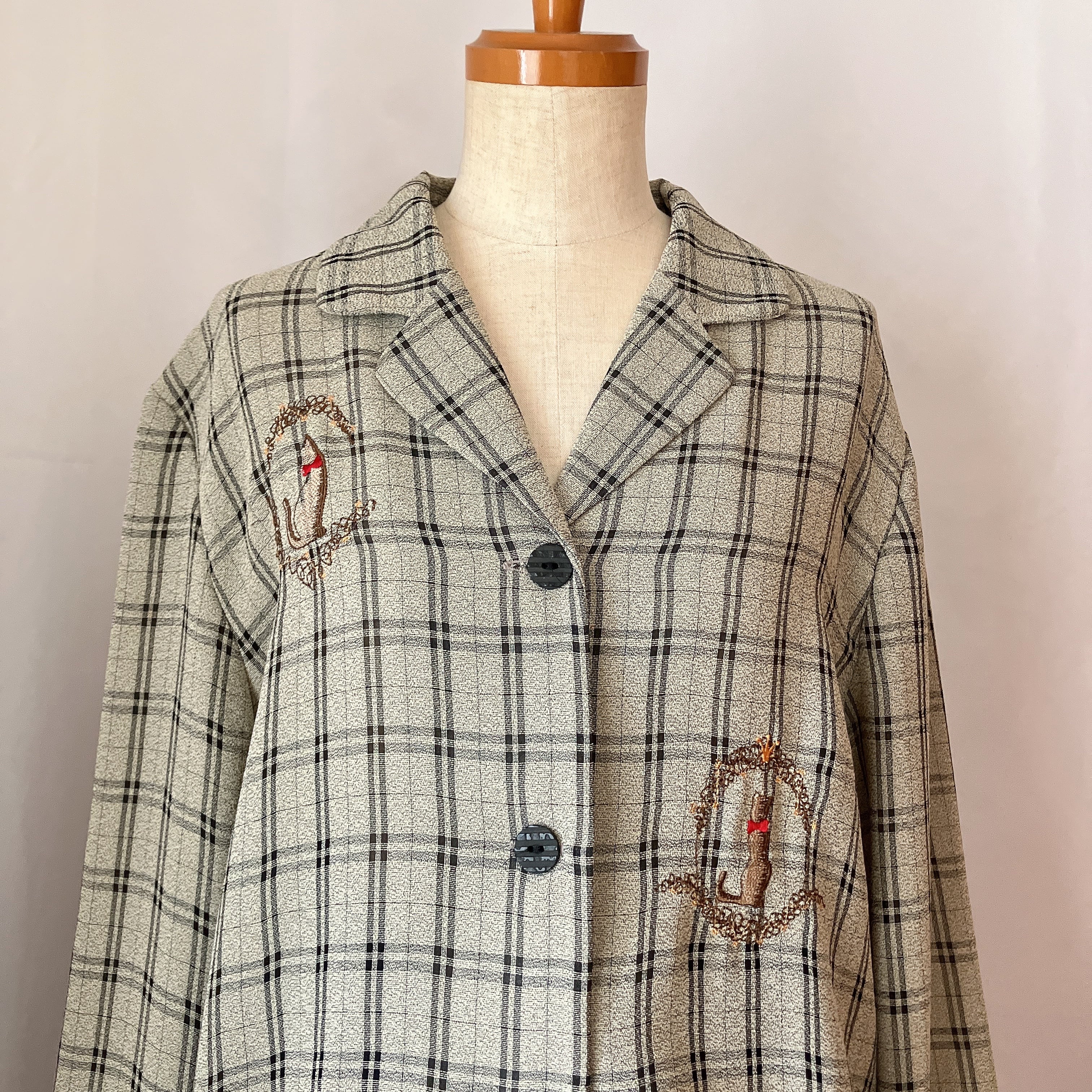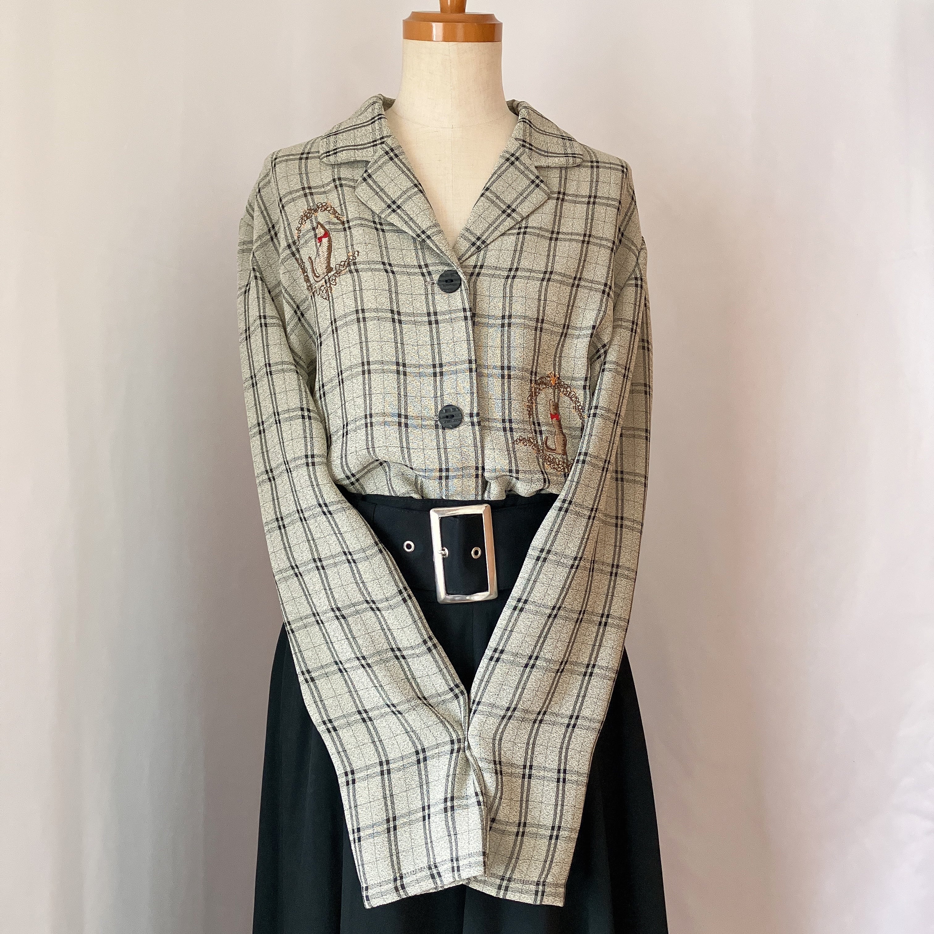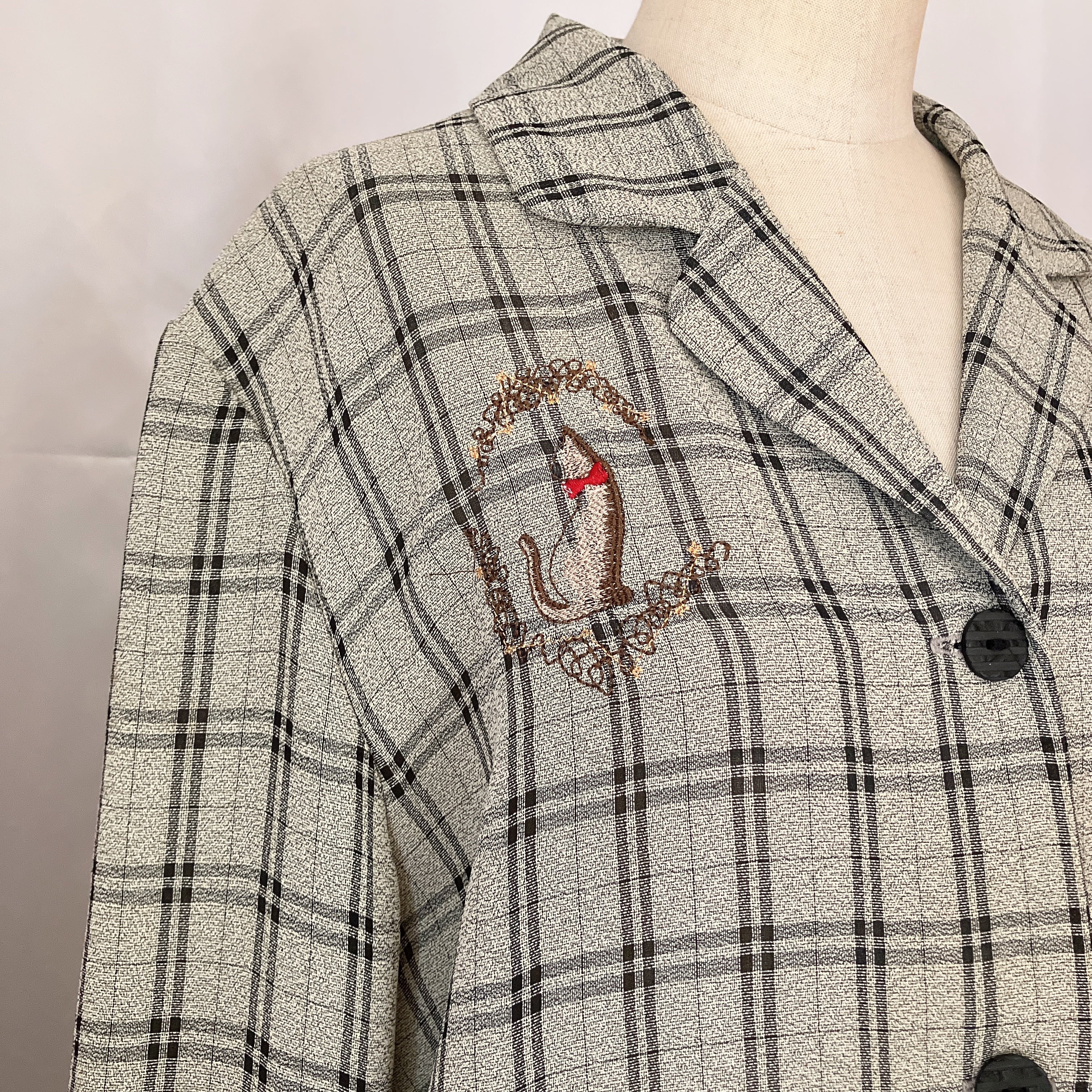 used レトロ 猫刺繍 チェック ブラウス 古着 ヴィンテージ vintage
