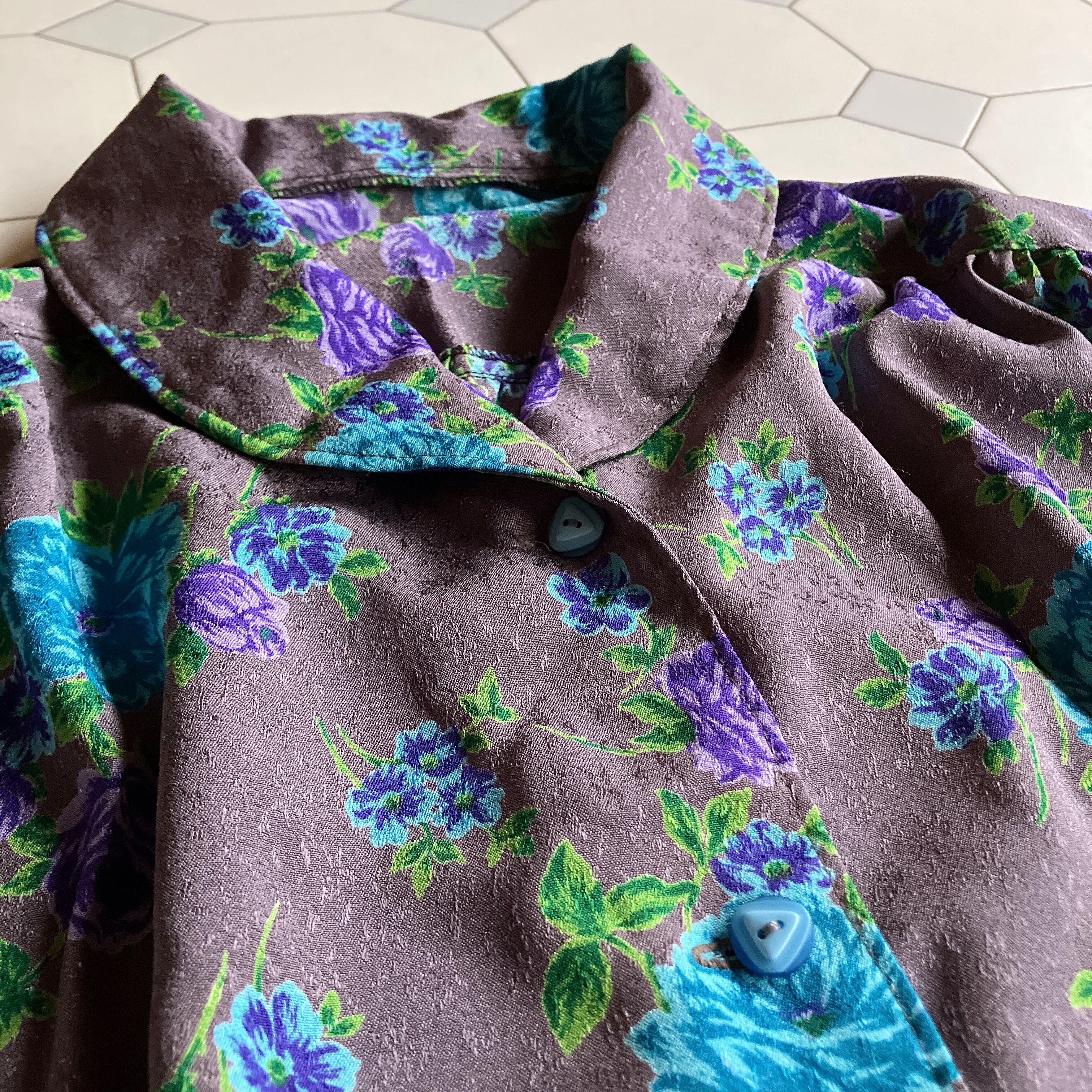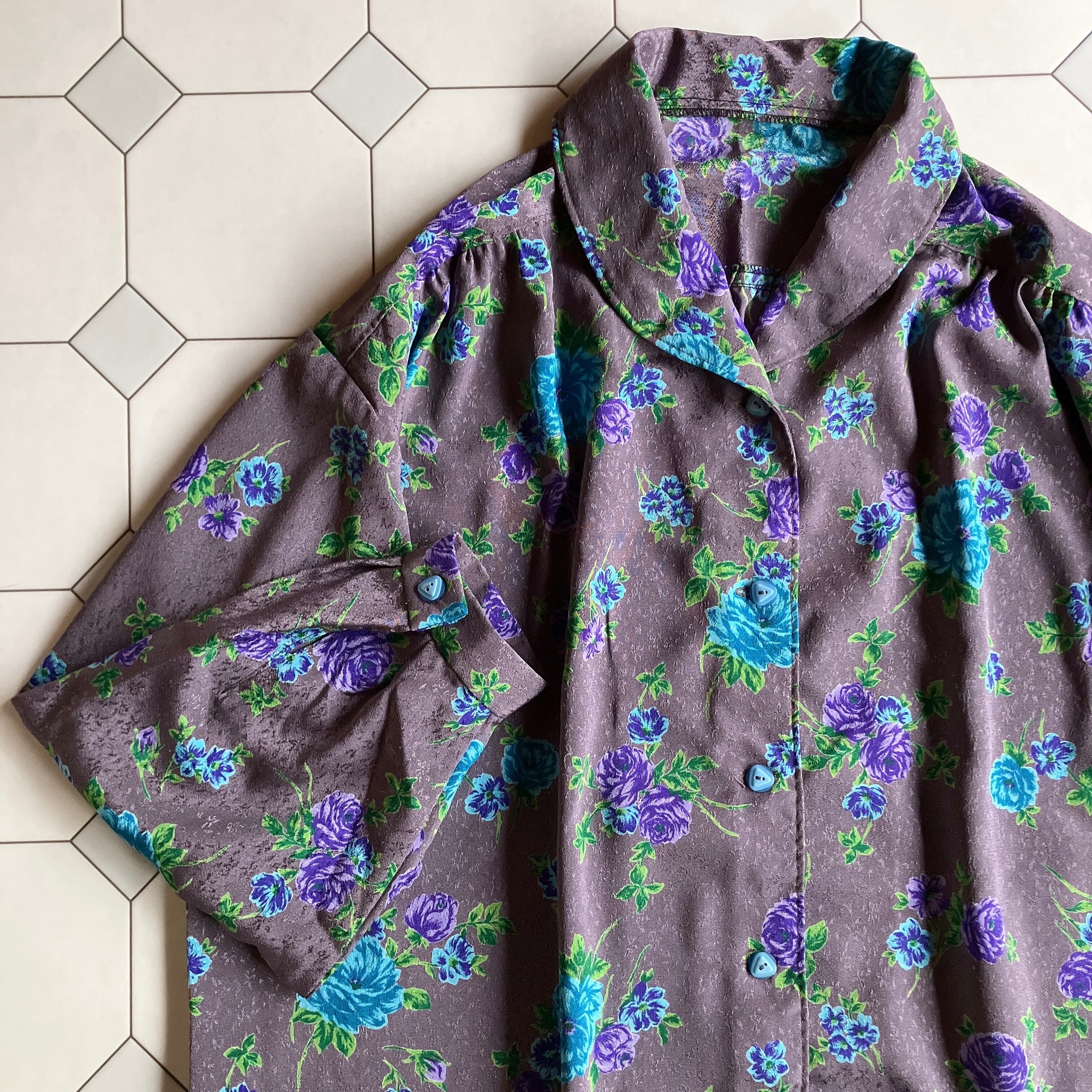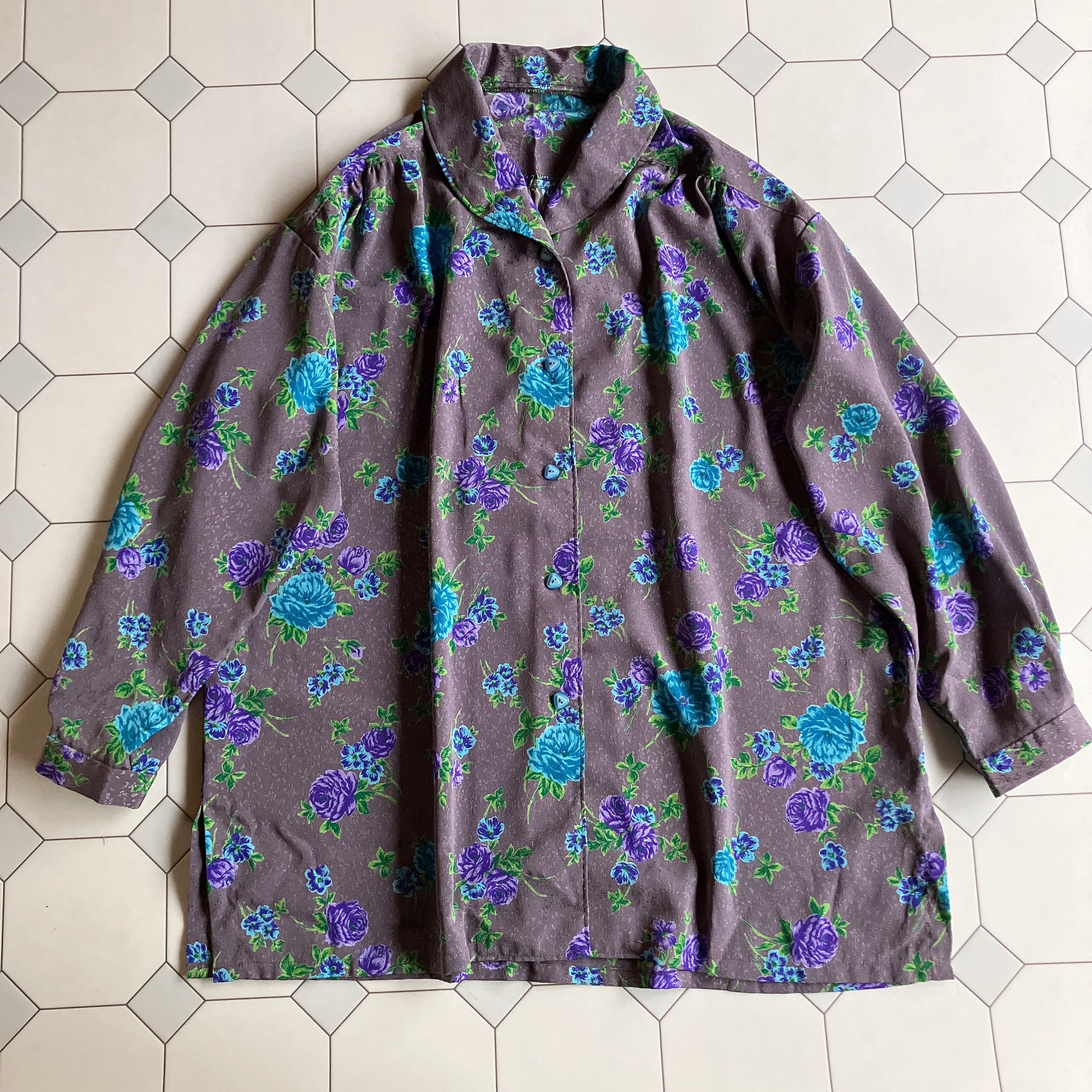 used レトロ グレー 花柄 ブラウス 古着 ヴィンテージ vintage