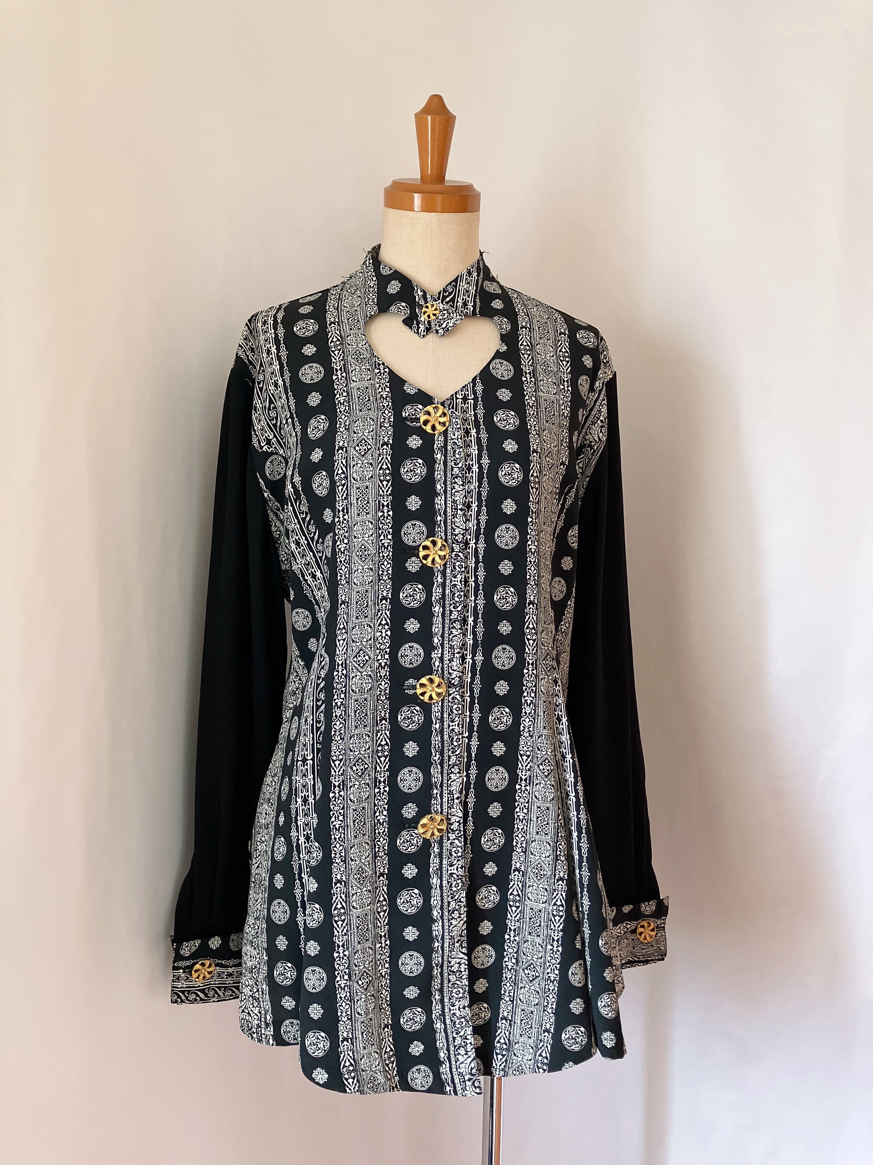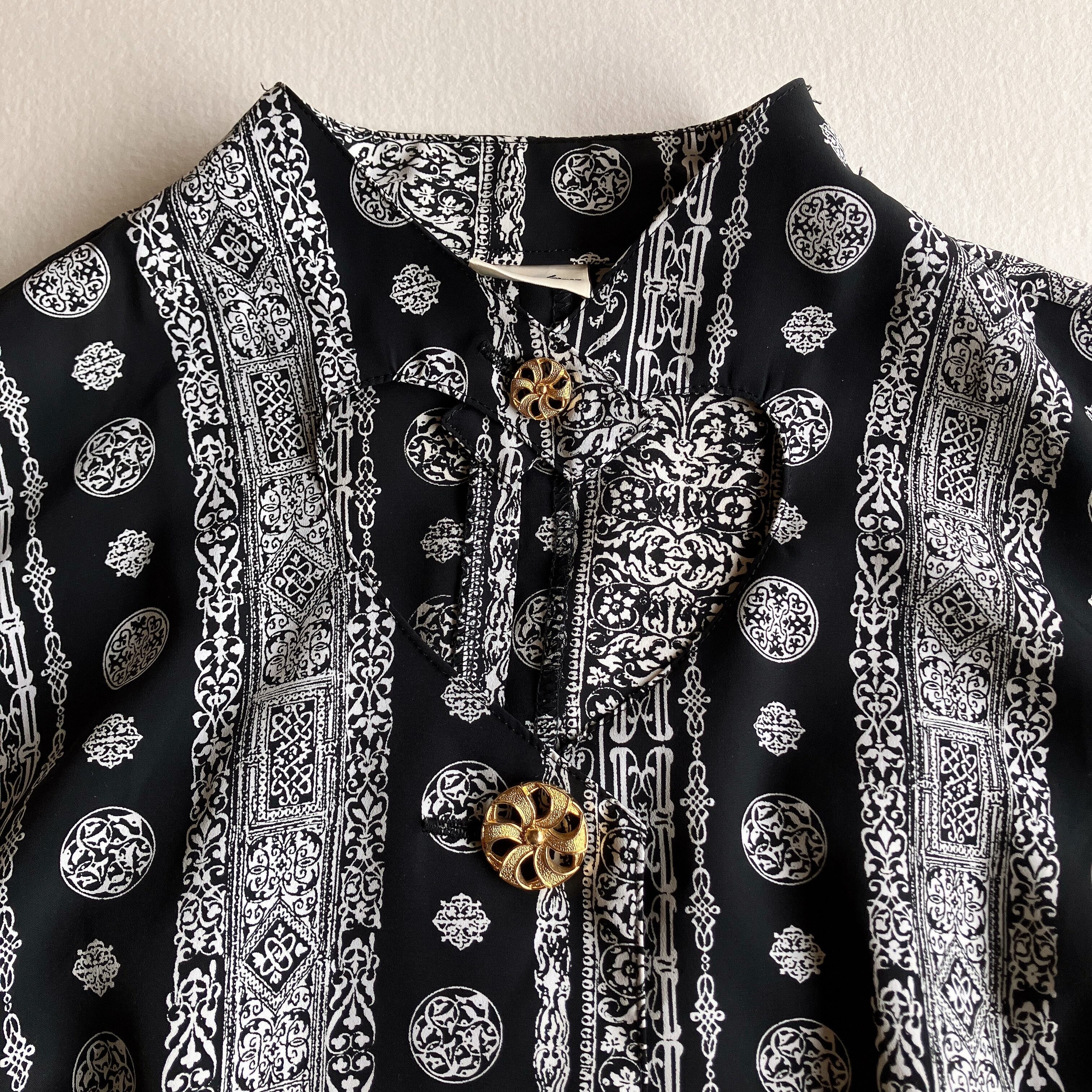 used レトロ 装飾柄 デザインブラウス 古着 ヴィンテージ vintage