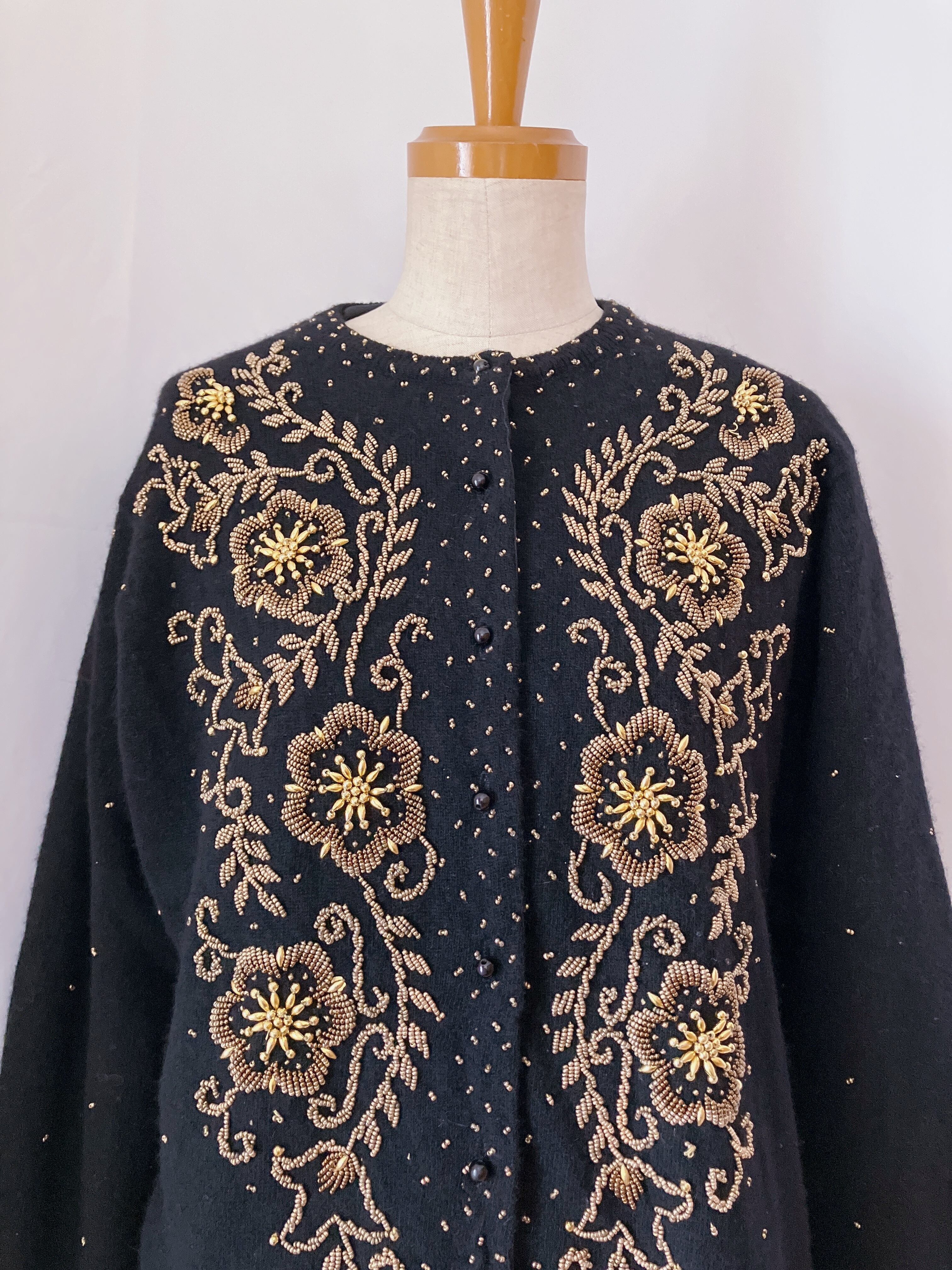 used レトロ ビーズ装飾 カーディガン 古着 ヴィンテージ vintage
