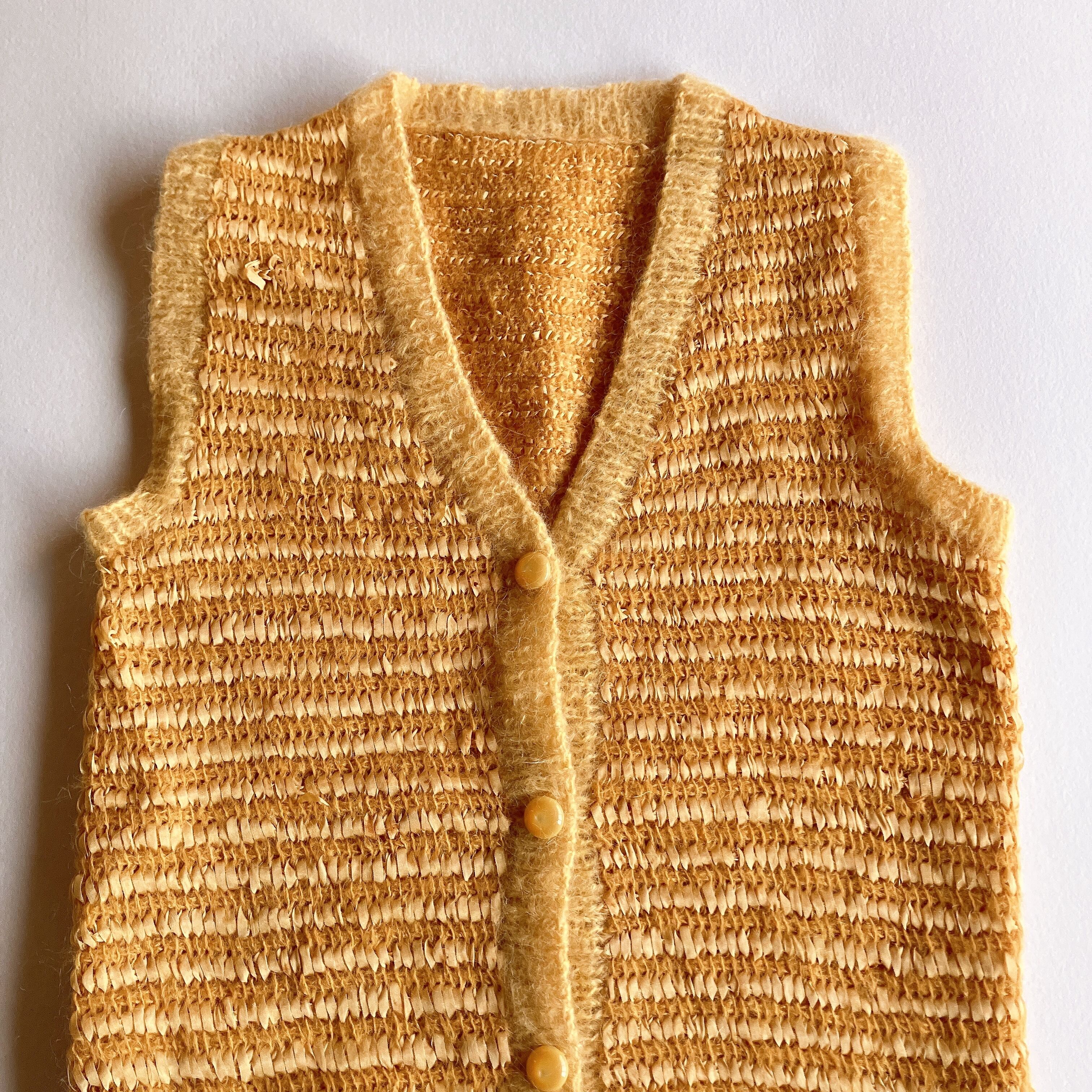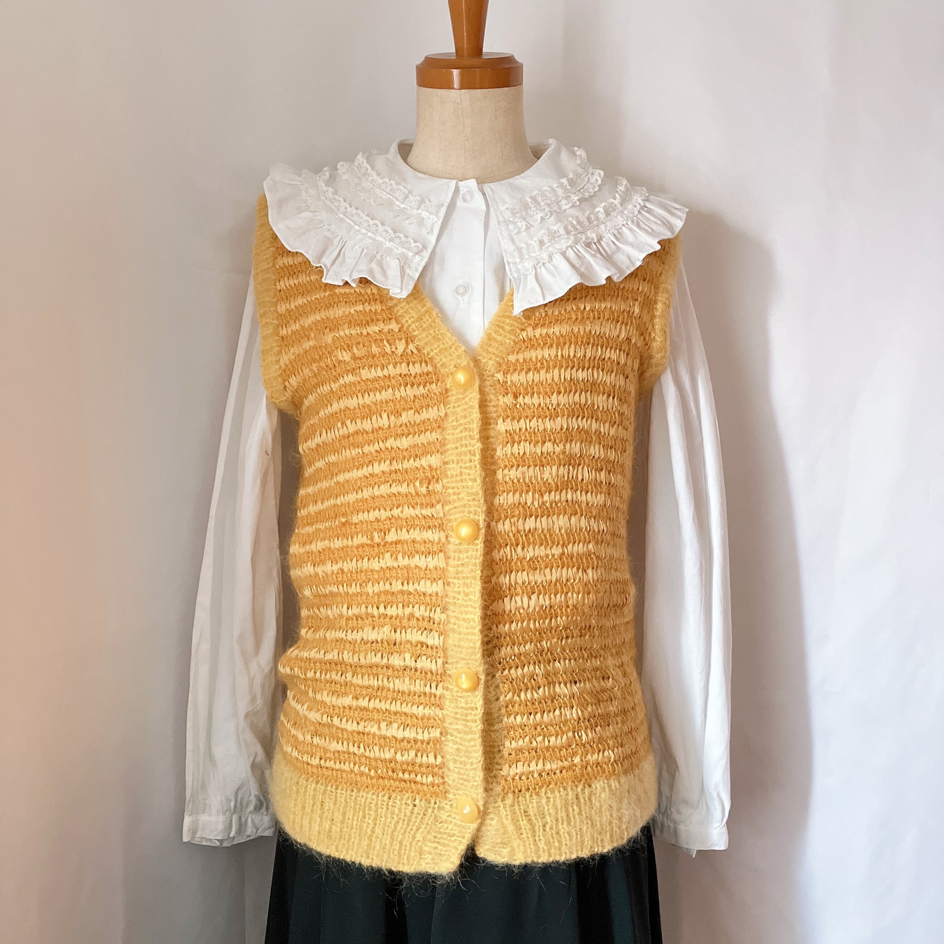 used レトロ 黄色 ハンドニットベスト 古着 ヴィンテージ vintage
