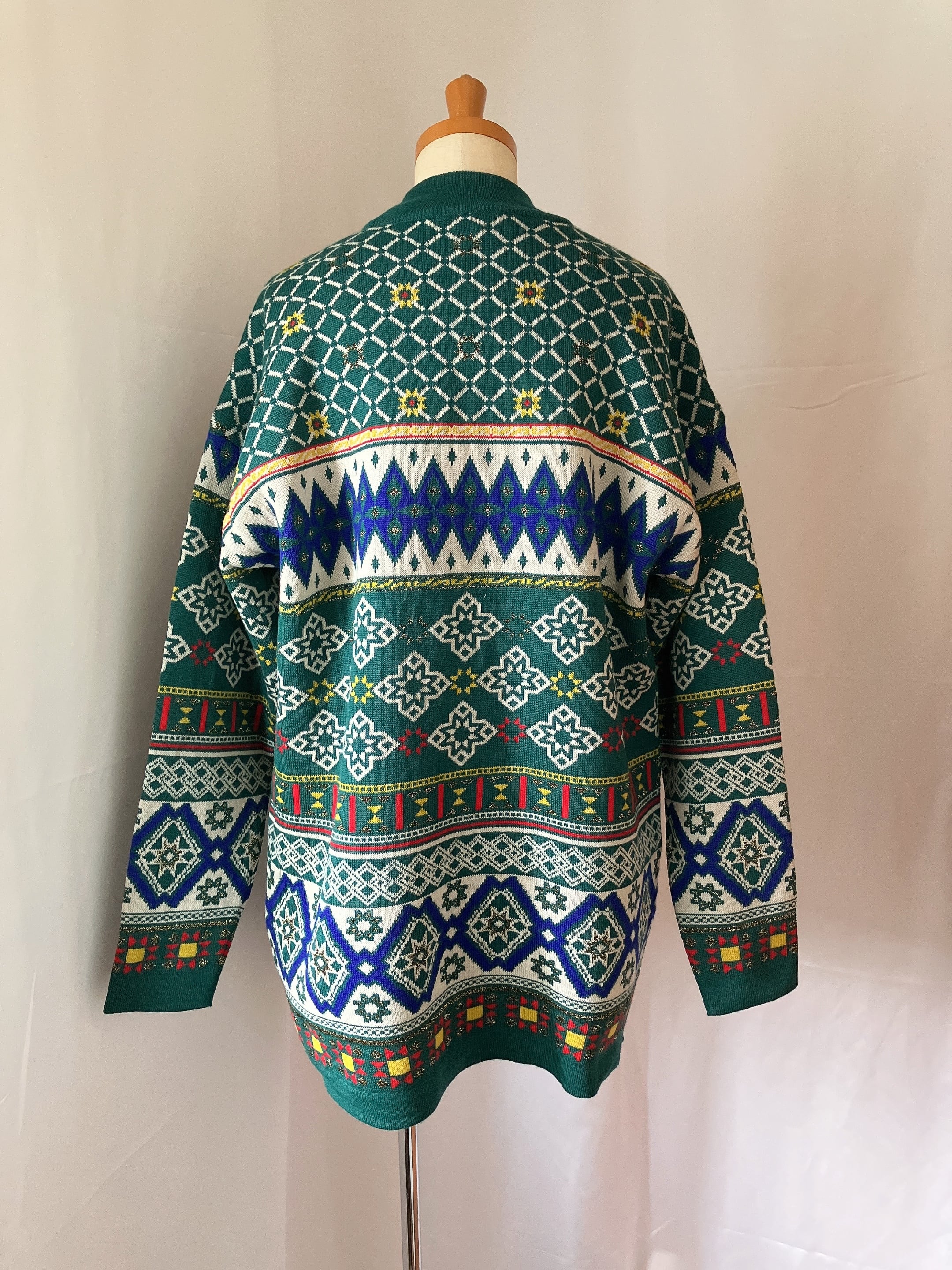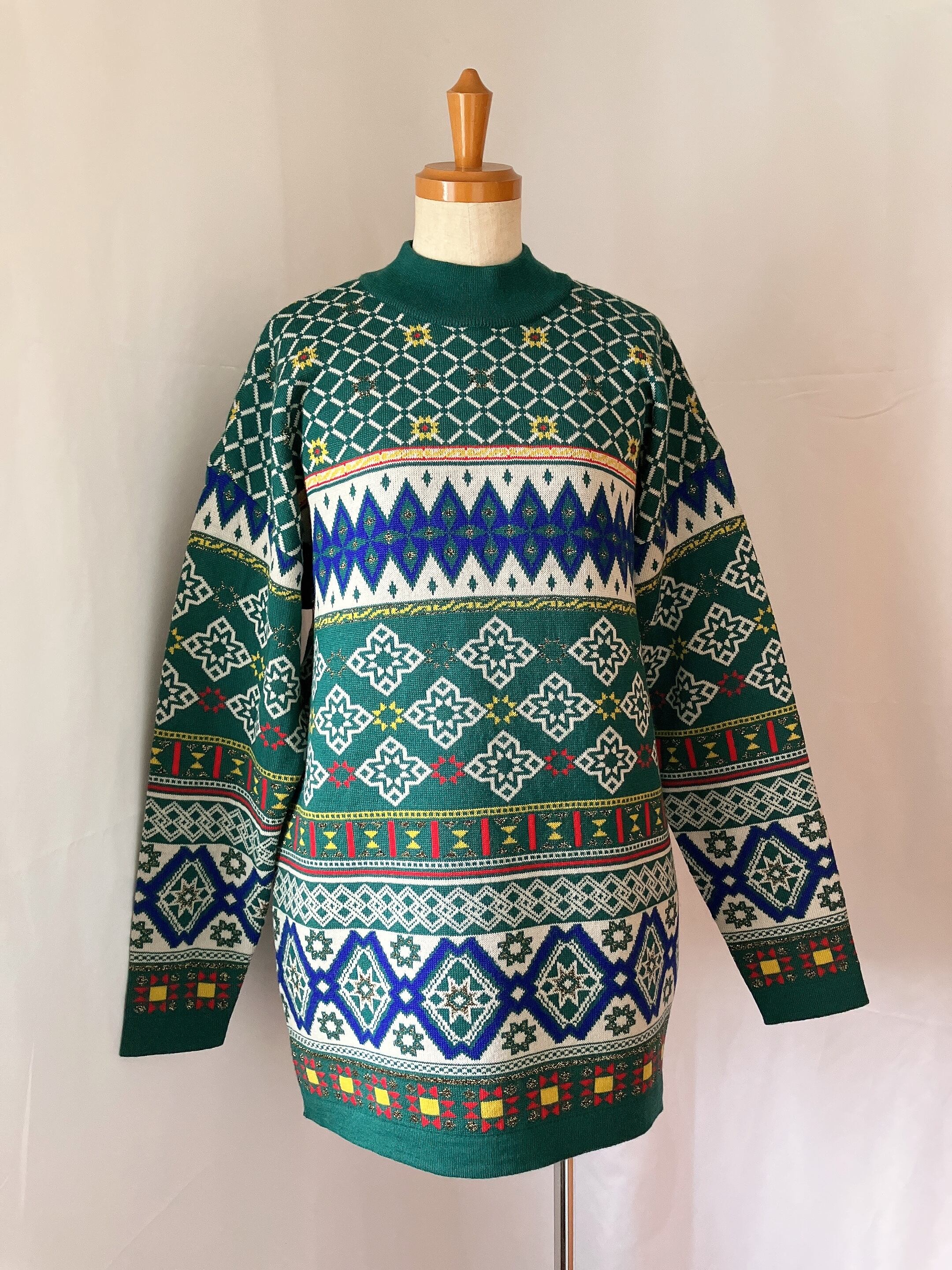 used レトロ 緑 総柄ニットセーター 古着 ヴィンテージ vintage