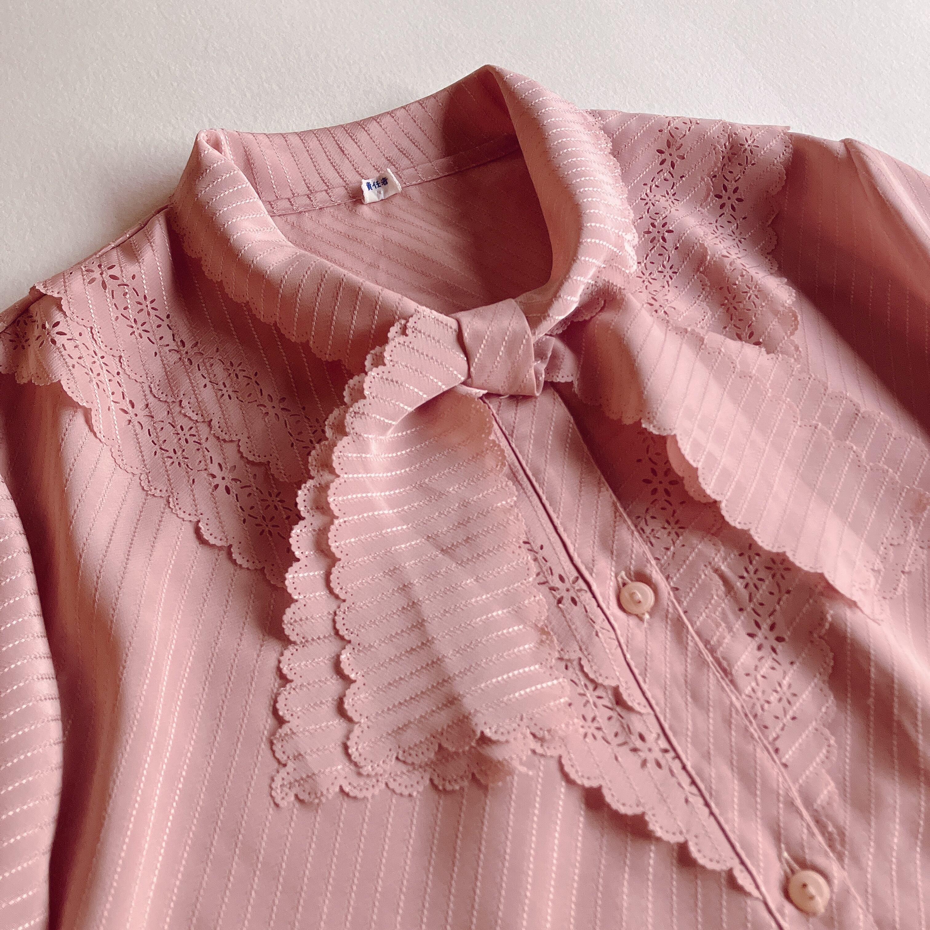used レトロ ピンク リボン ブラウス 古着 ヴィンテージ vintage