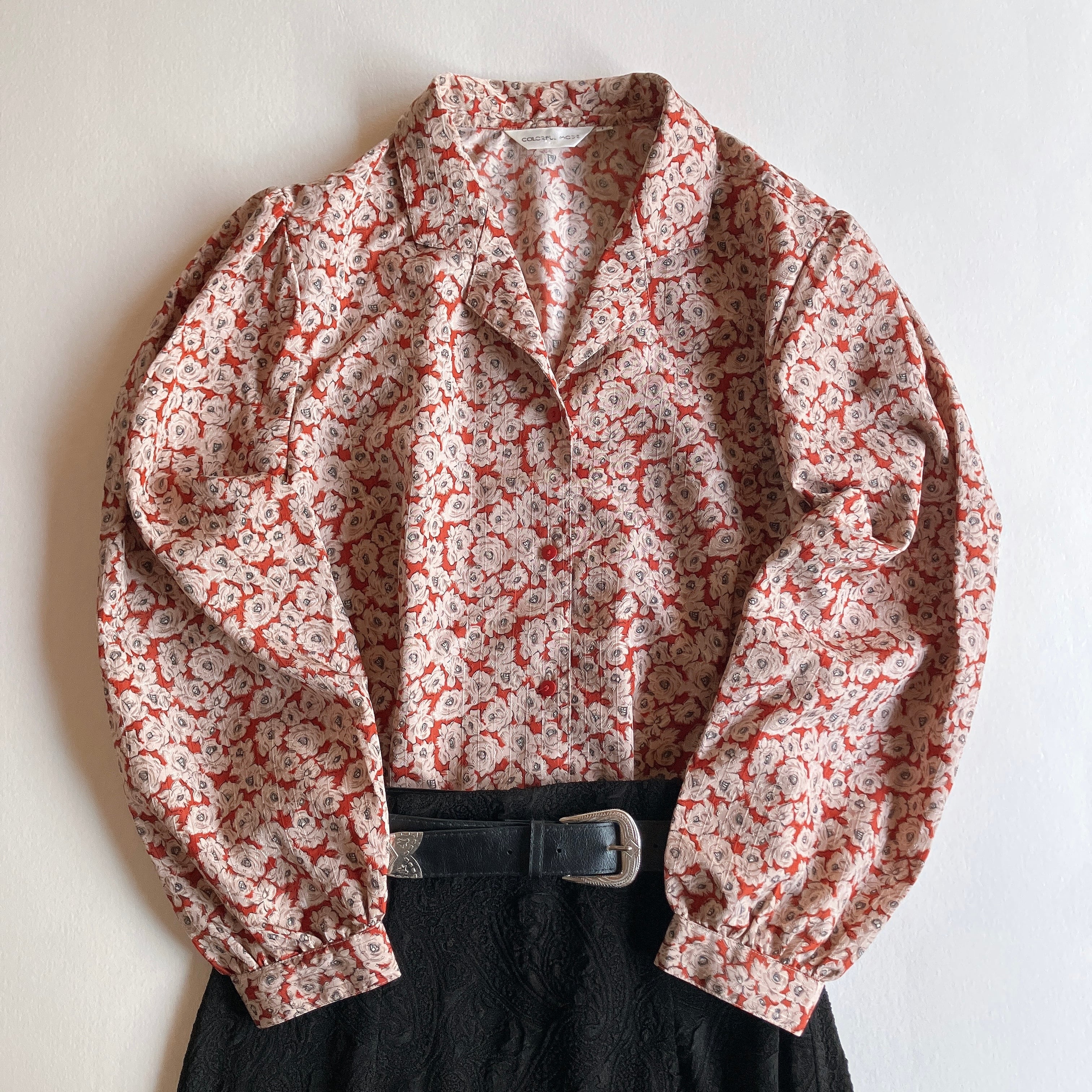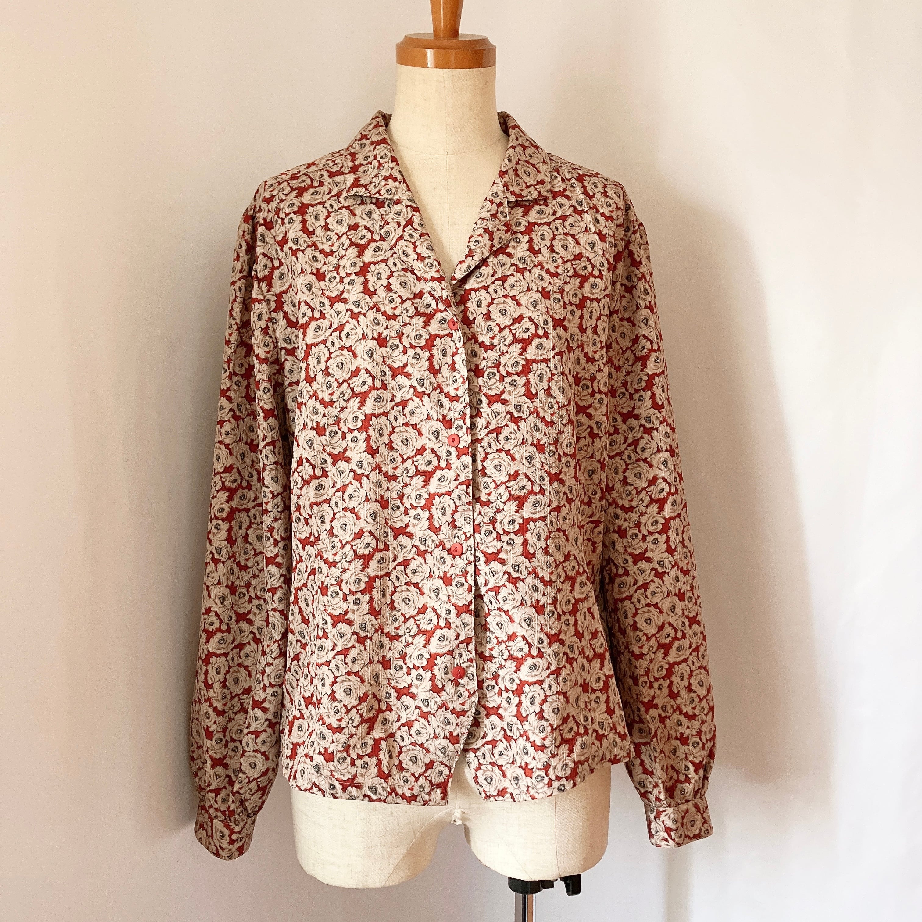used レトロ 赤地 花柄 ブラウス 古着 ヴィンテージ vintage