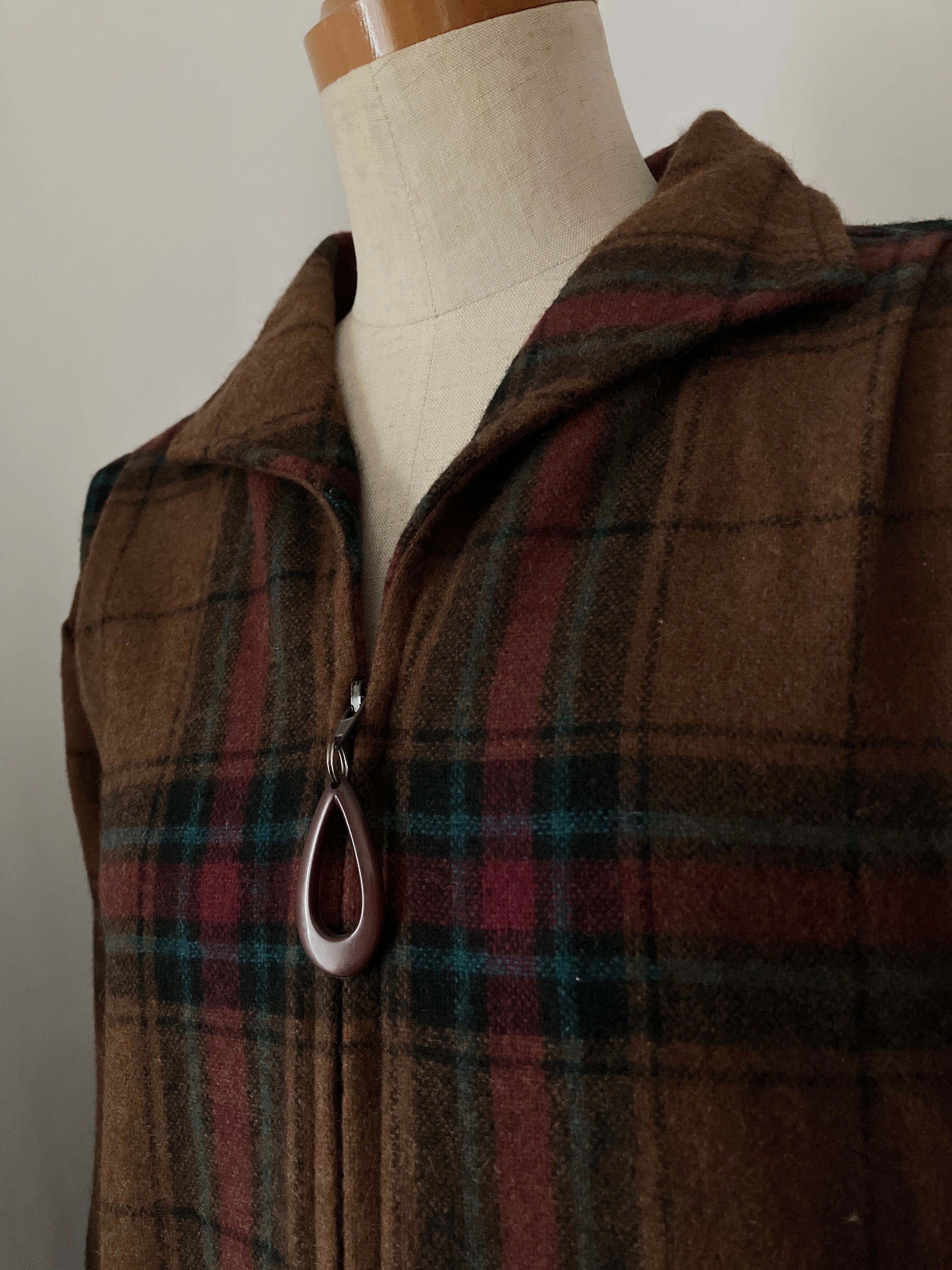 used レトロ チェック柄 ジップワンピース 古着 ヴィンテージvintage
