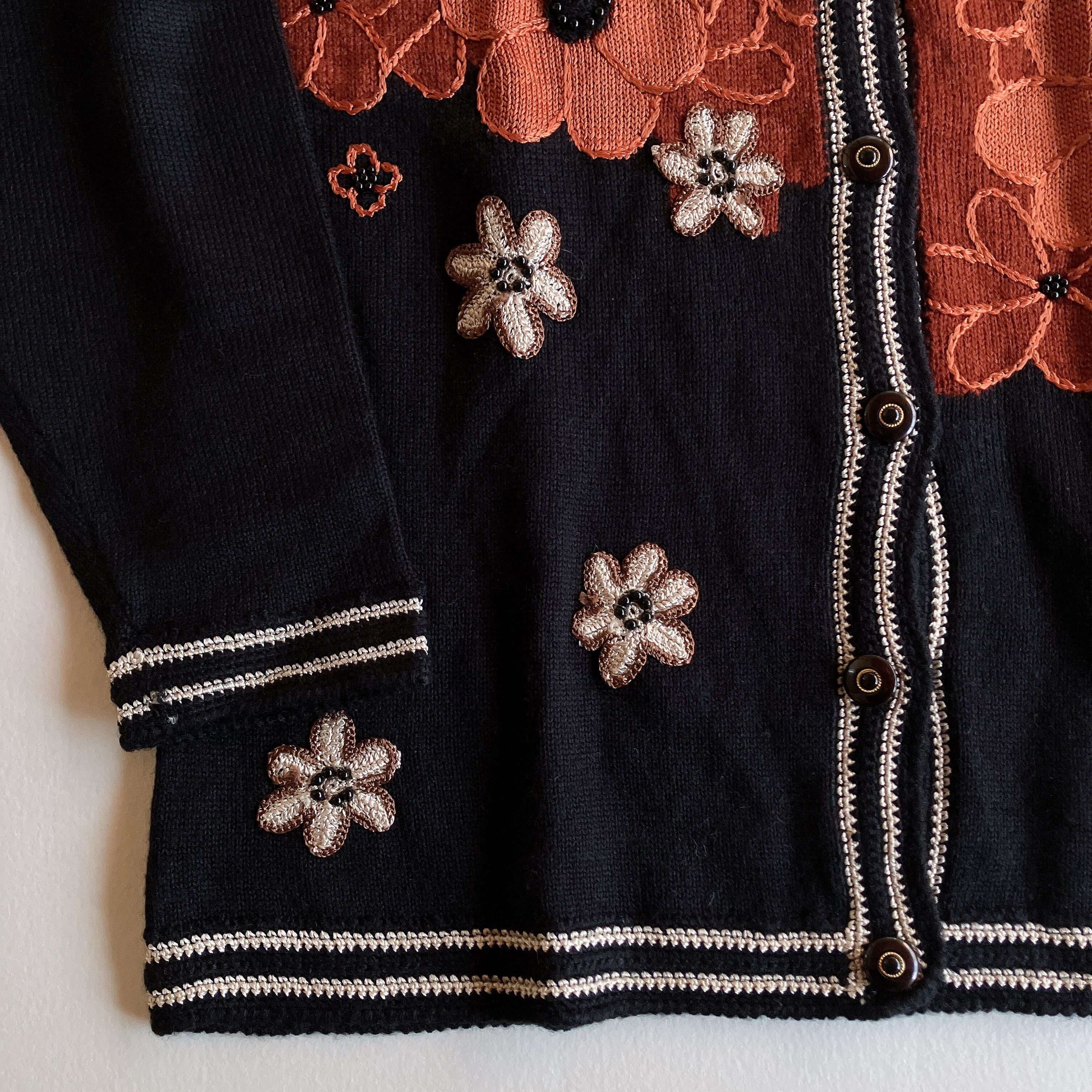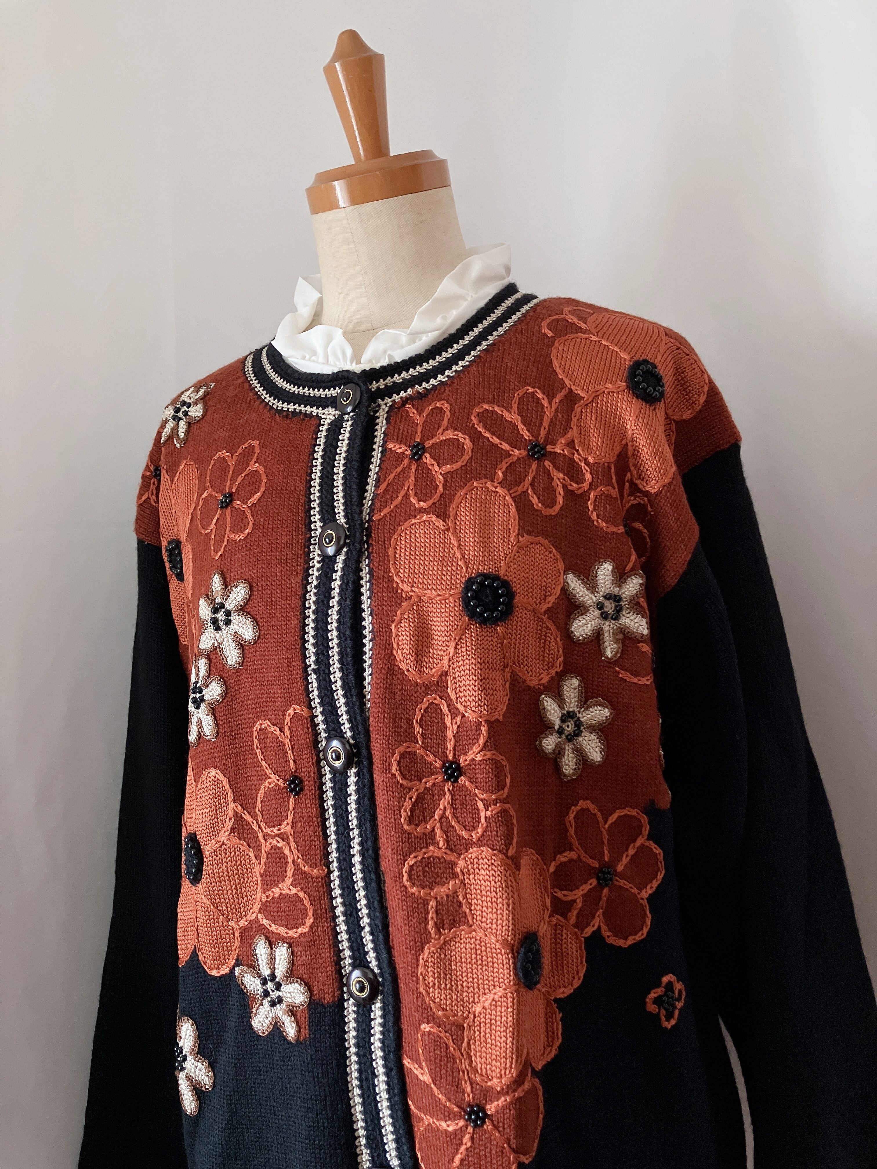 used レトロ 花 刺繍 ニットカーディガン古着 ヴィンテージ vintage