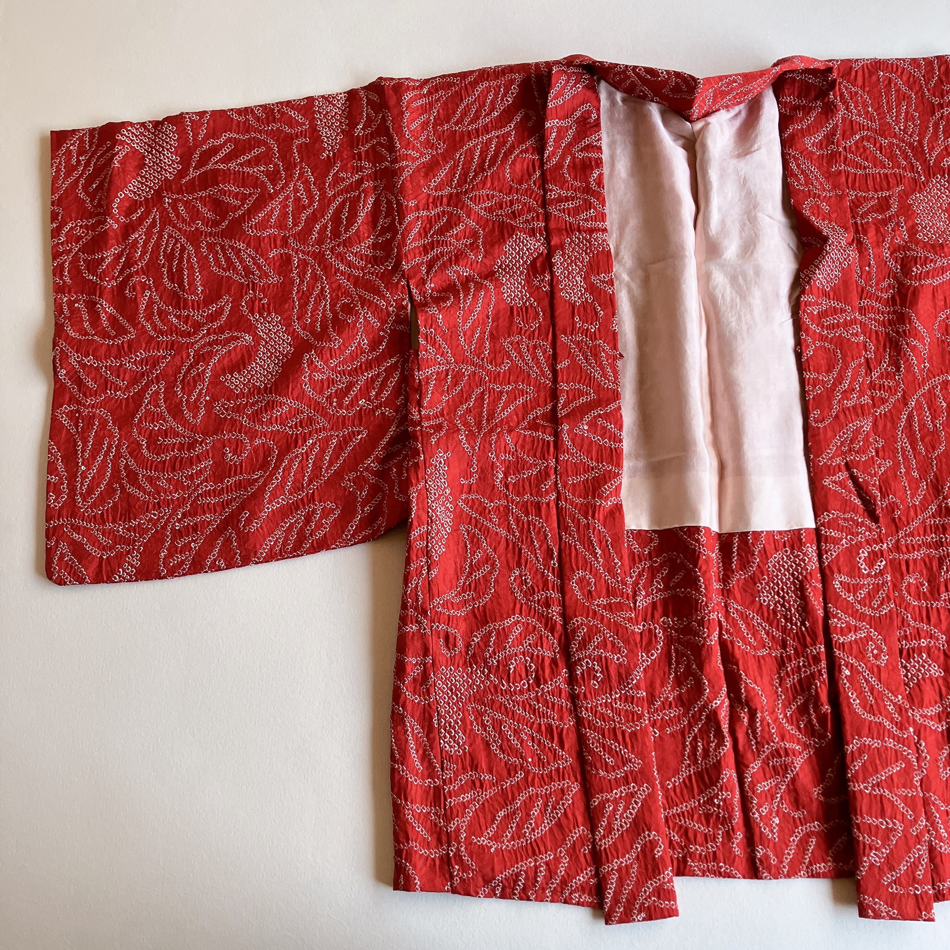 used レトロ 赤 着物 羽織 絞り 古着 ヴィンテージ vintage