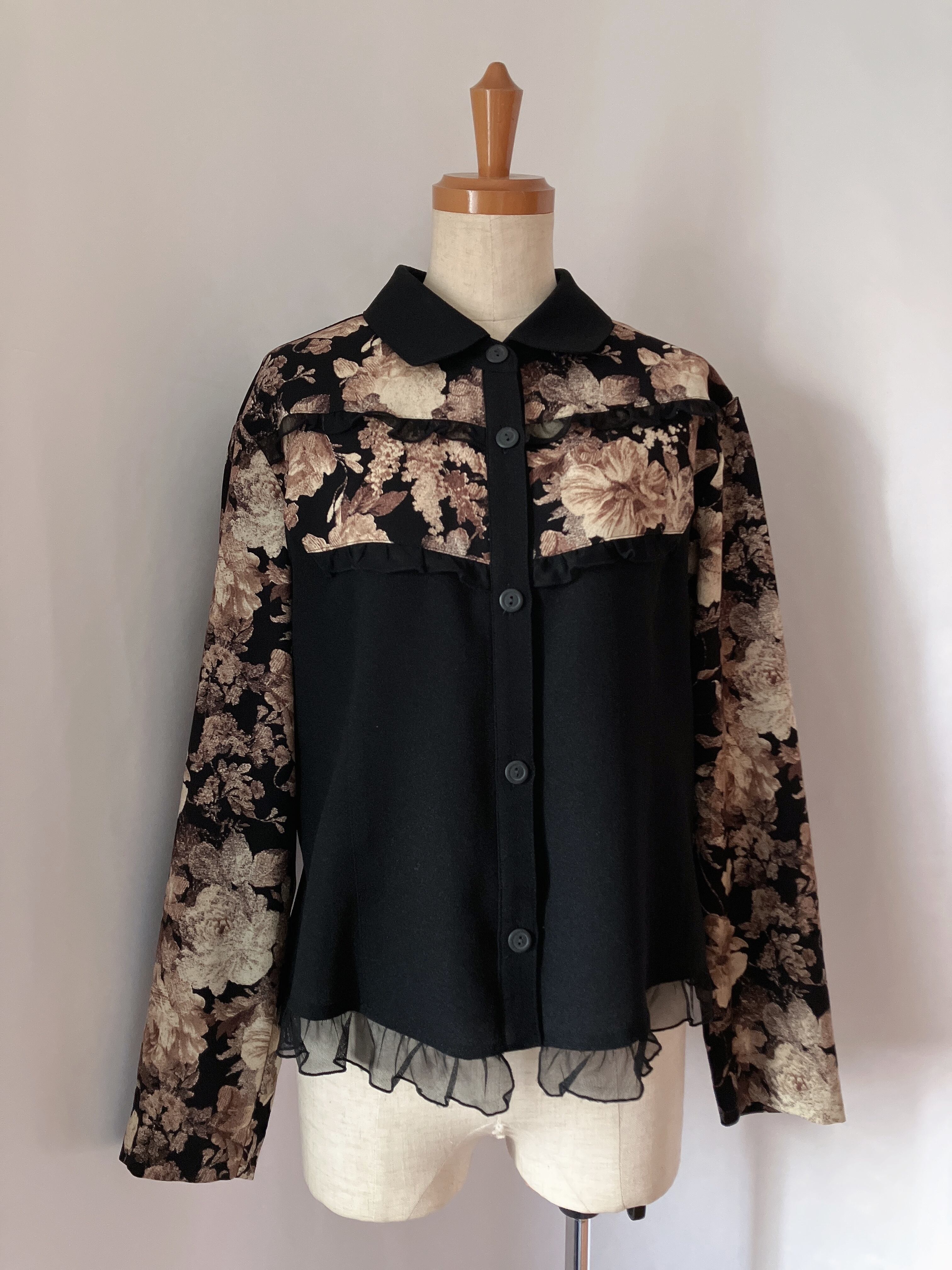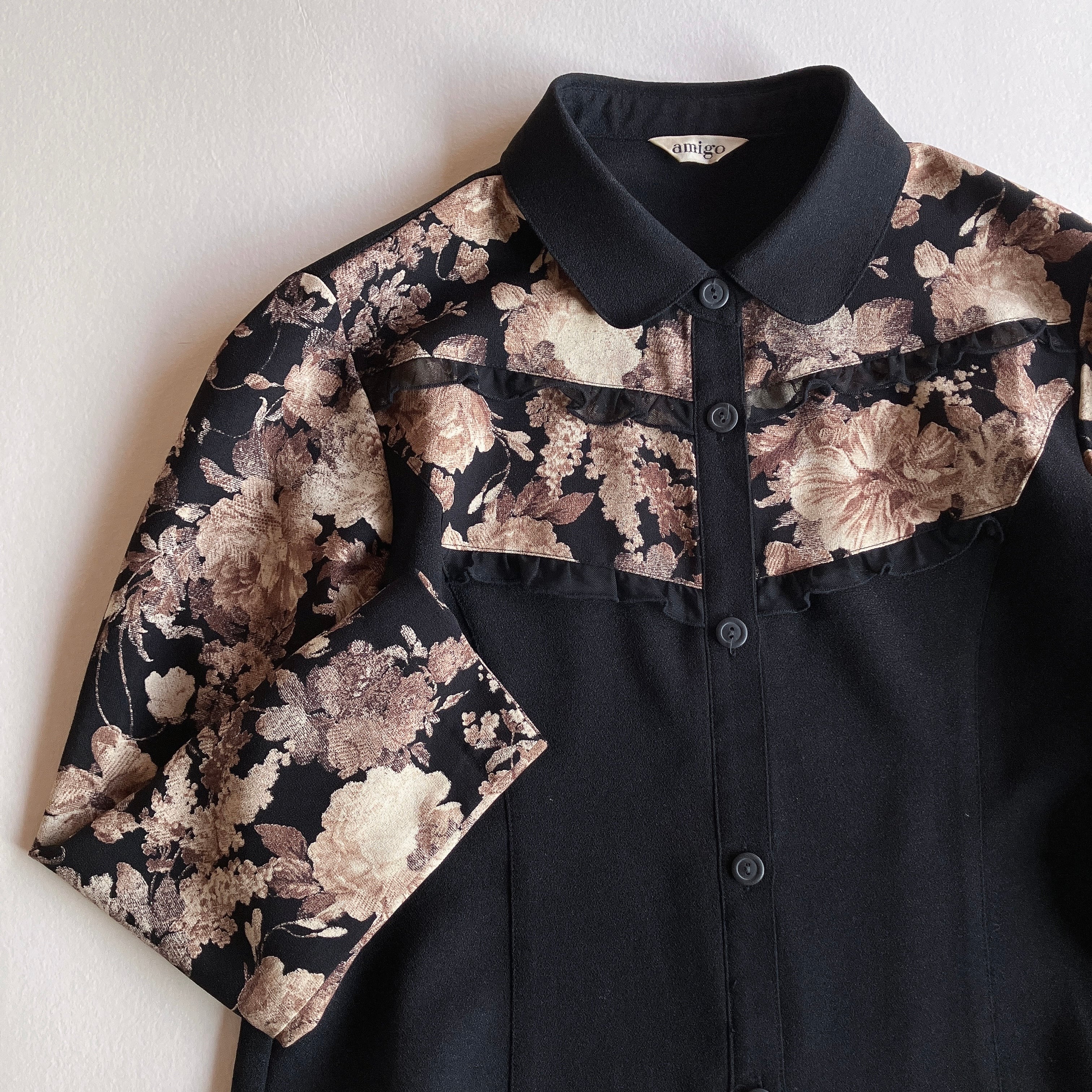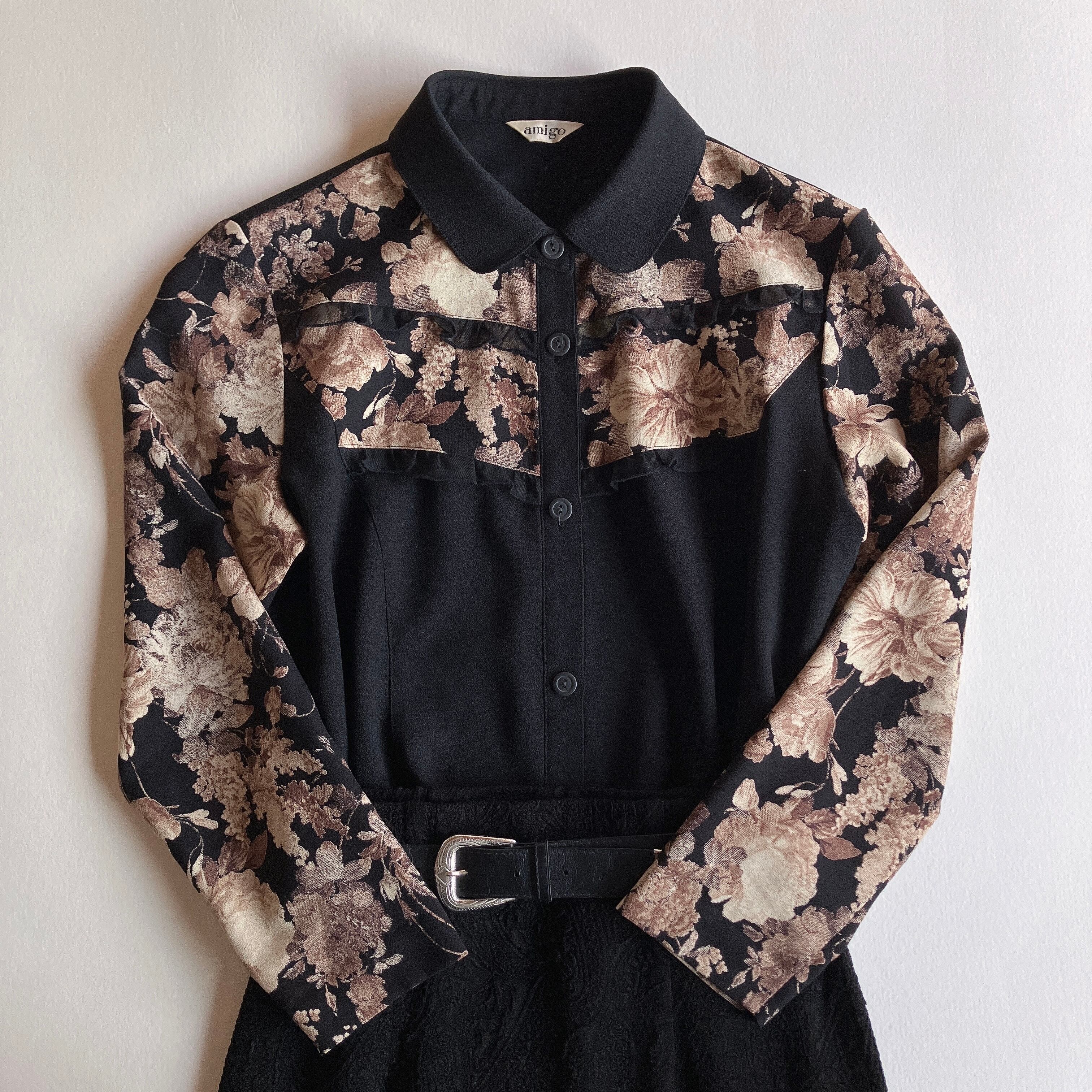 used レトロ 黒 花柄レースブラウス 古着 ヴィンテージ vintage