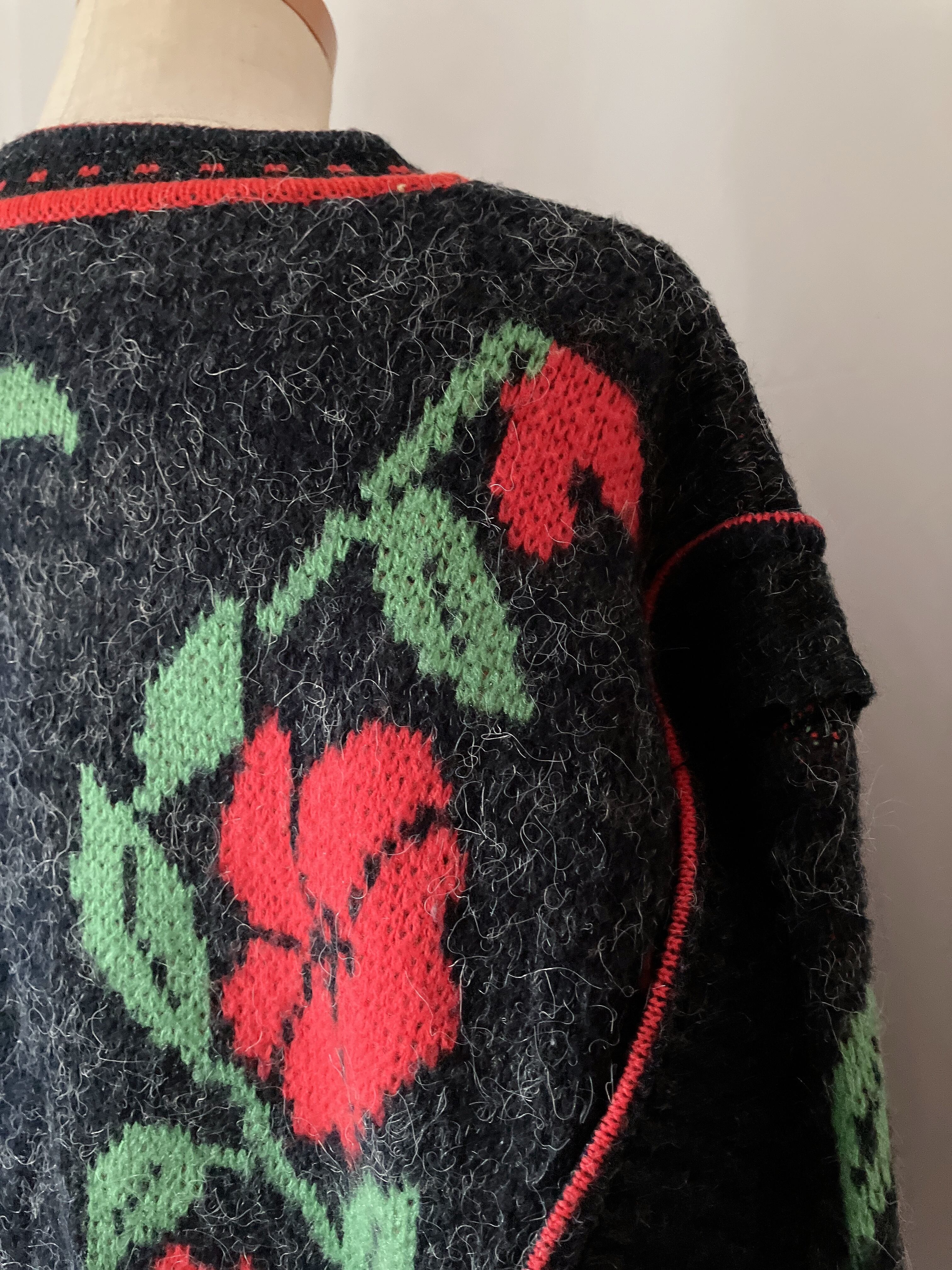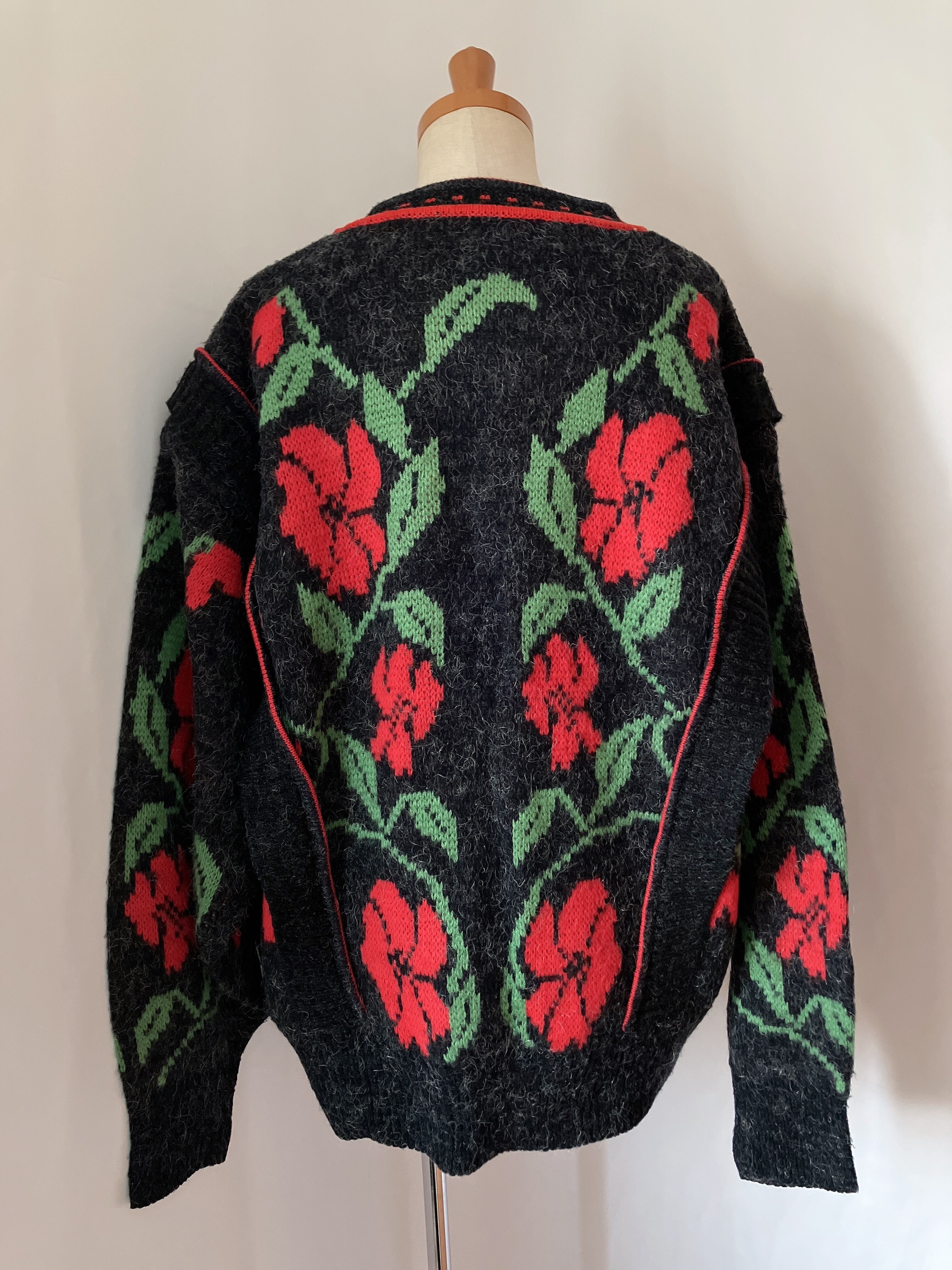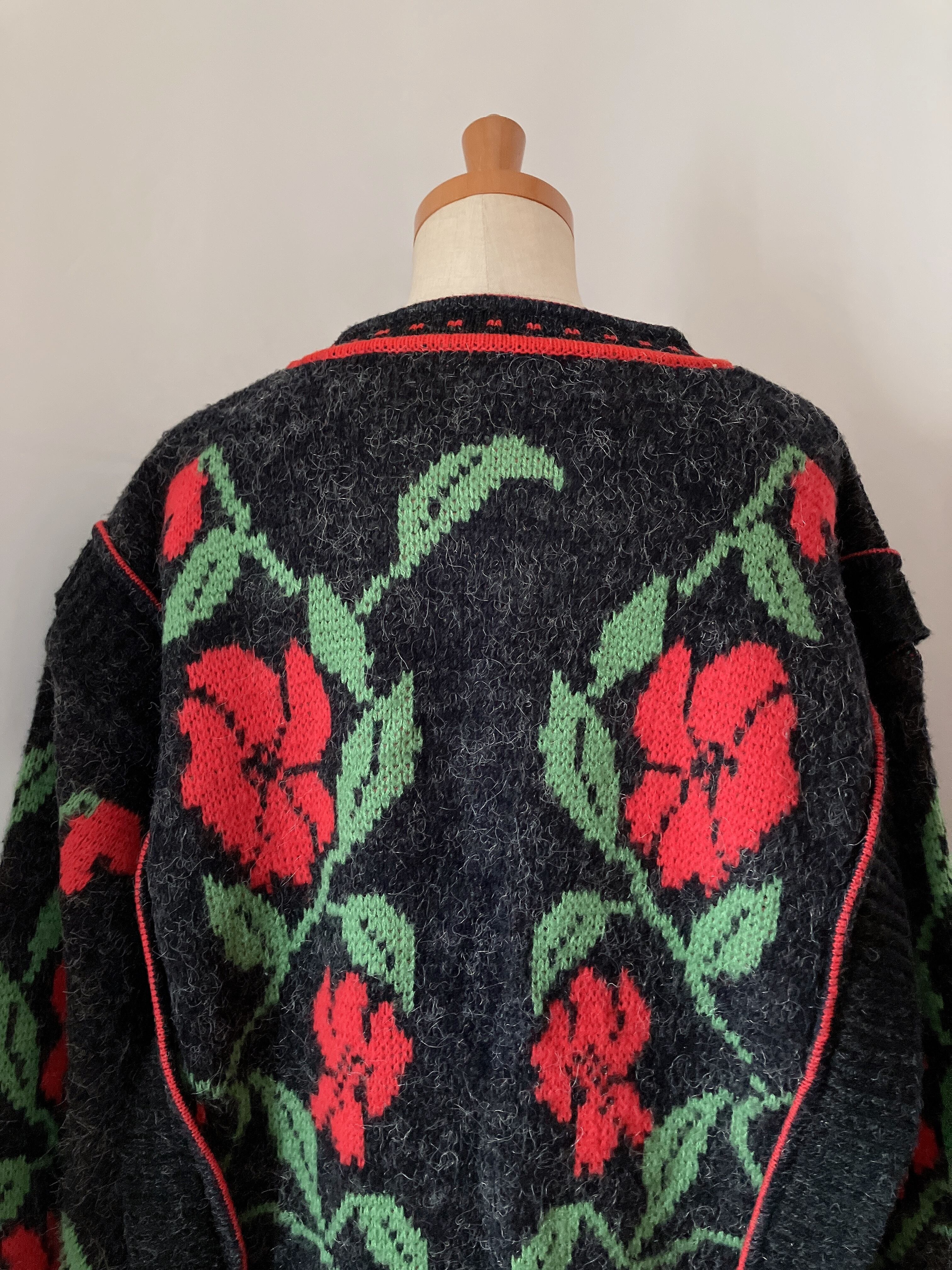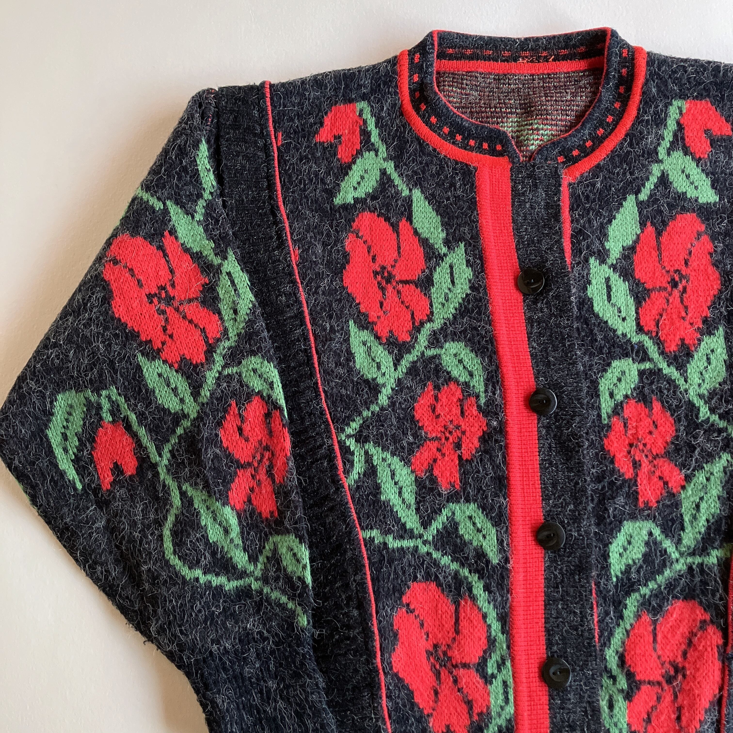 used レトロ 赤いお花 ニットカーディガン 古着 ヴィンテージvintage