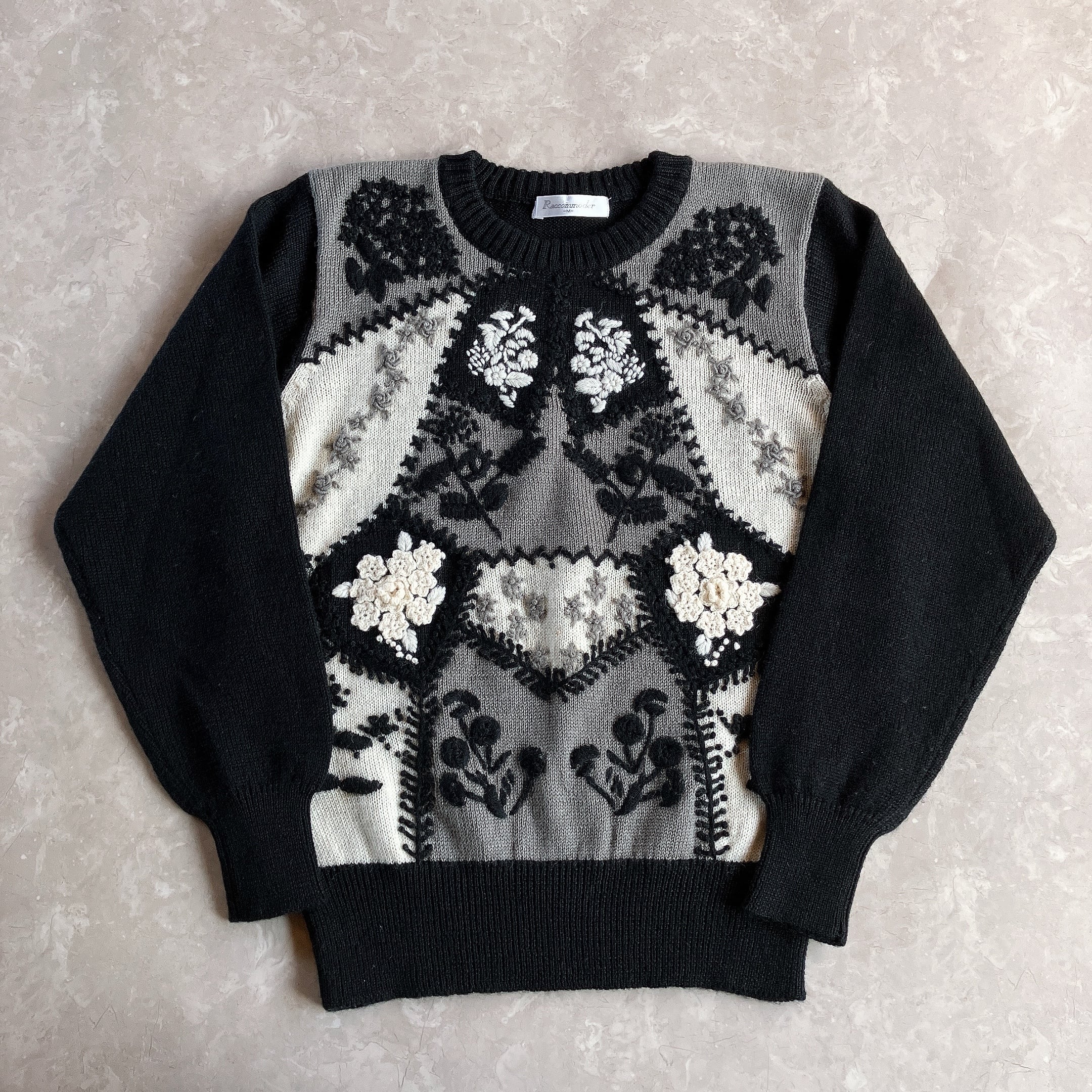 used レトロ 刺繍 ニット セーター 古着 ヴィンテージ vintage