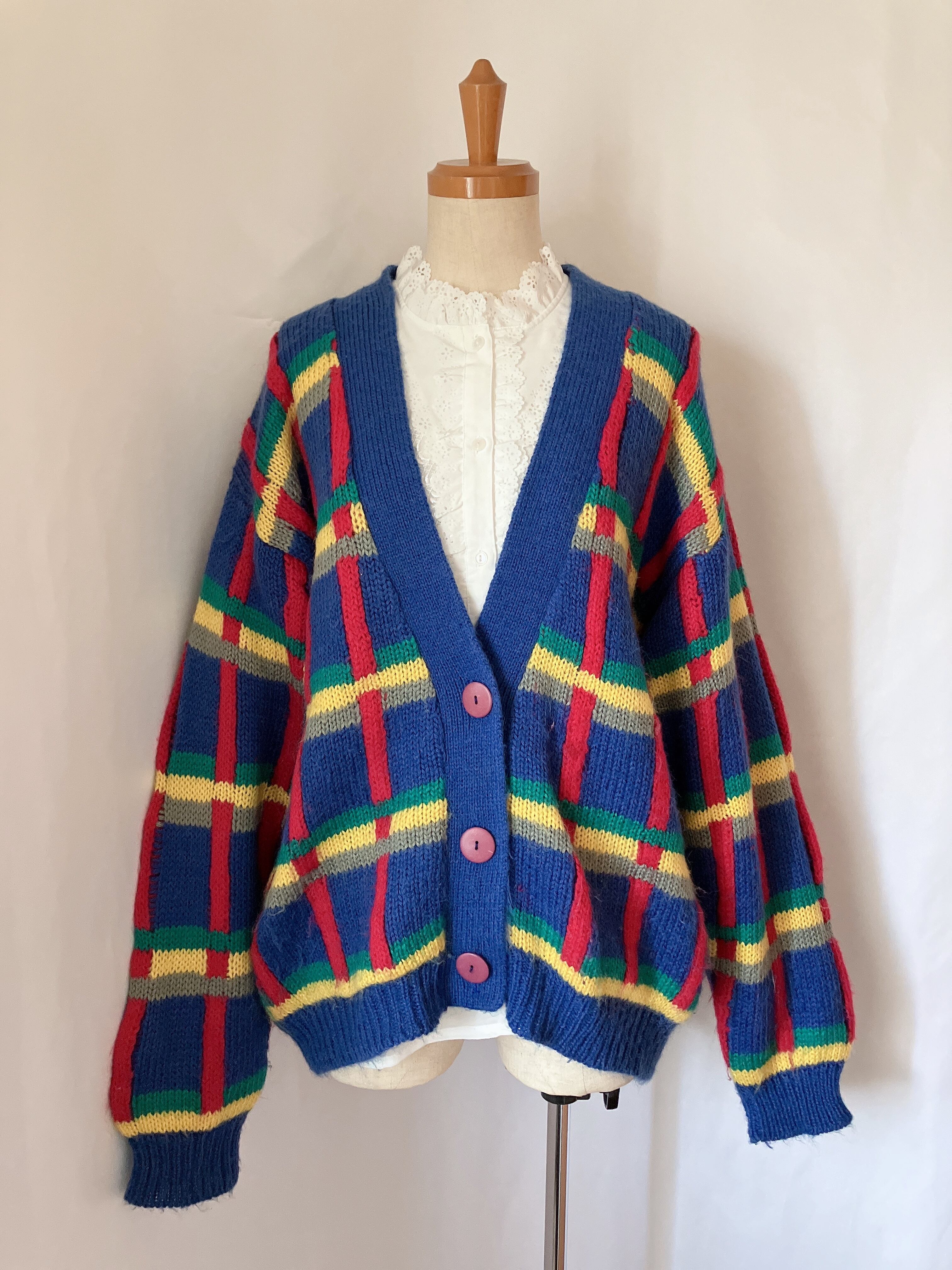 used レトロ マルチカラー ニットカーデ 古着 ヴィンテージ vintage