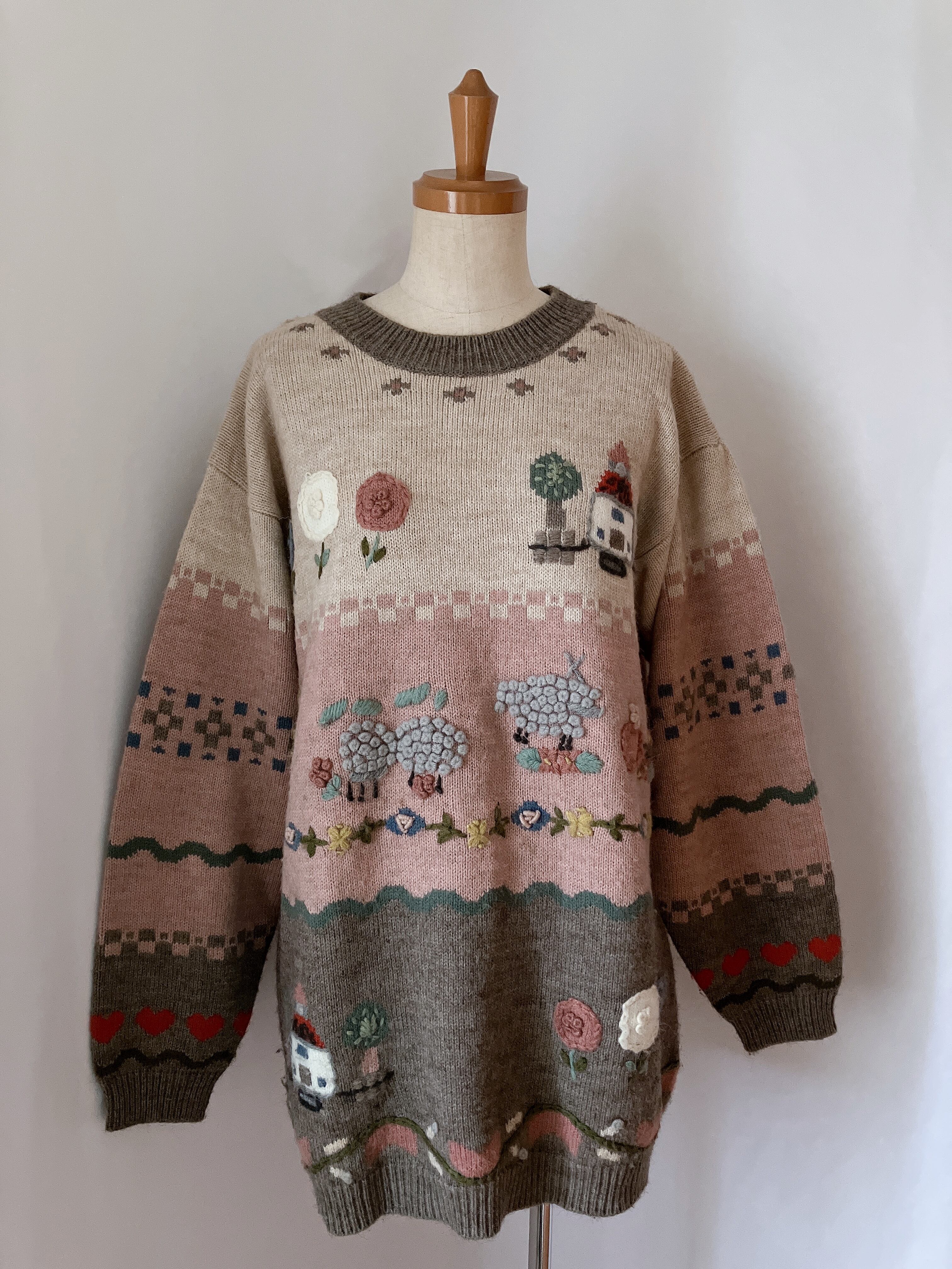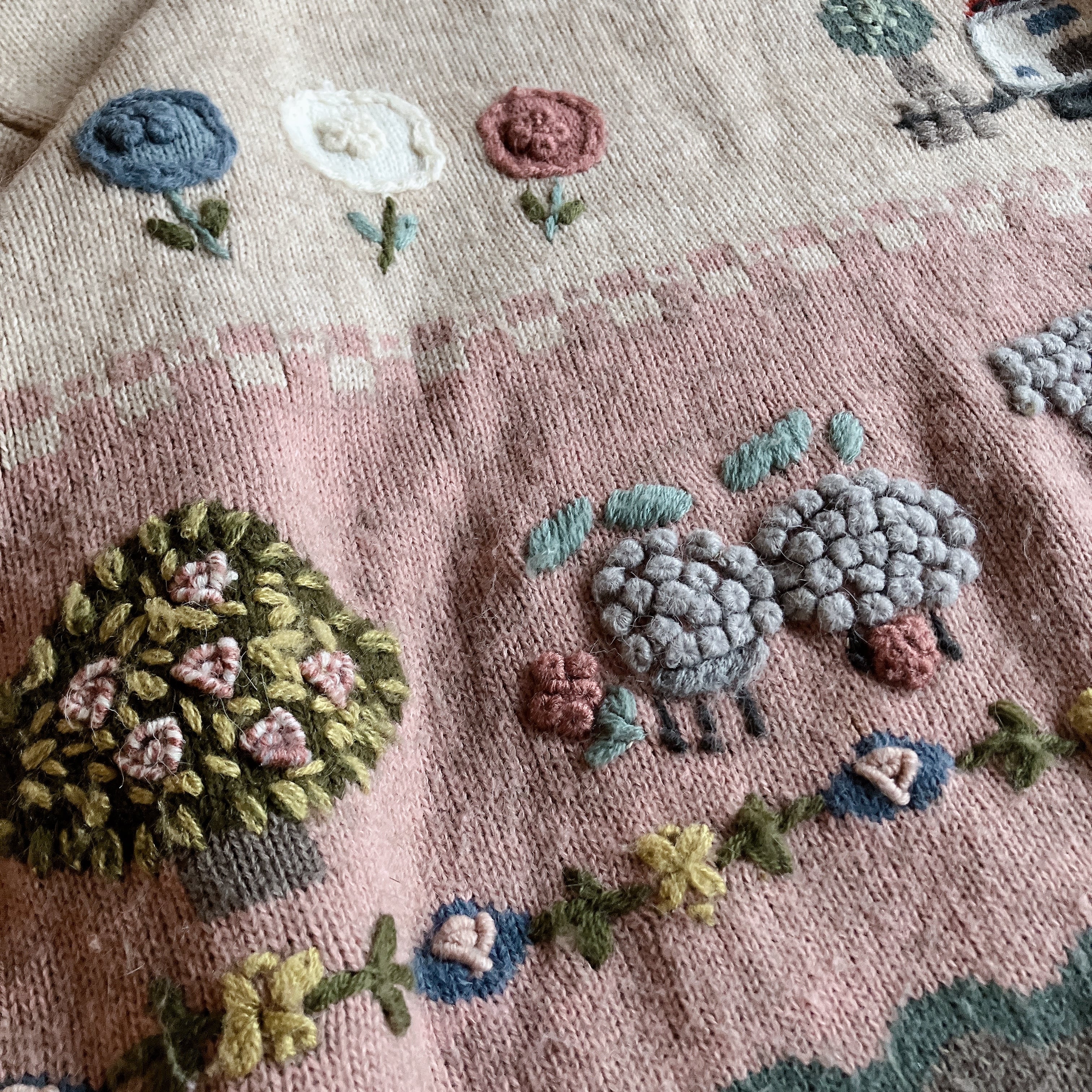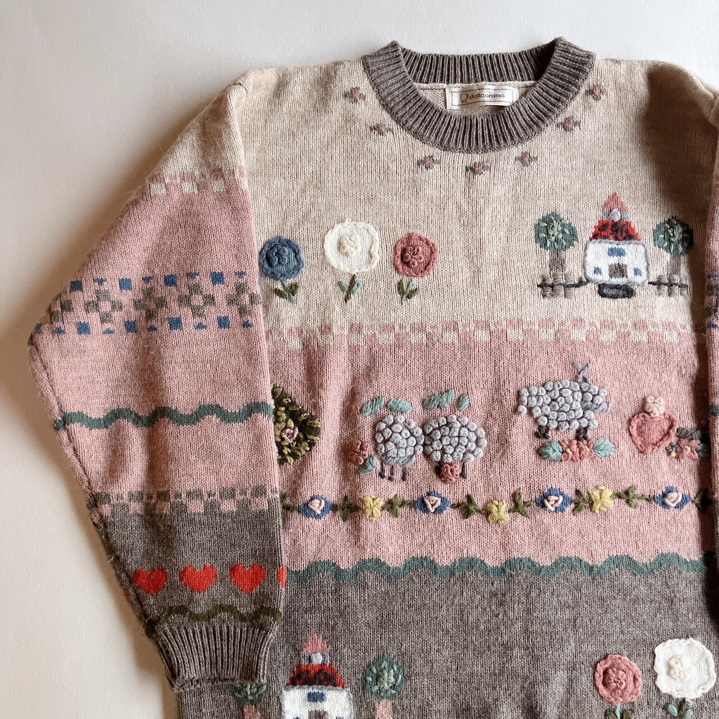 used レトロ お家 刺繍 ニットセーター古着 ヴィンテージ vintage