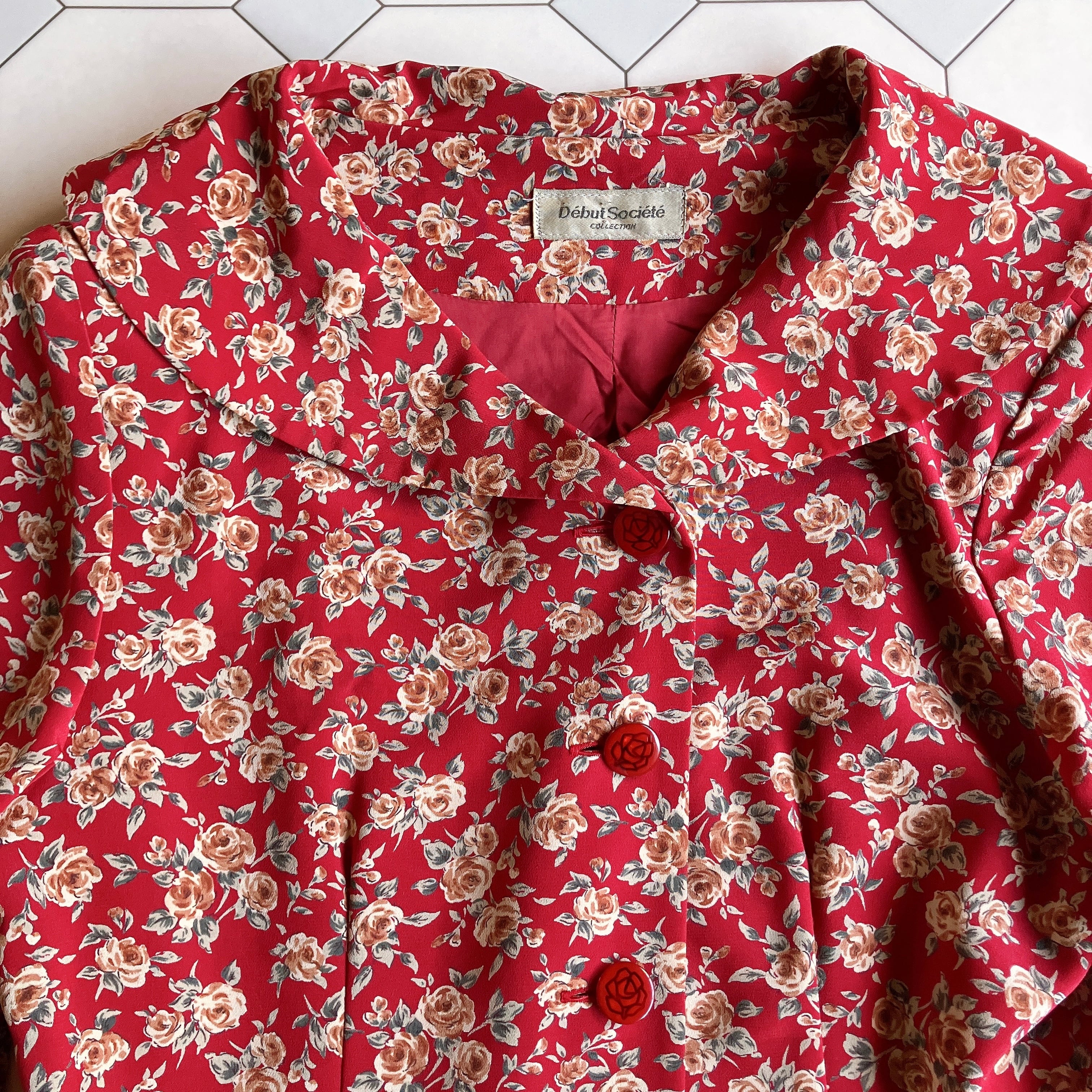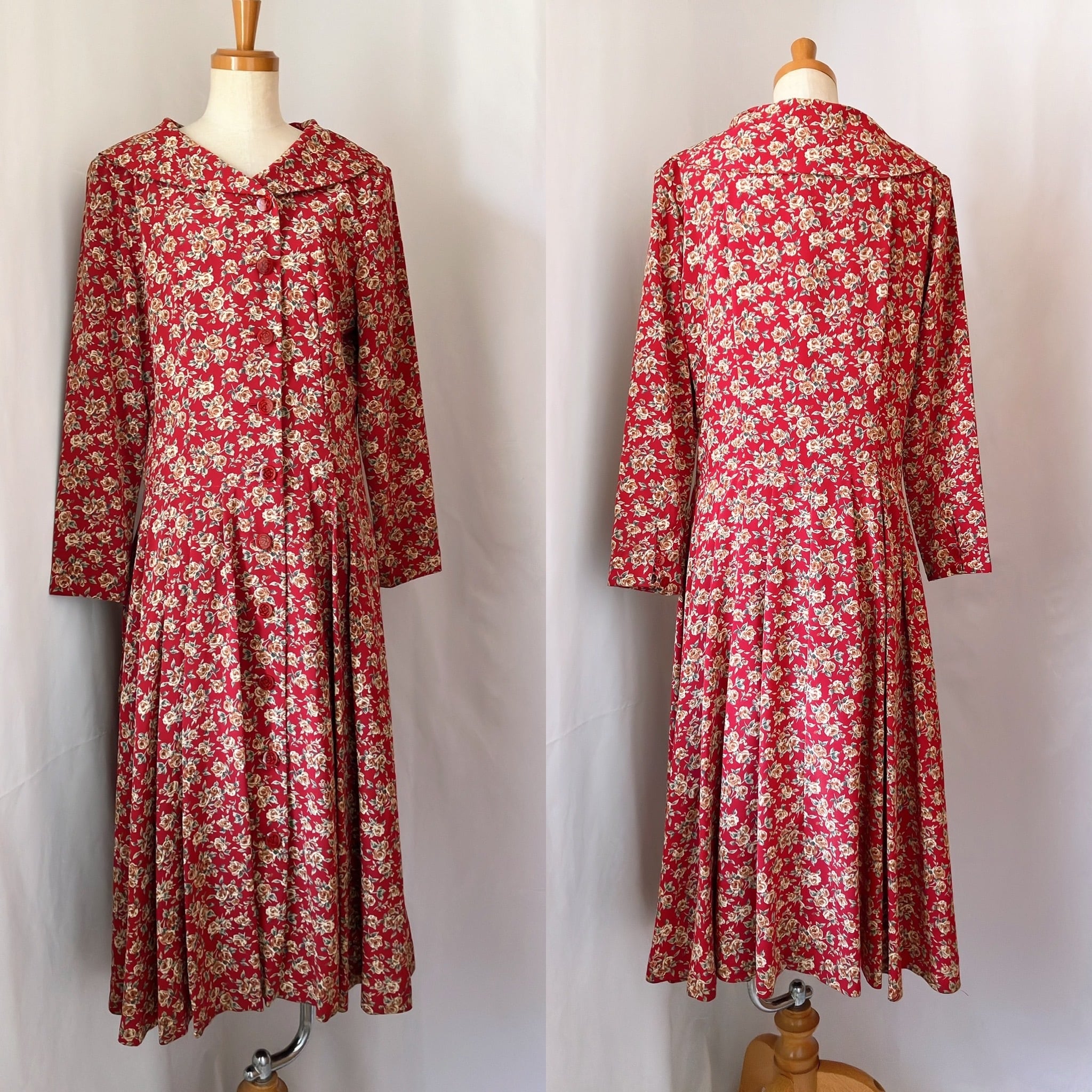 used レトロ 赤 花柄 ワンピース 古着 ヴィンテージ vintage