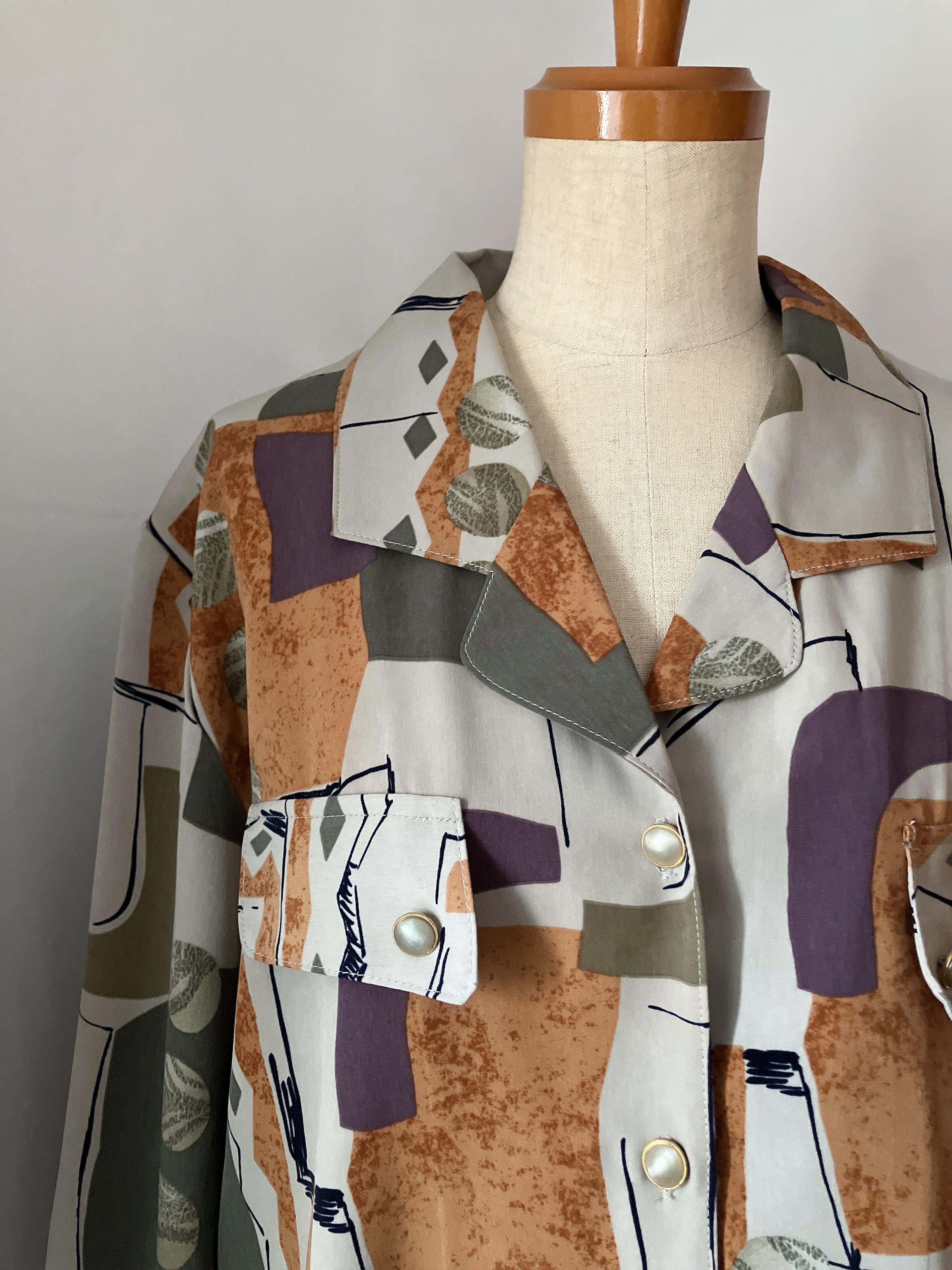 used レトロ 幾何学模様 シャツ ブラウス古着 ヴィンテージ vintage